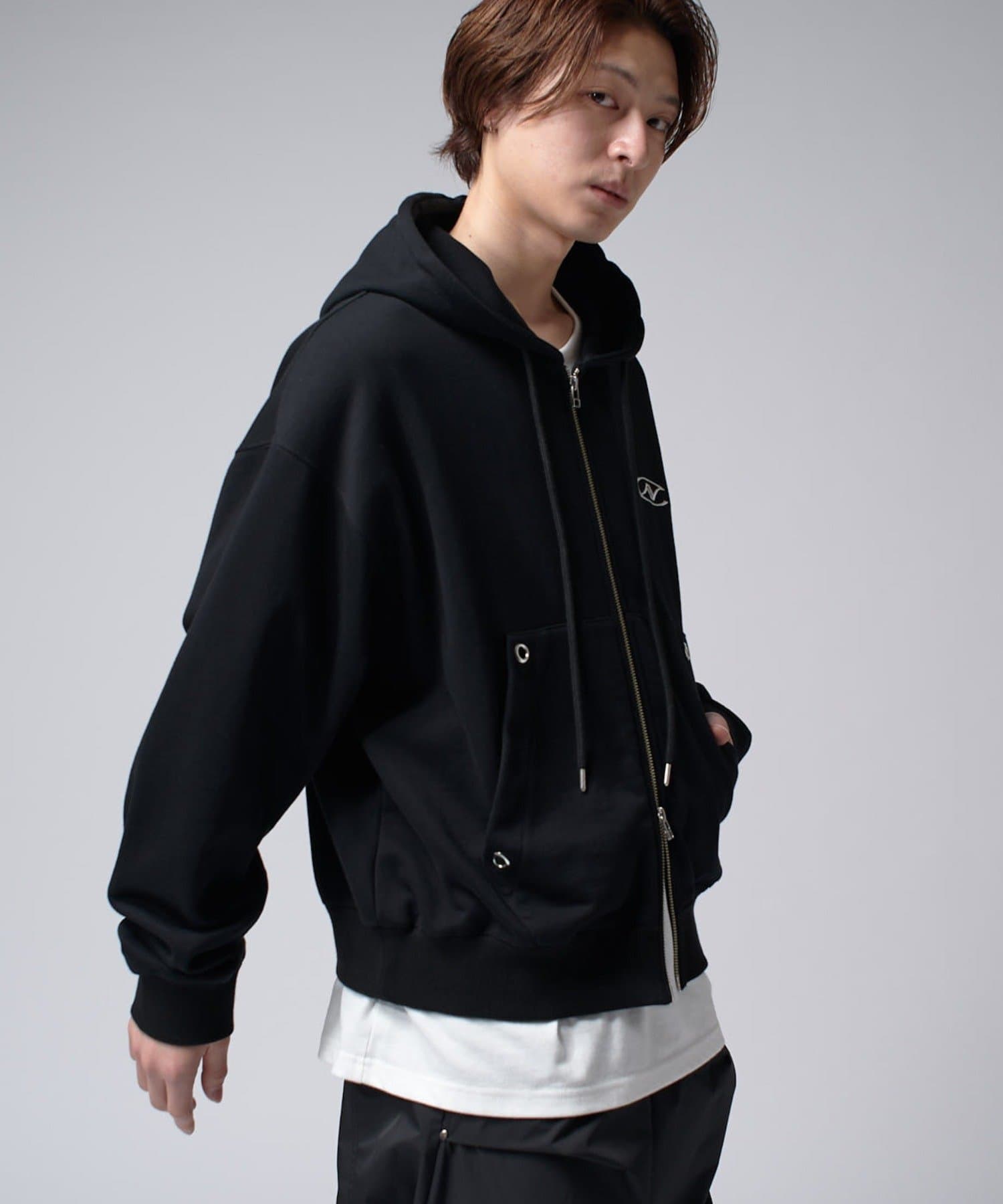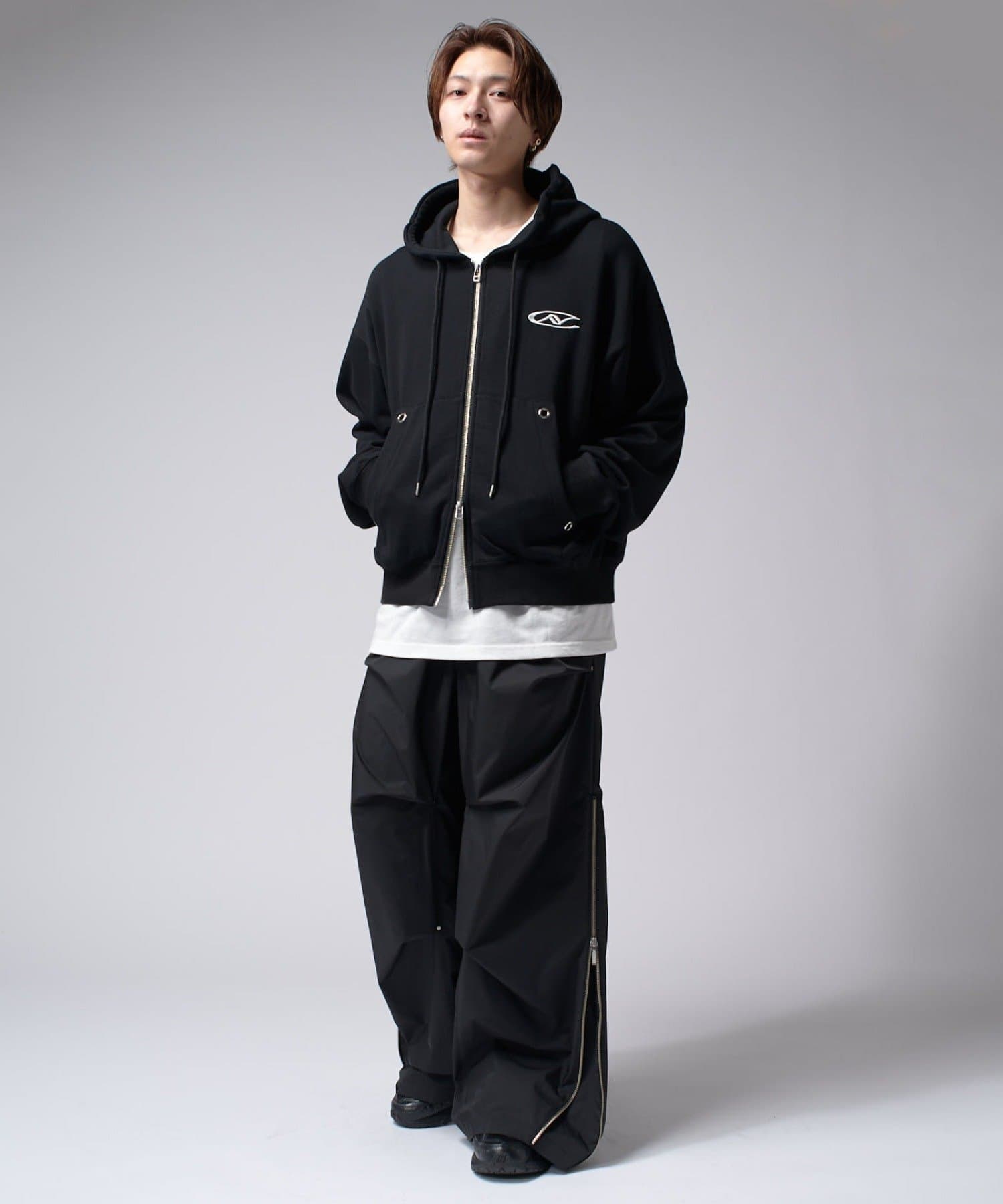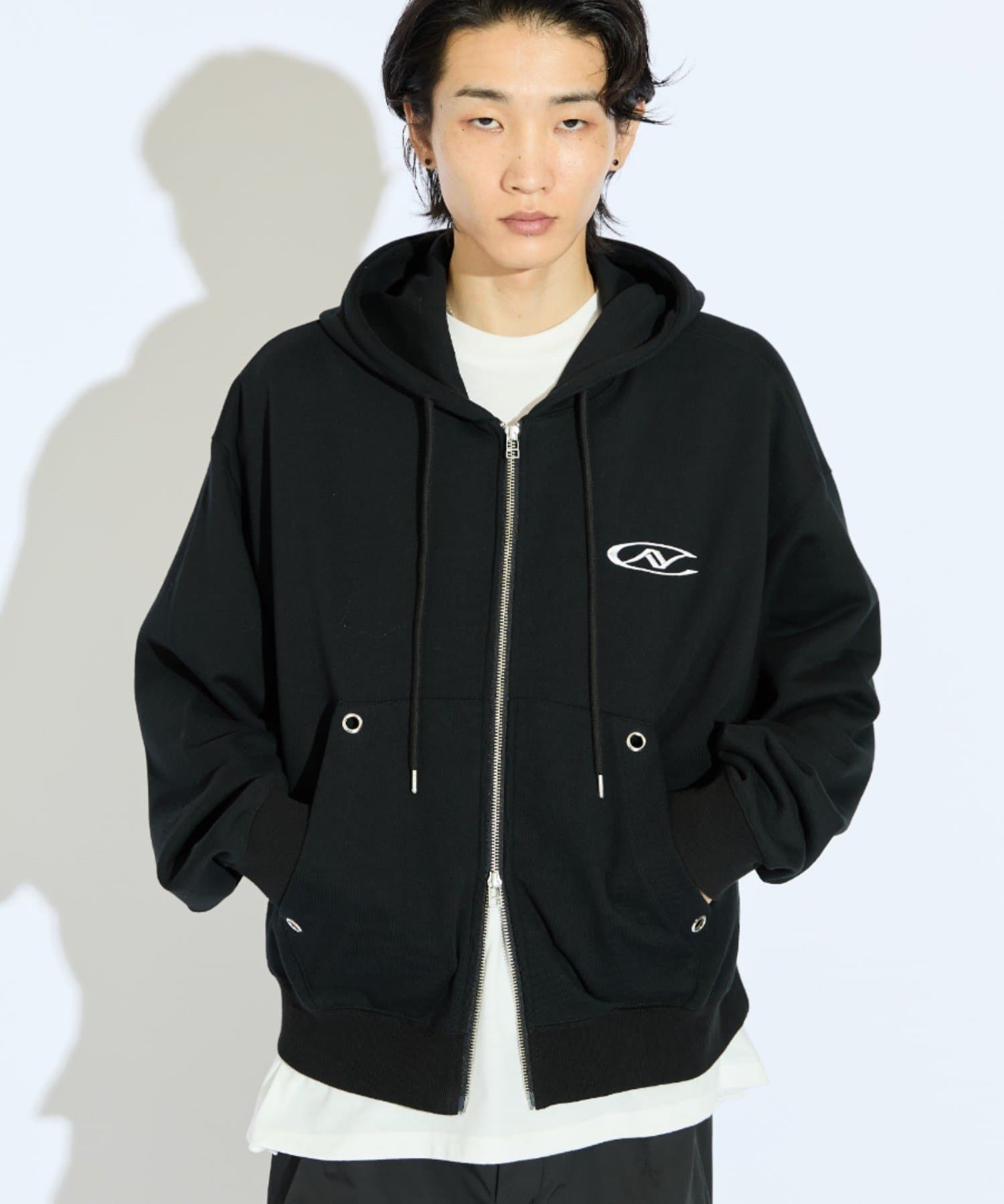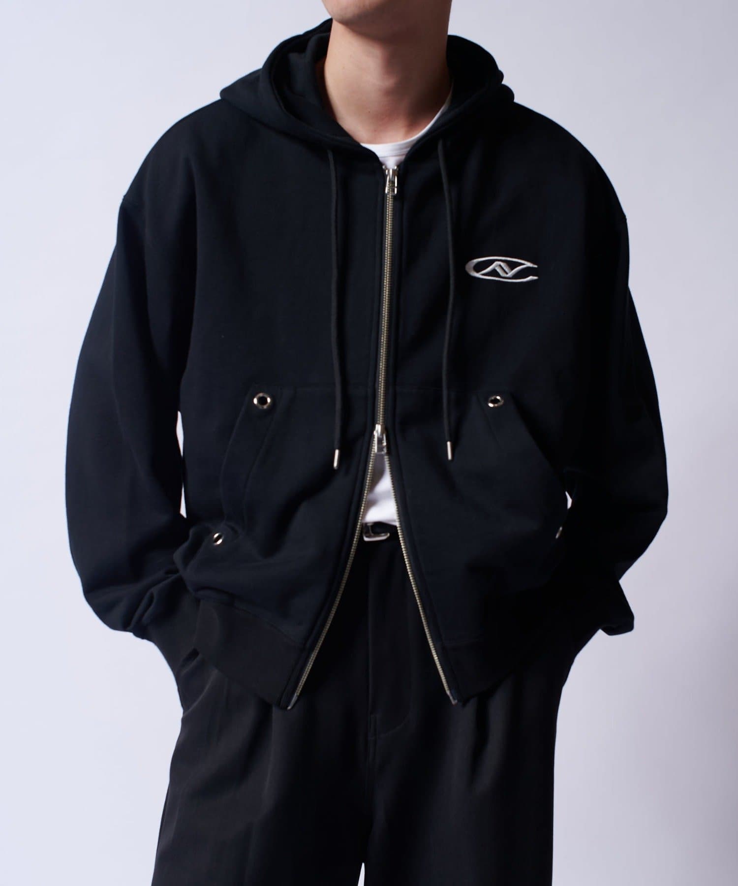 【Neucon/ニューコン】ロゴ刺繍ダブルZIPボリュームパーカー