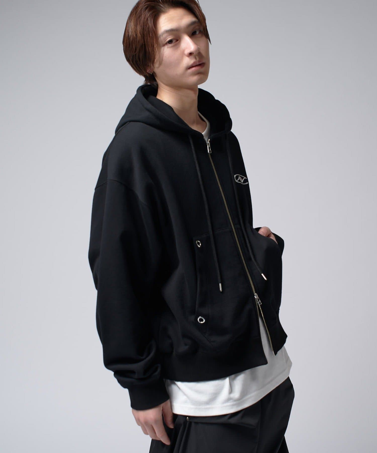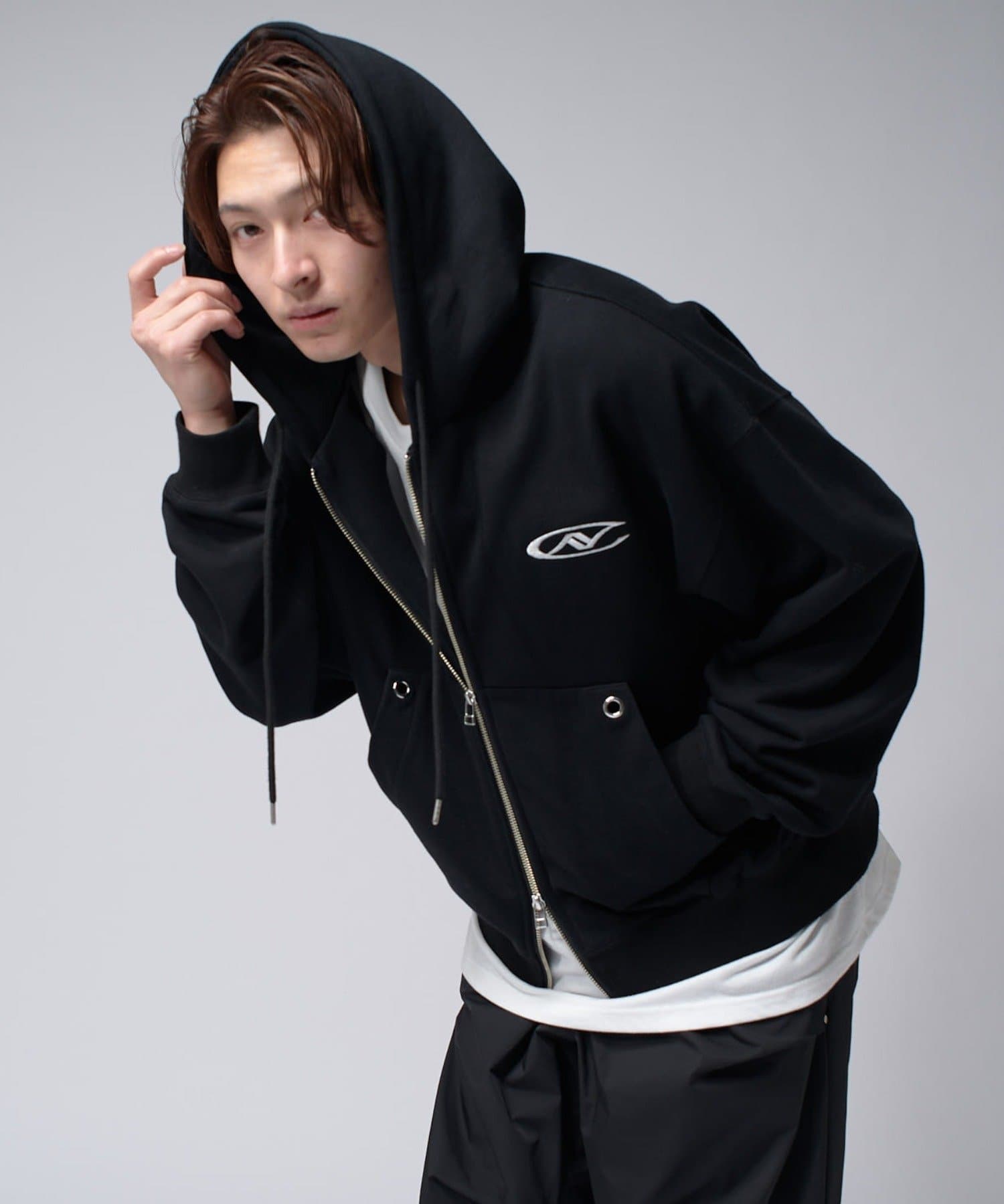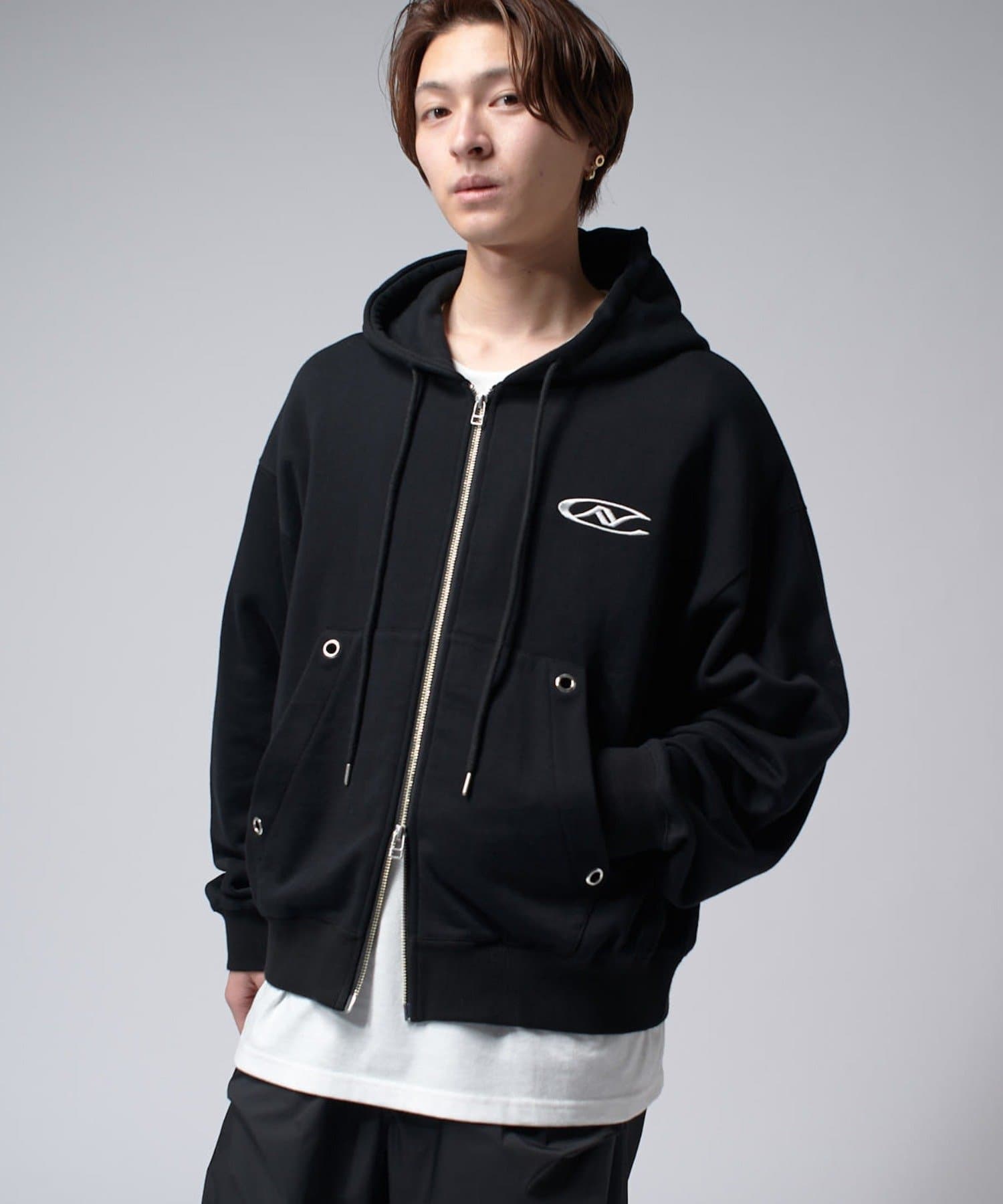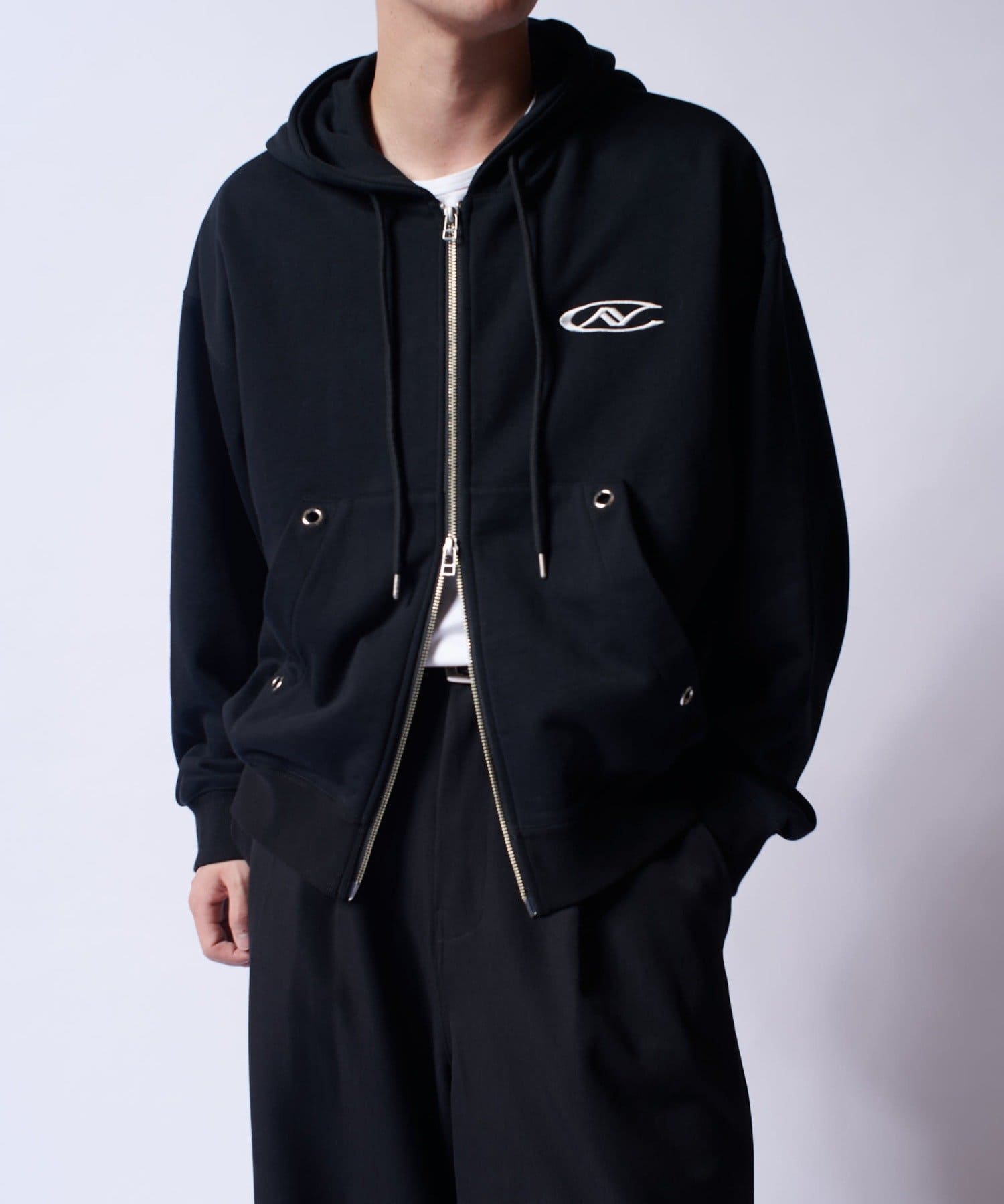 【Neucon/ニューコン】ロゴ刺繍ダブルZIPボリュームパーカー