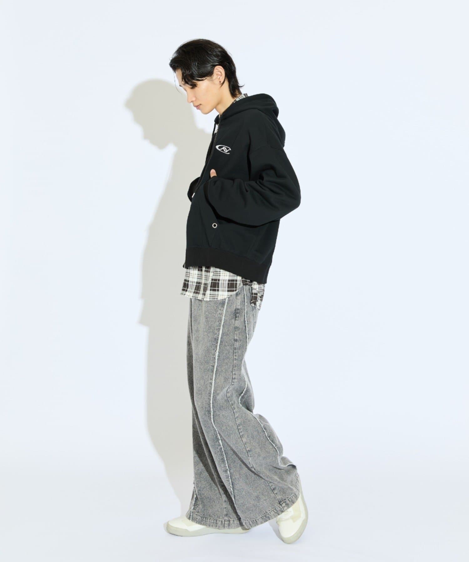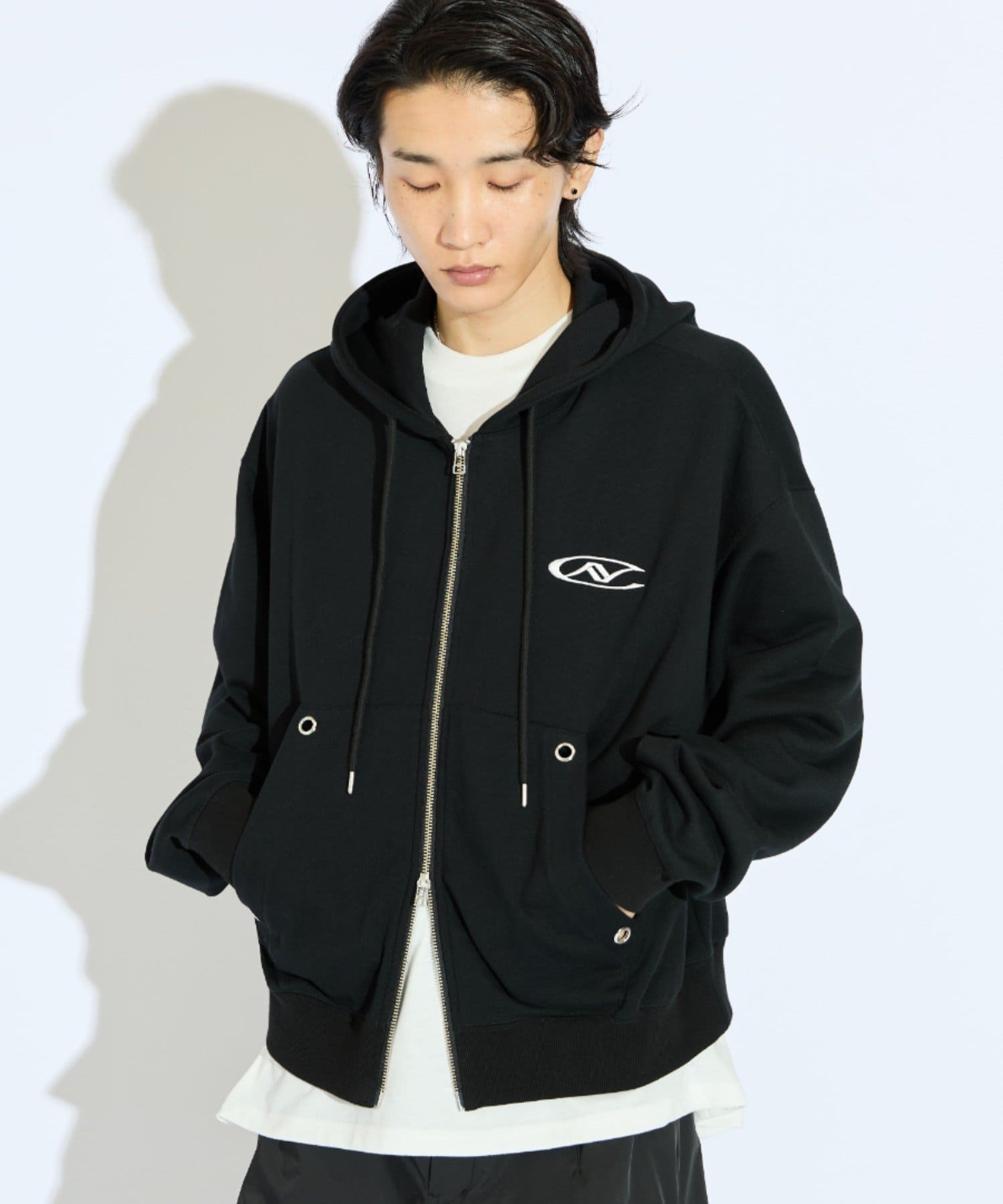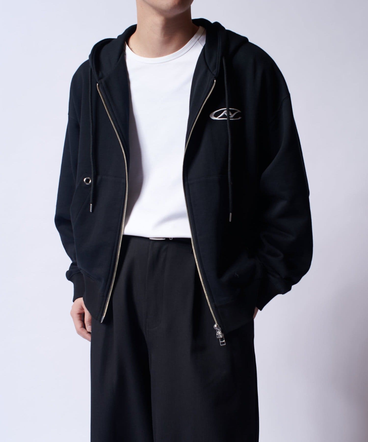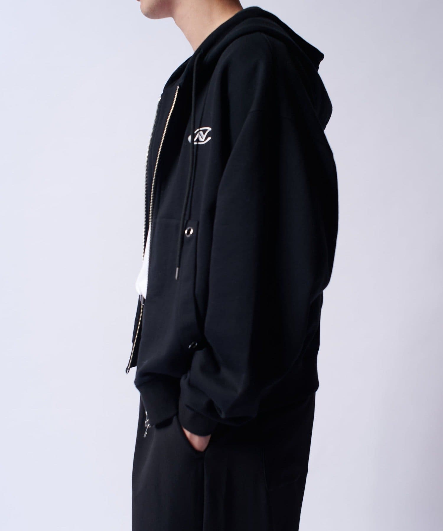 【Neucon/ニューコン】ロゴ刺繍ダブルZIPボリュームパーカー