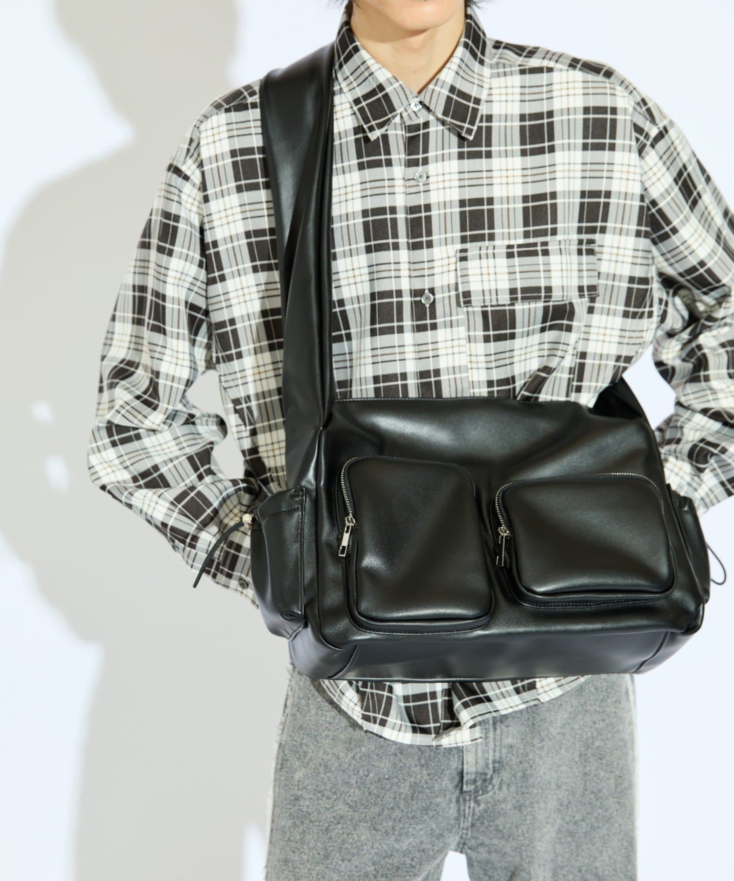 【Neucon/ニューコン】 スクエアマルチポケットショルダーバッグ