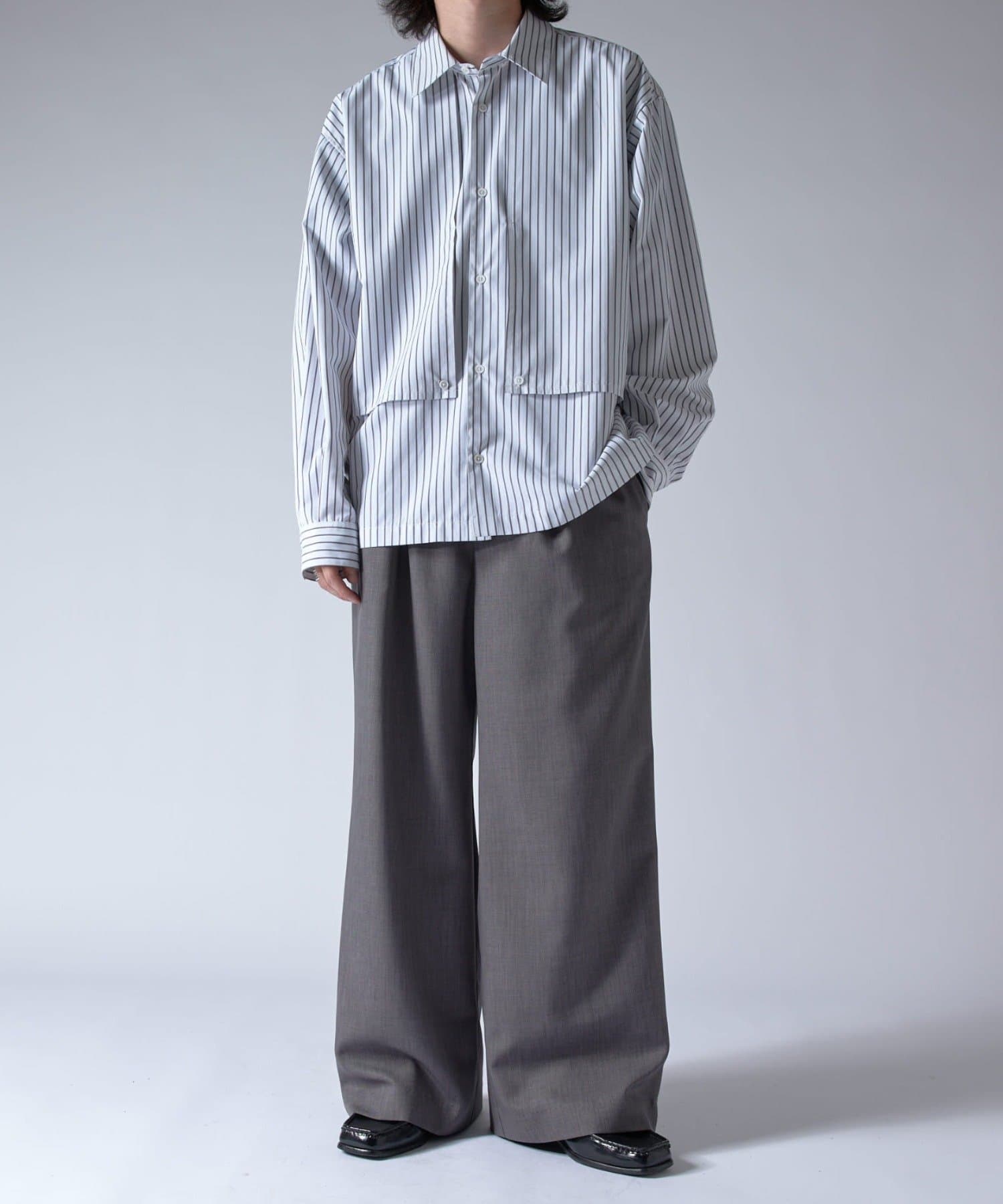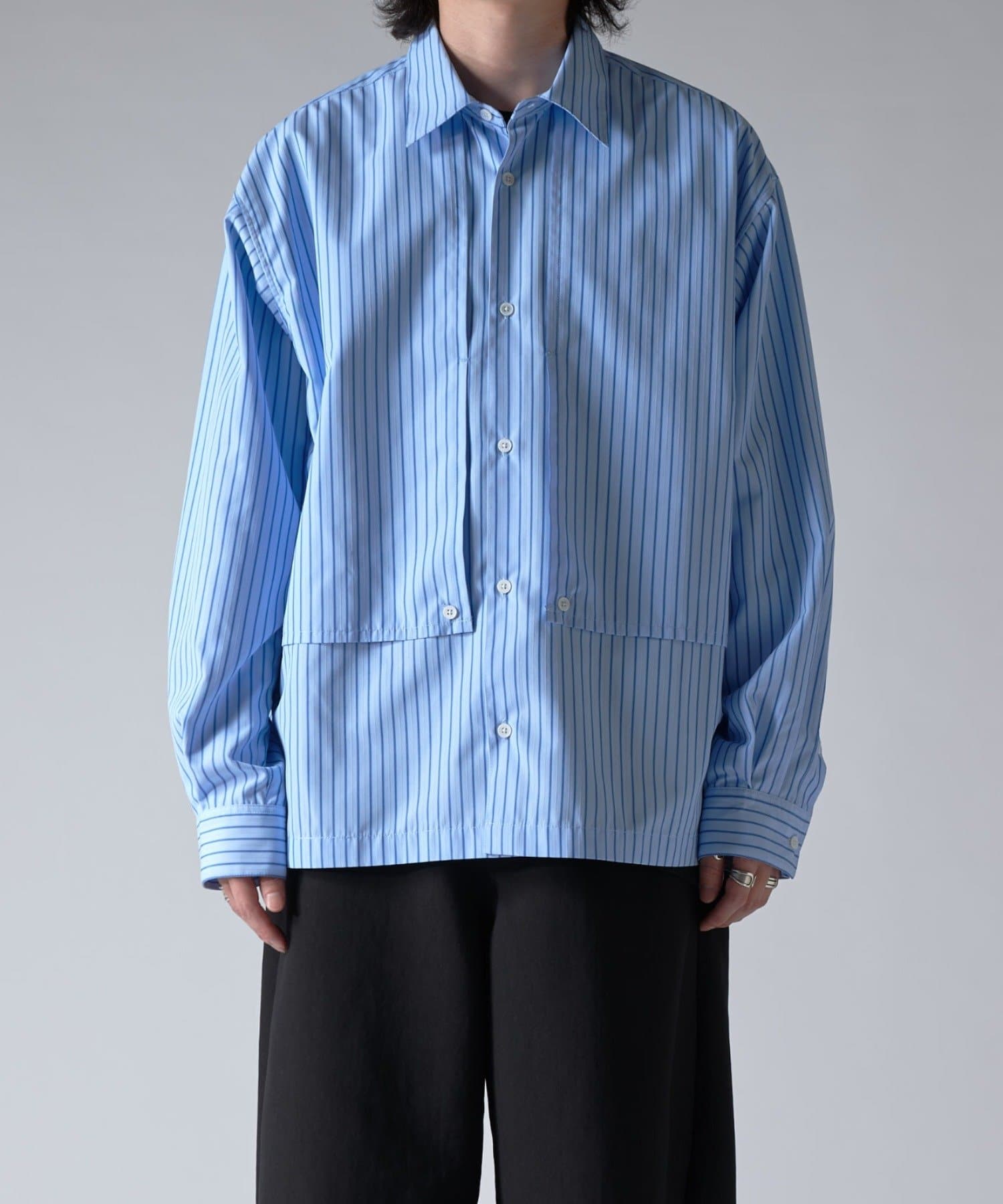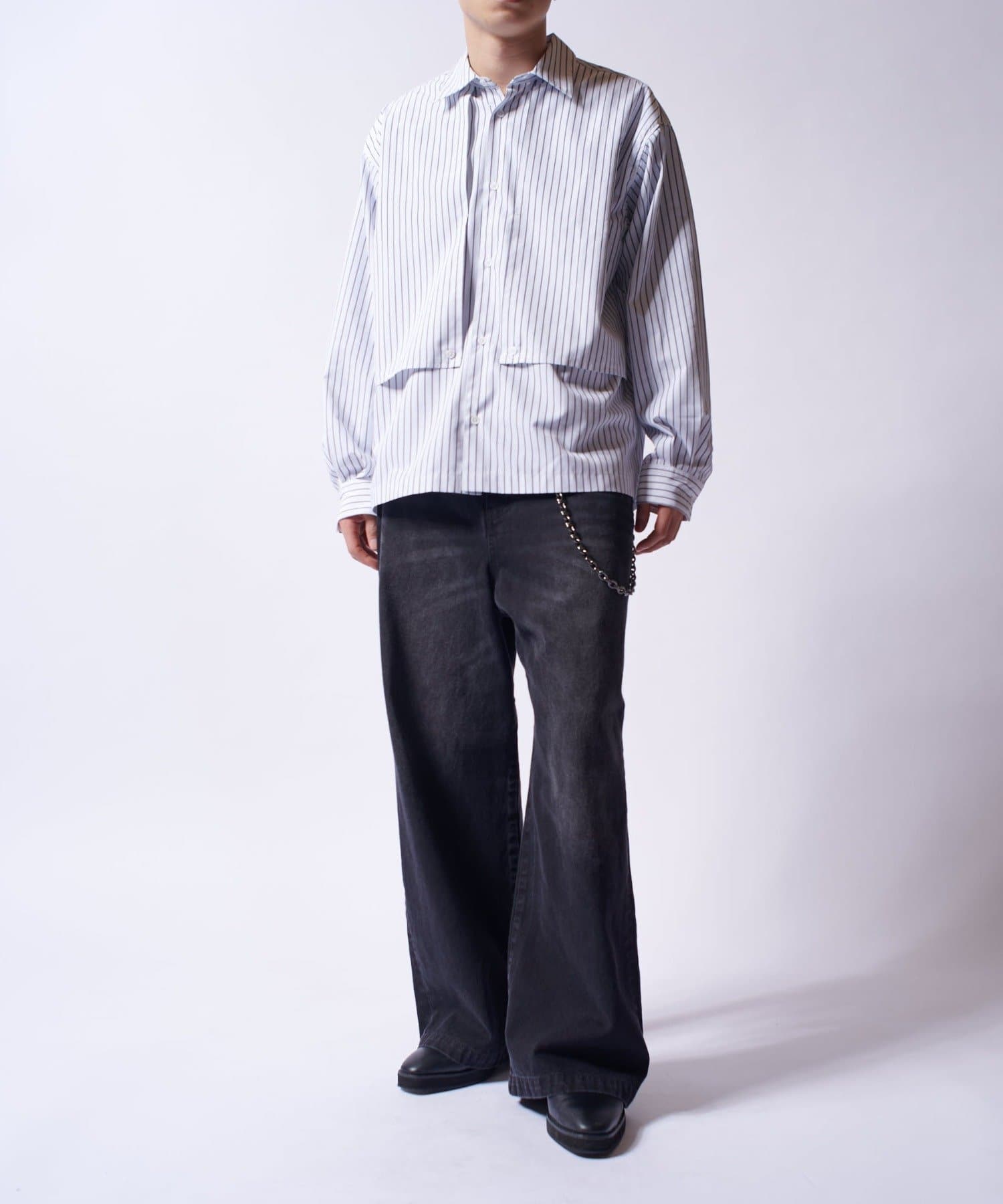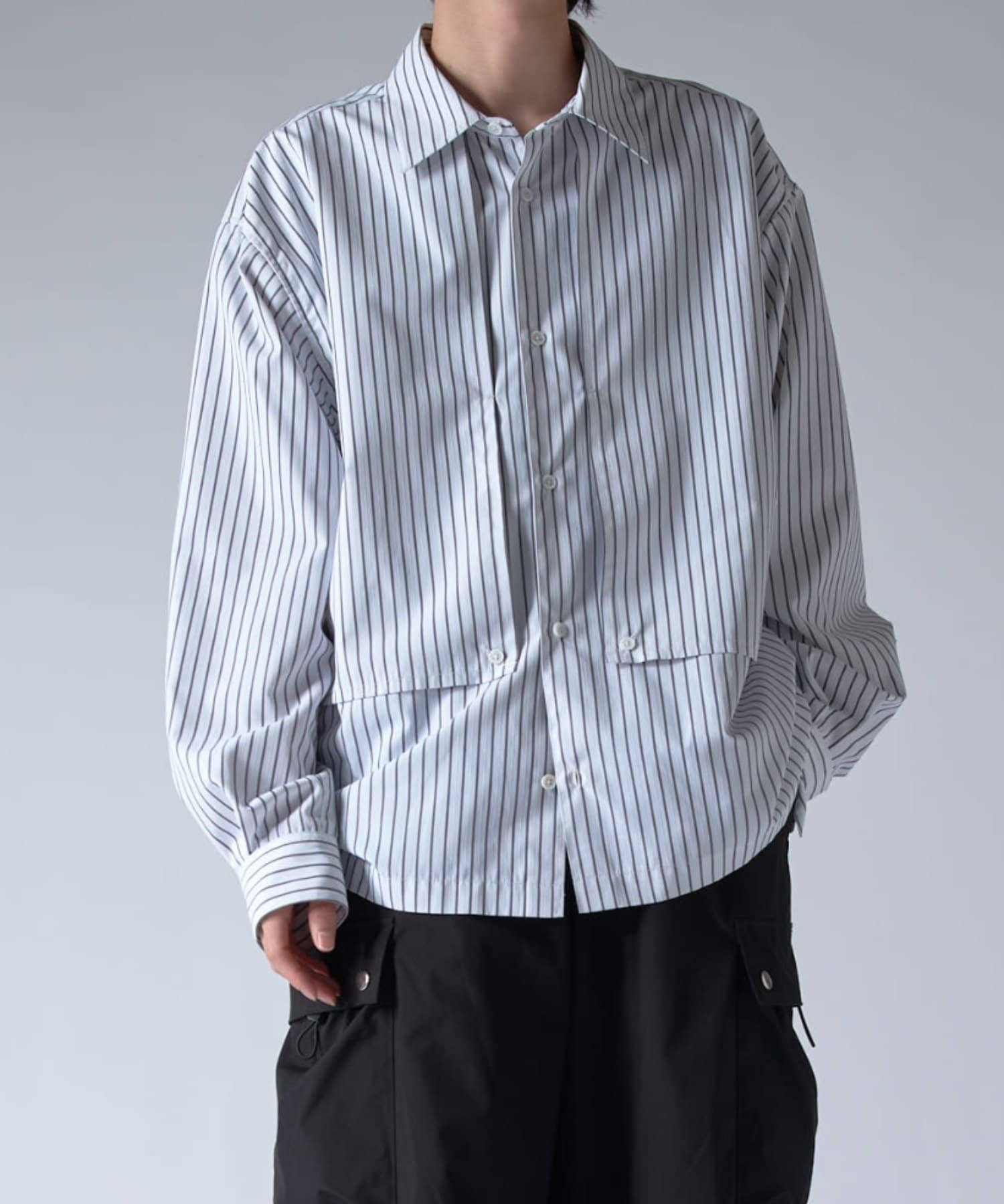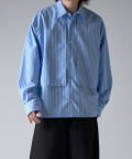【Neucon/ニューコン】ガンフラップオーバサイズストライプシャツ