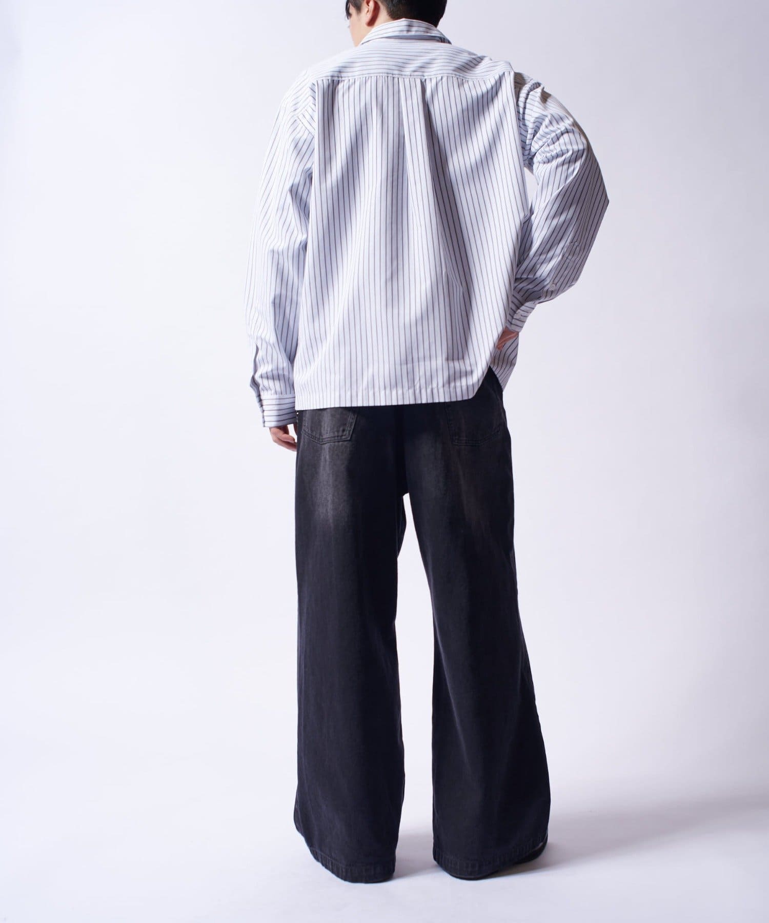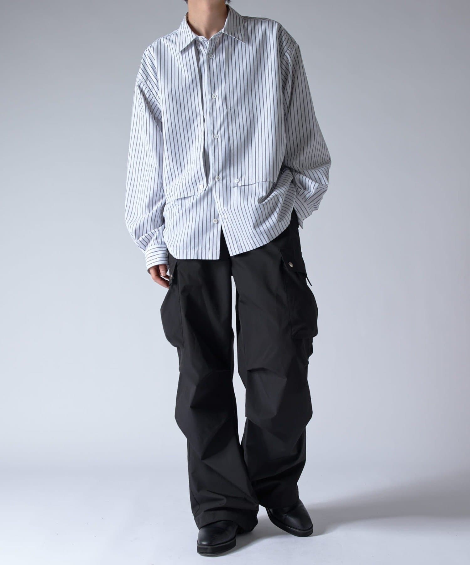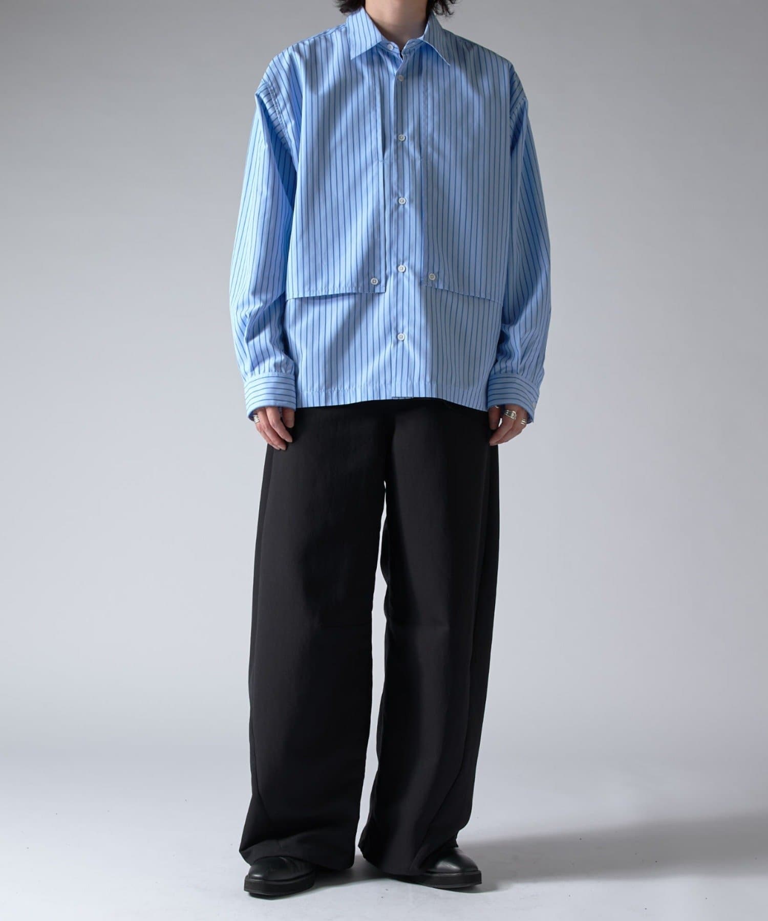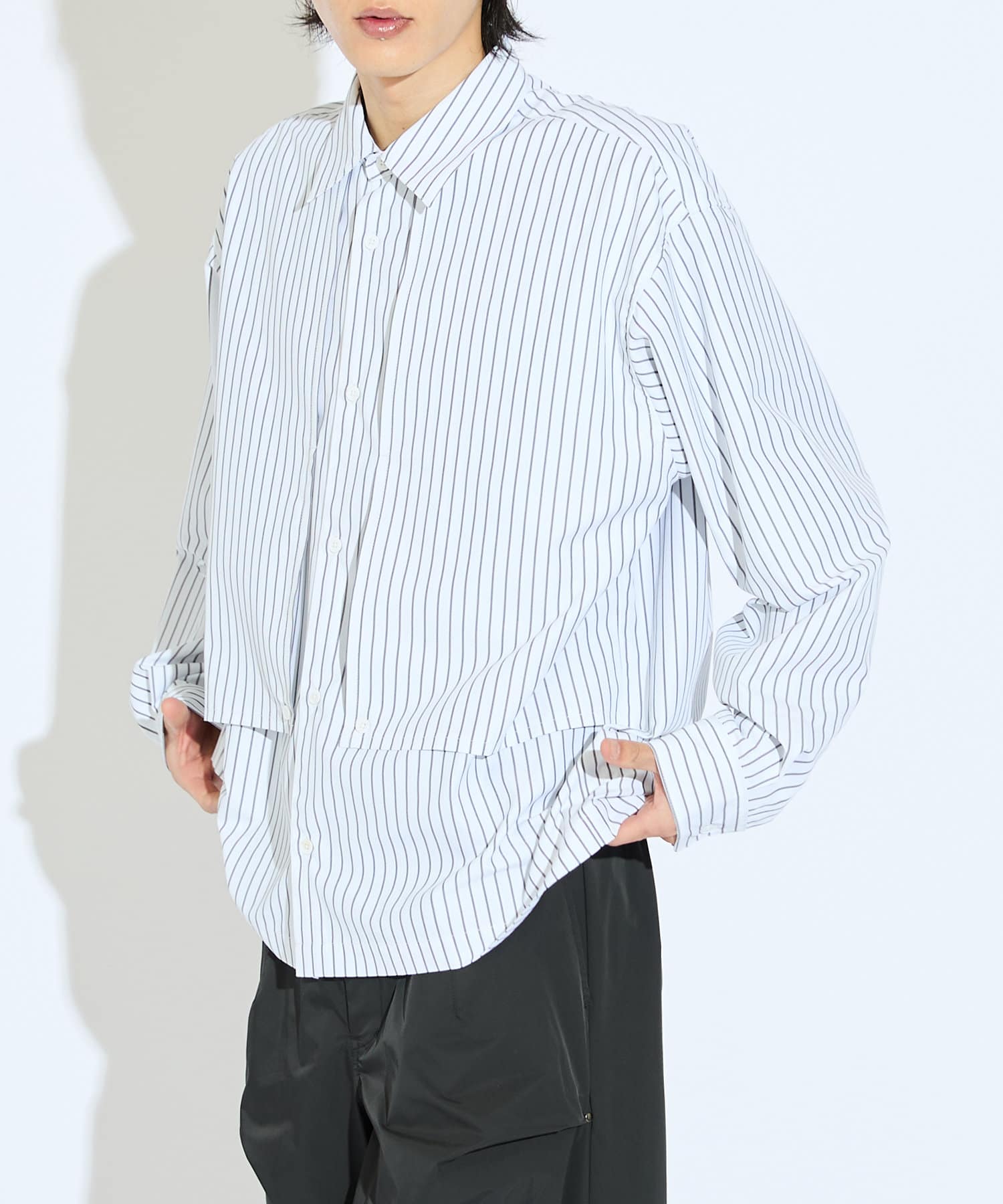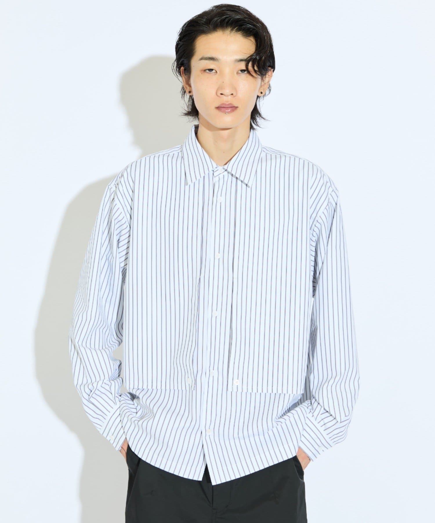 【Neucon/ニューコン】ガンフラップオーバサイズストライプシャツ
