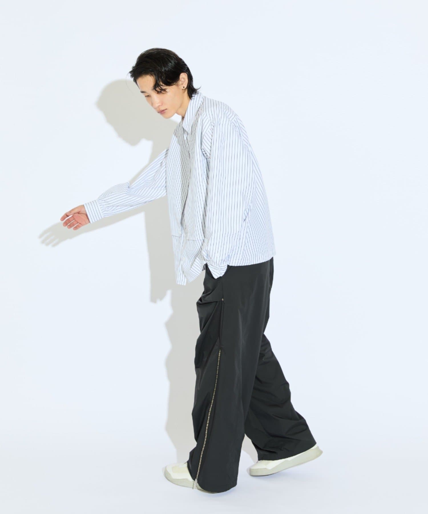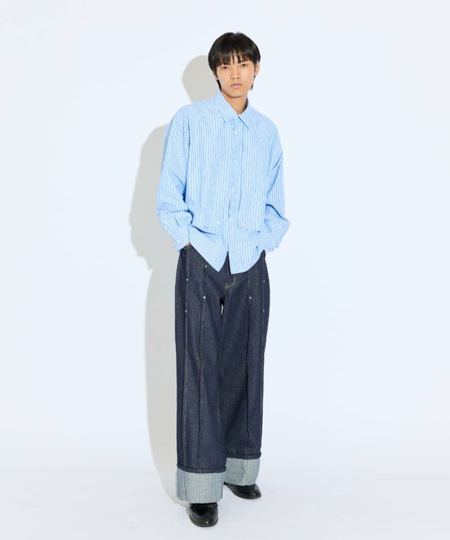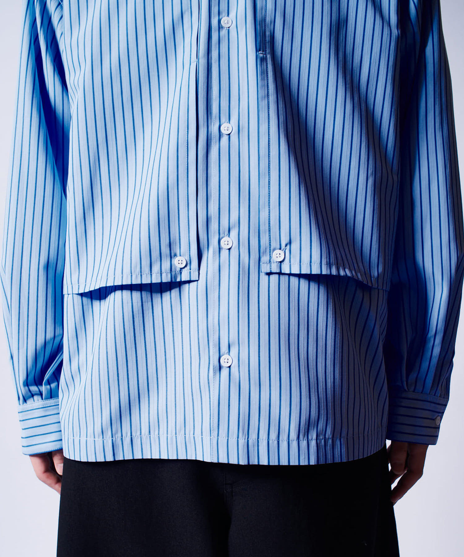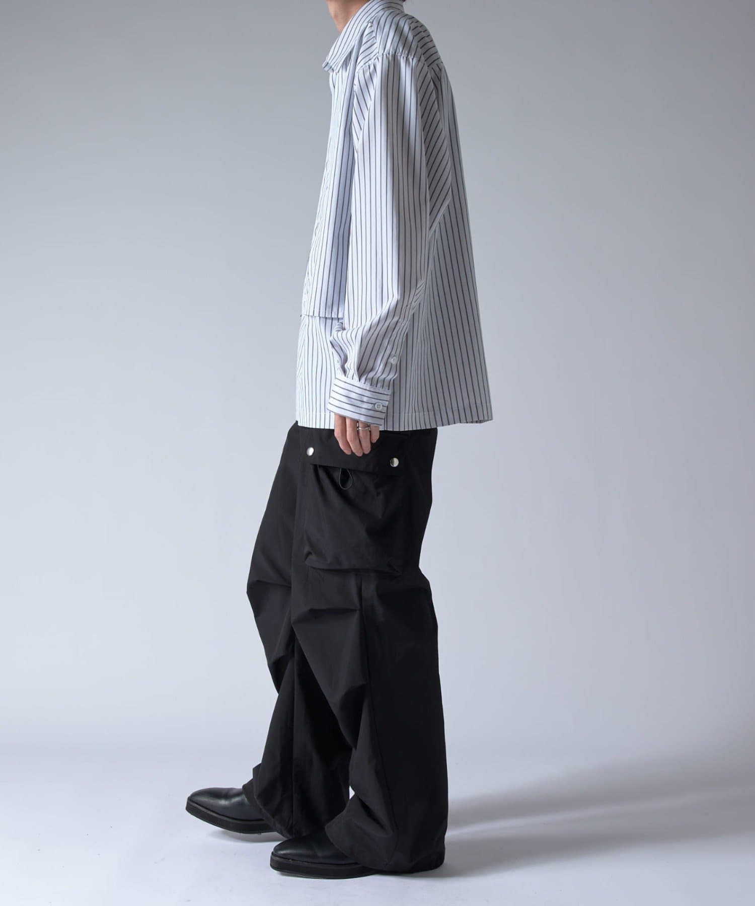 【Neucon/ニューコン】ガンフラップオーバサイズストライプシャツ