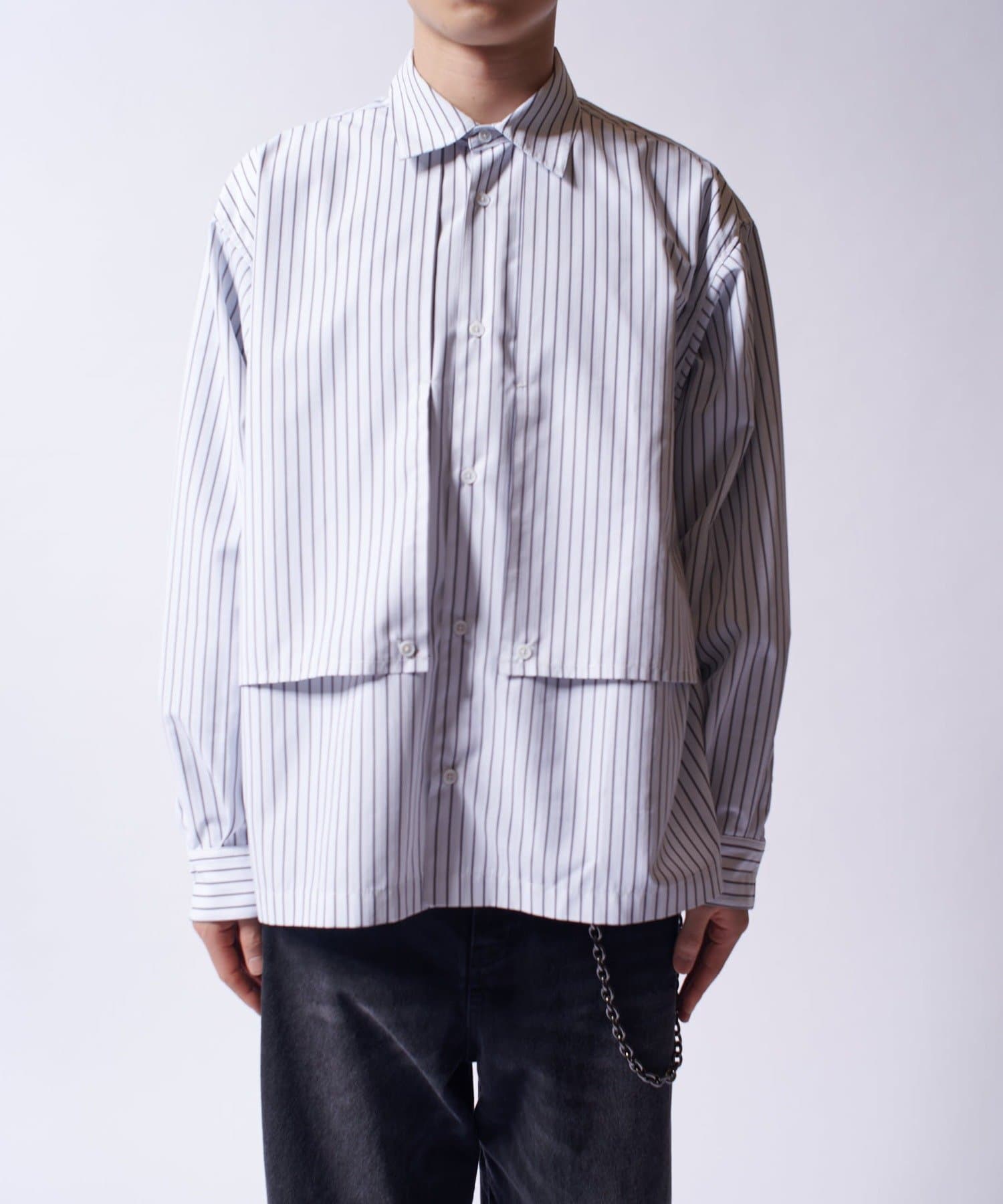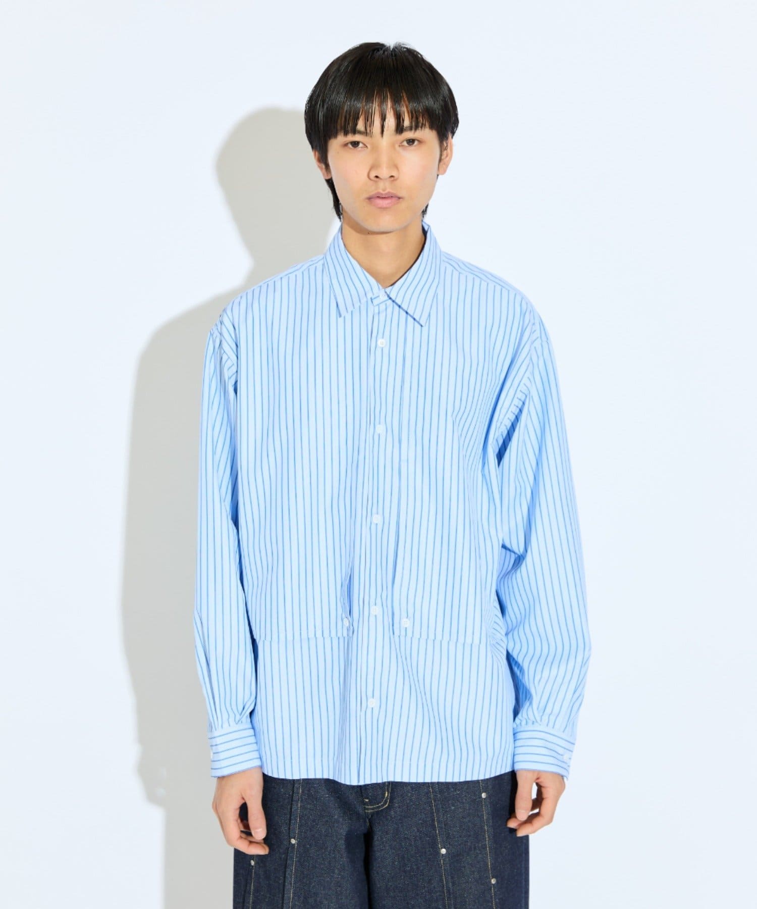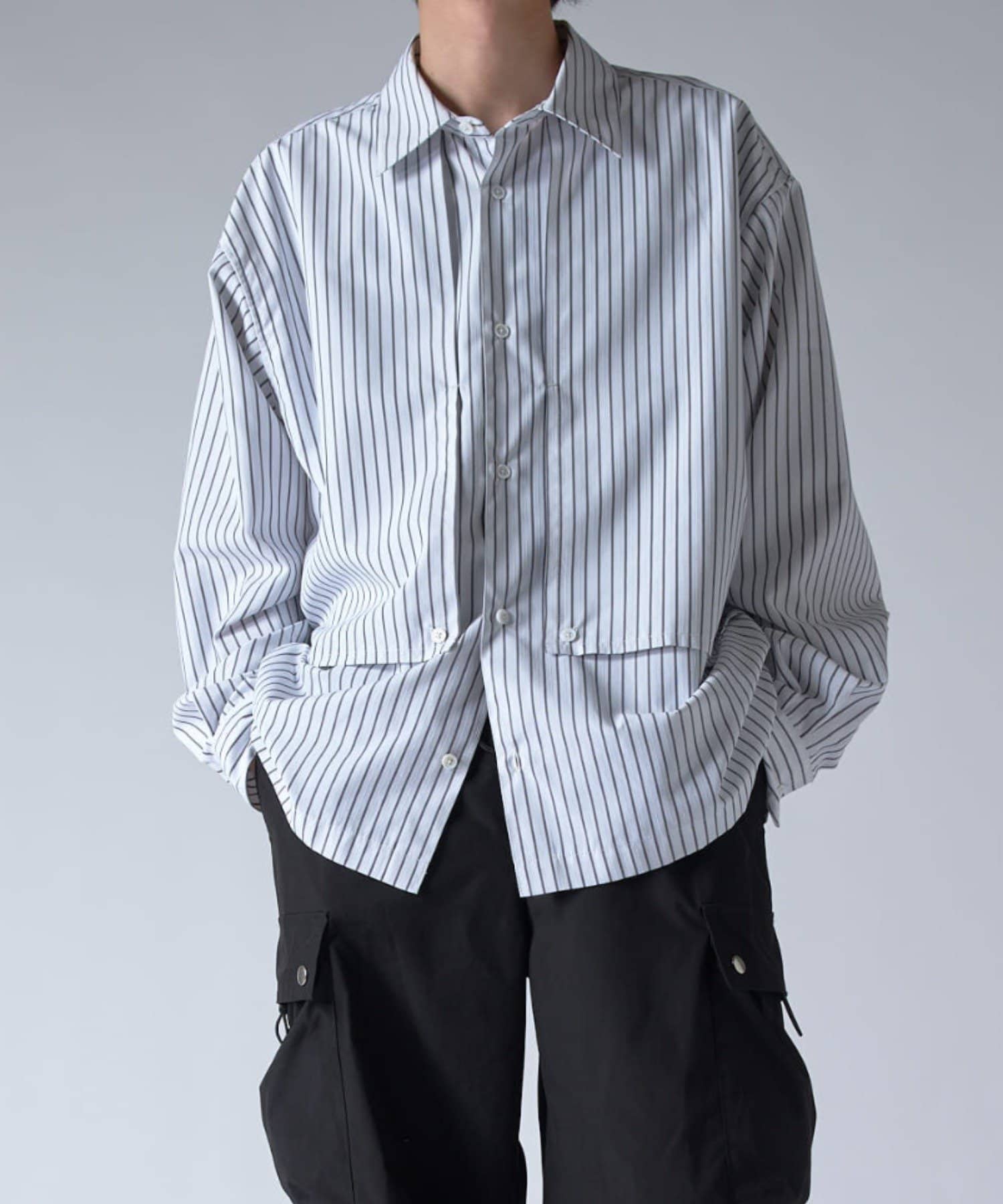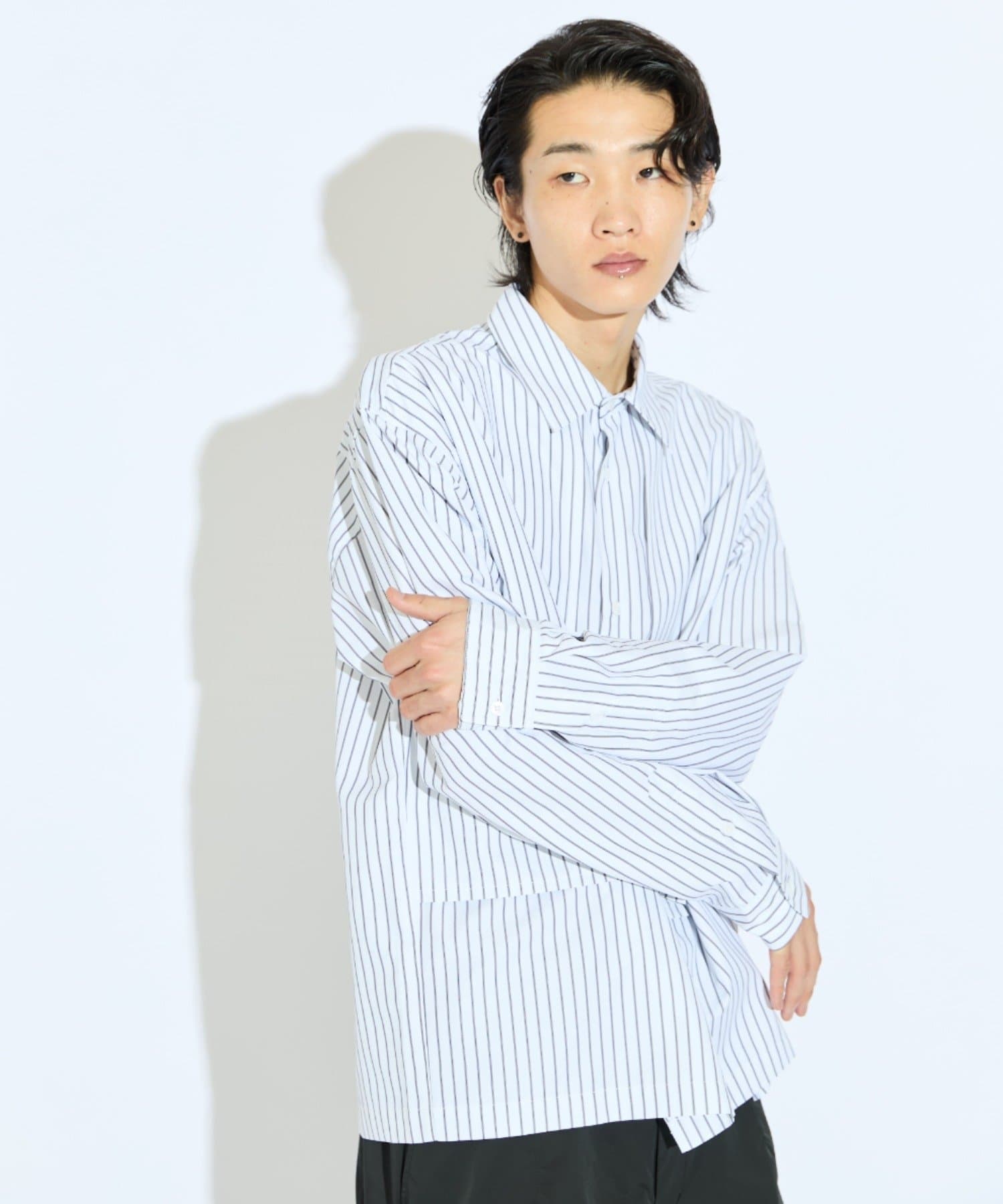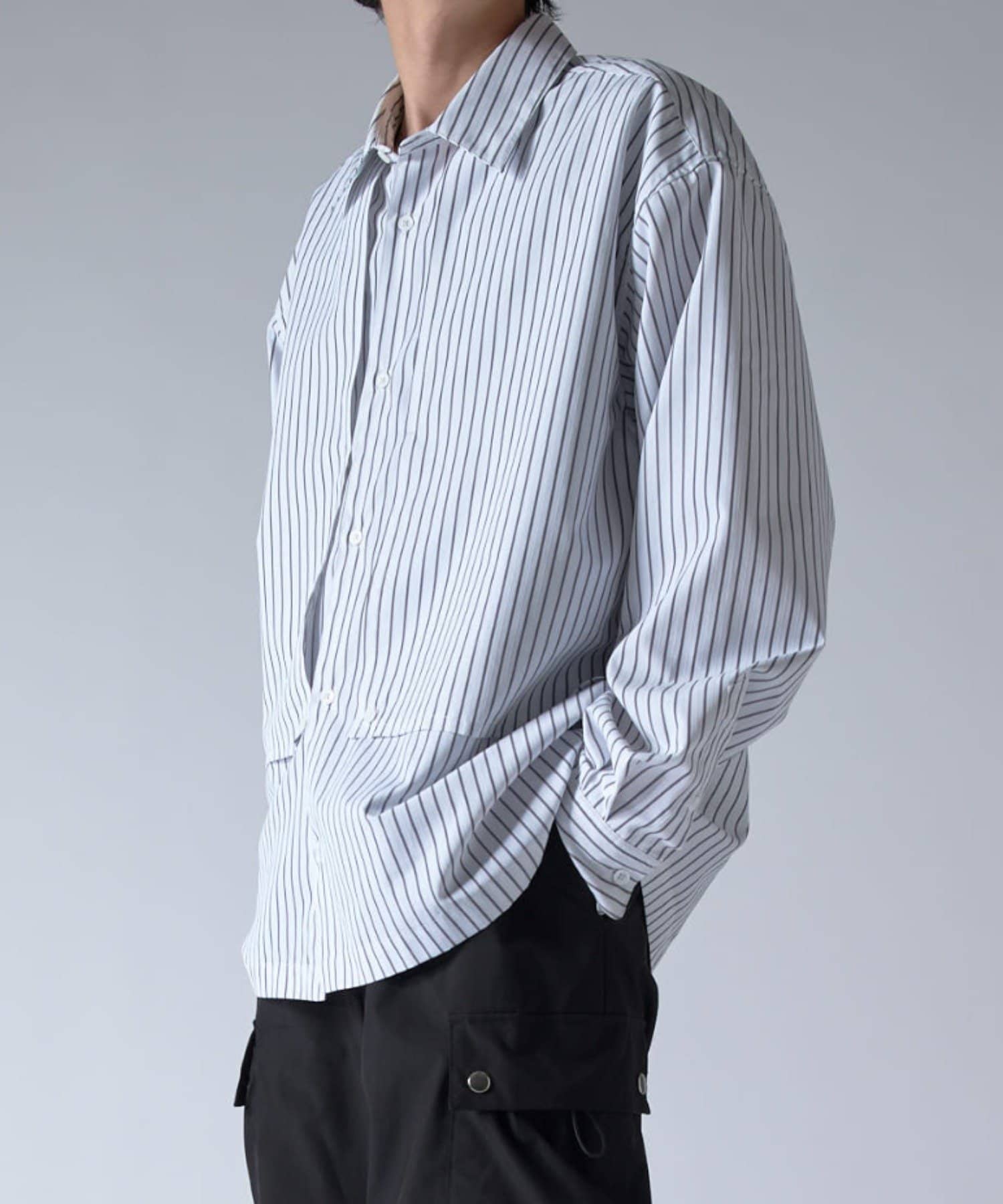 TOP > Lui's > メンズ > トップス > シャツ/ブラウス(ボタン) > 【Neucon/ニューコン】ガンフラップオーバサイズストライプシャツ