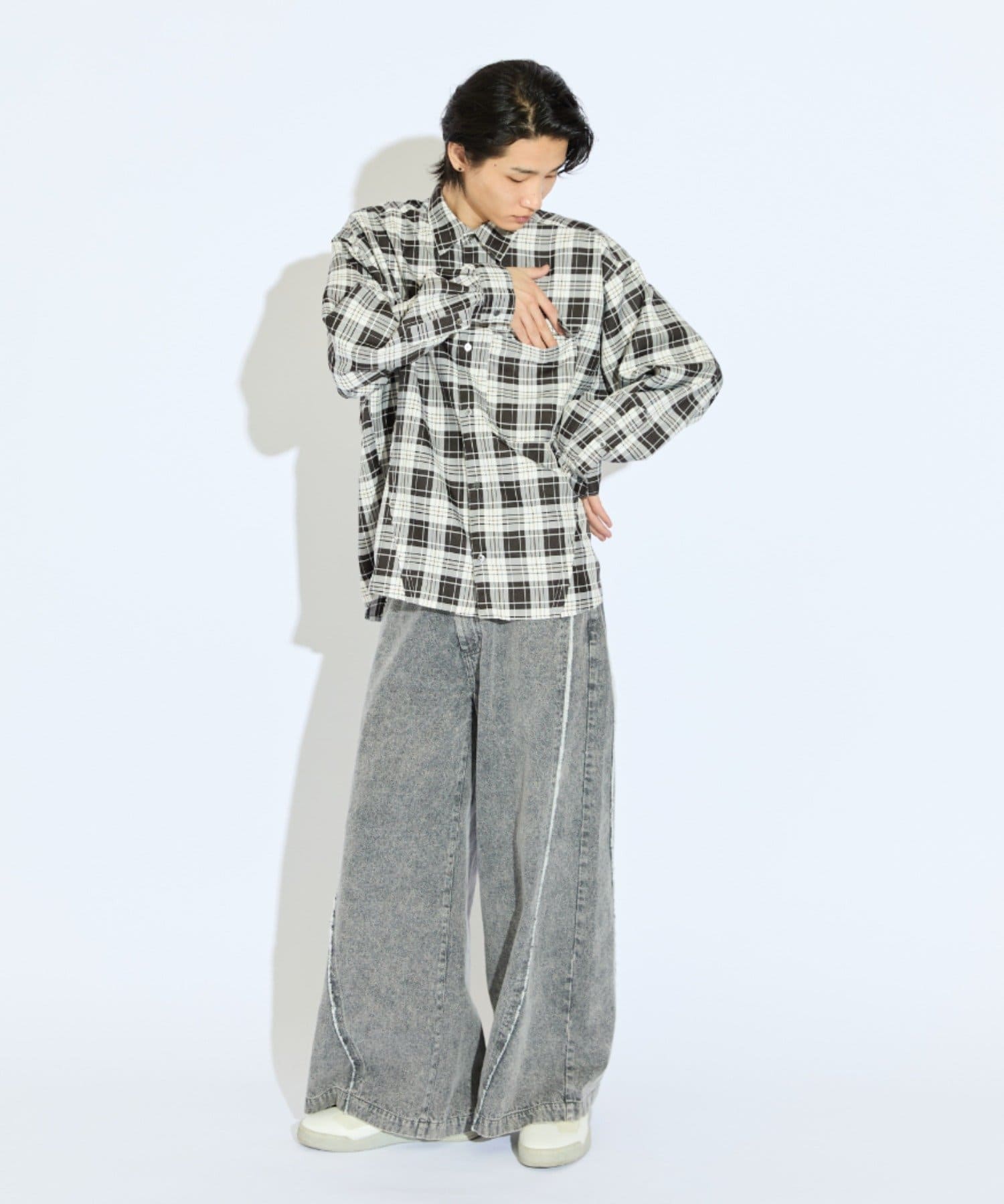 【Neucon/ニューコン】アイレットポケットオーバーサイズチェックシャツ