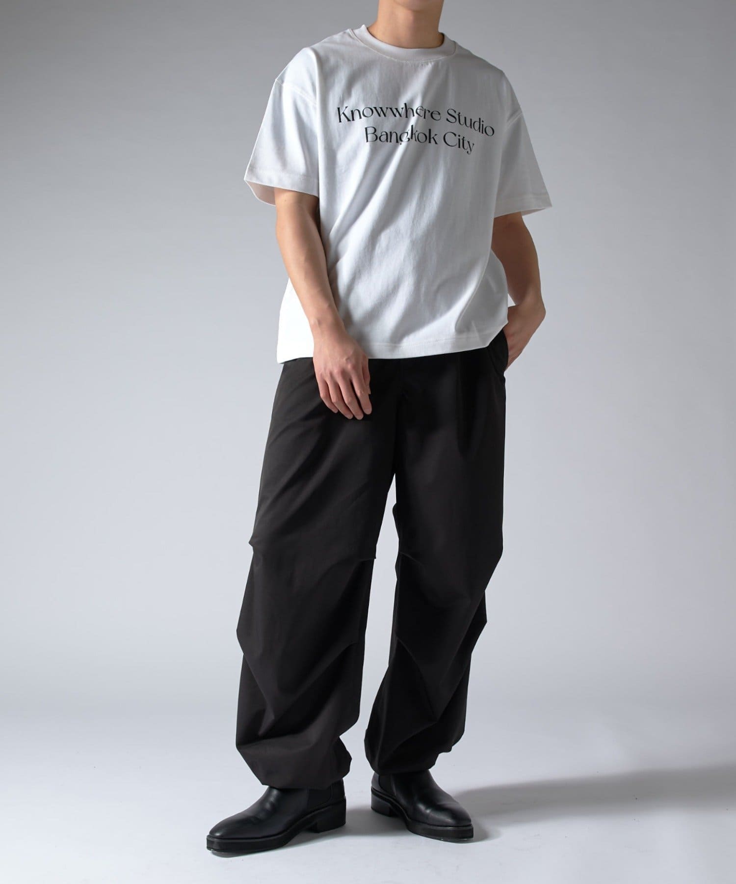 KNOWWHERE STUDIOは、ロックミュージックや90年代カルチャーへの思いから誕生したストリートブランド。バンドTシャツの古着販売からスタートし現在では、ロックとヴィンテージ文化にインスパイアされた独自の衣類を制作・販売し人気を集める。バンコクで人気のピザ屋 KENNY'Sとのコラボレーションやタイ発の革靴ブランドとのコラボなど、ジャンルの垣根を超えたブランドコラボレーションが盛ん。