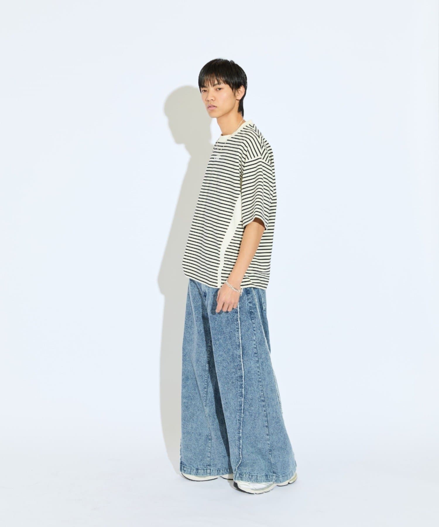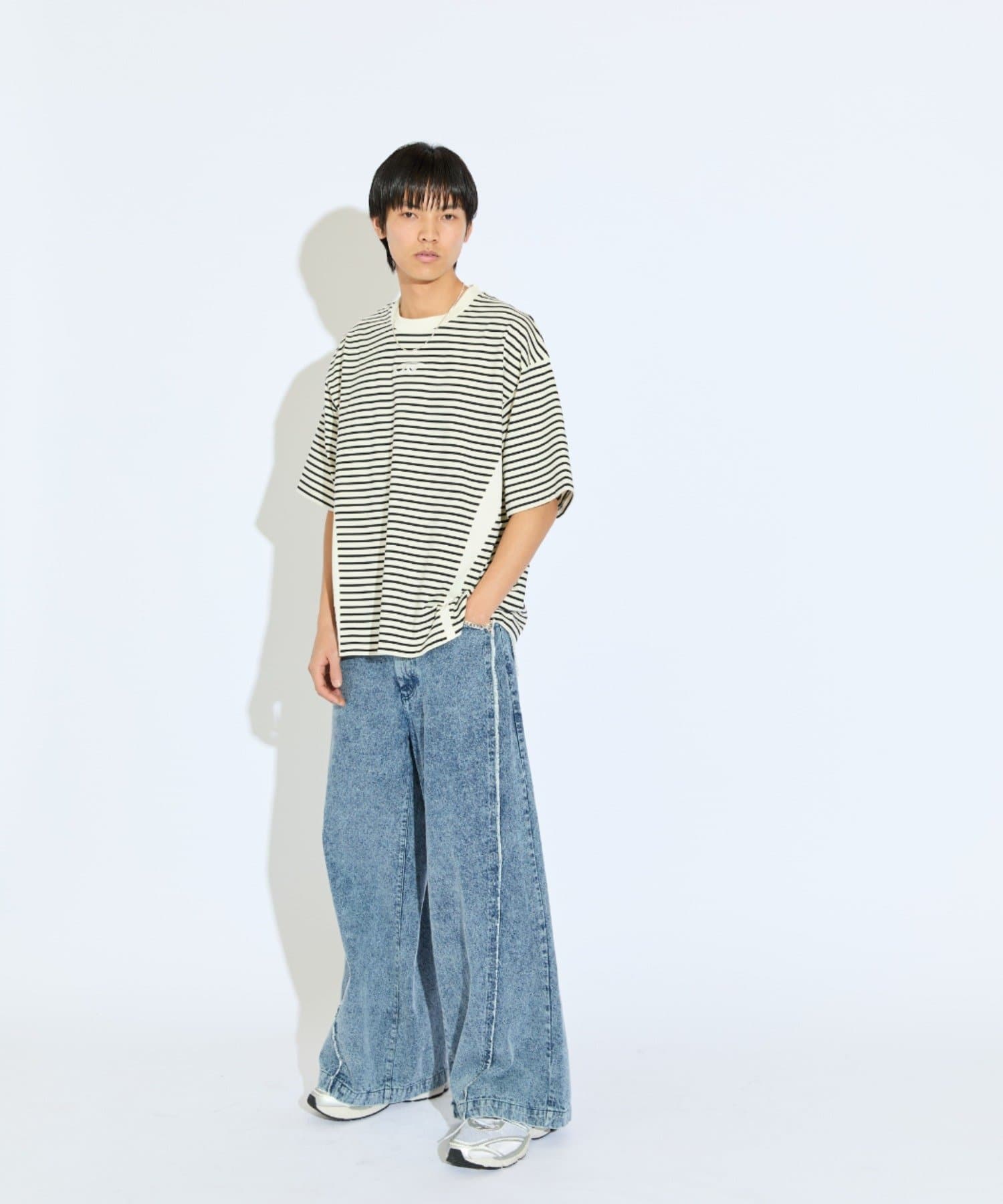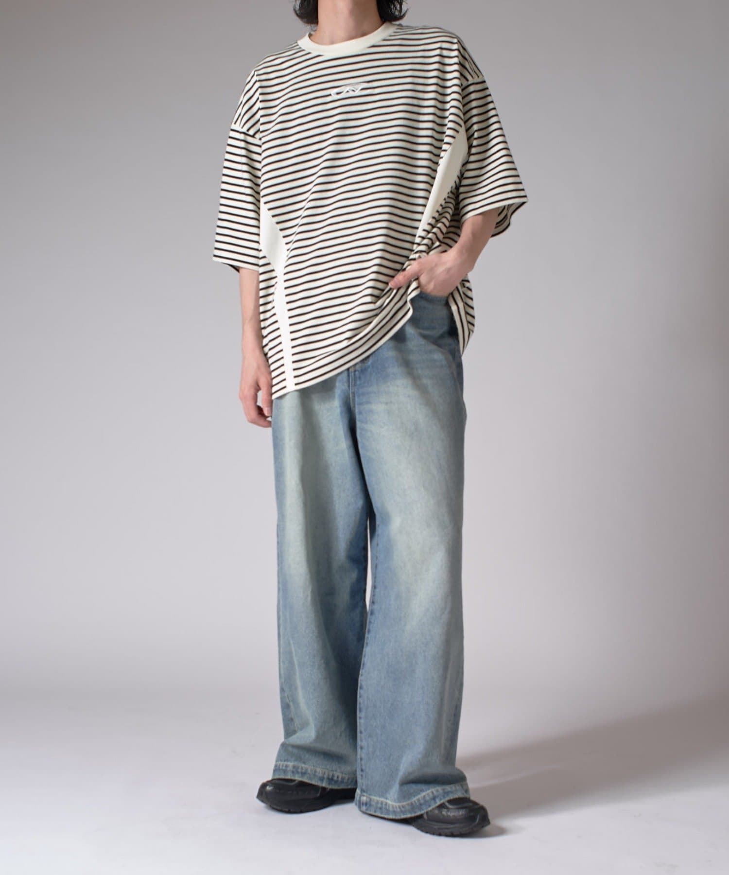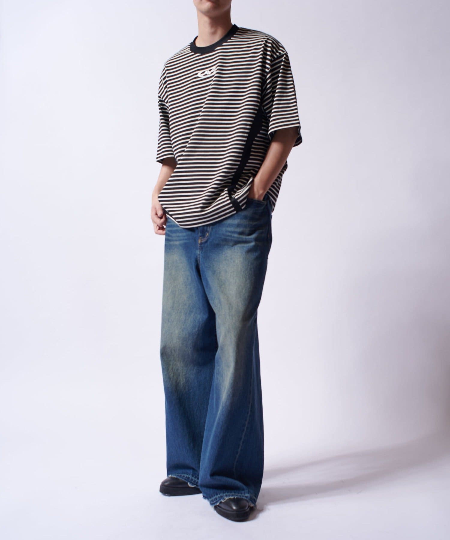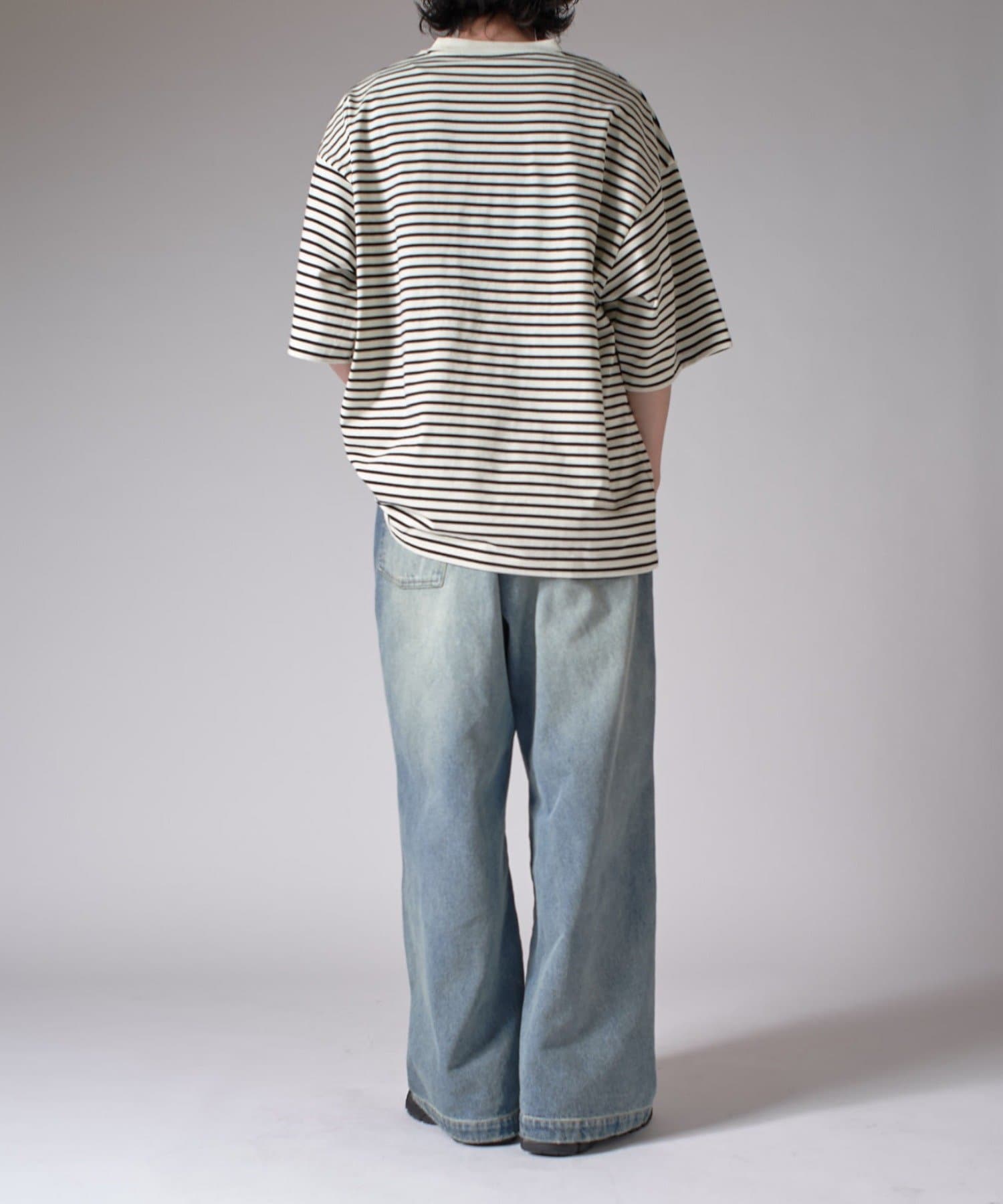 【Neucon/ニューコン】刺繡ロゴボーダーBIGTシャツ