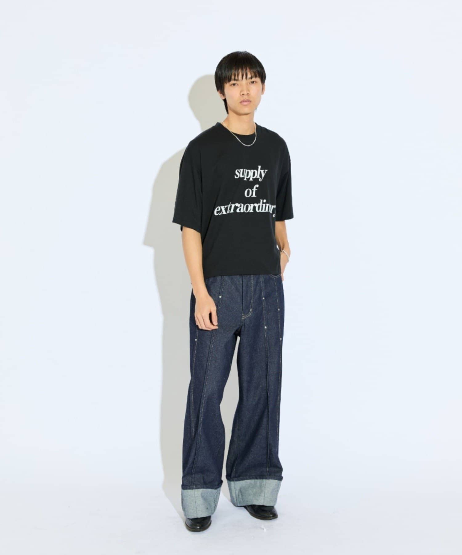 TOP > Lui's > メンズ > トップス > Tシャツ/カットソー > 【Neucon/ニューコン】メッセージグラフィッククロップドBIGT