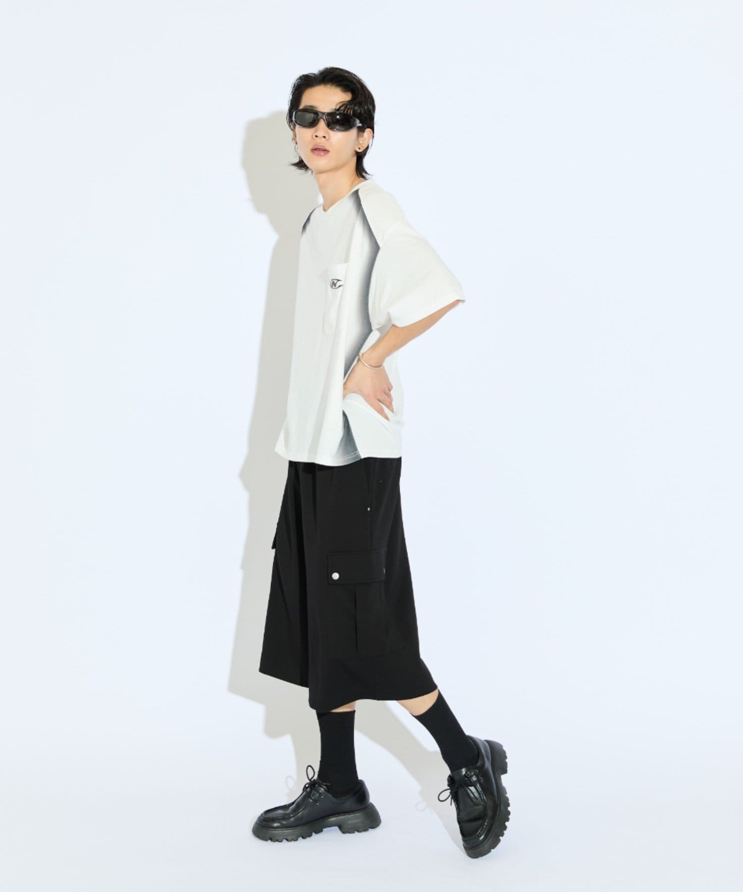 カーゴパンツと合わせたモードストリートスタイルがおすすめです。
