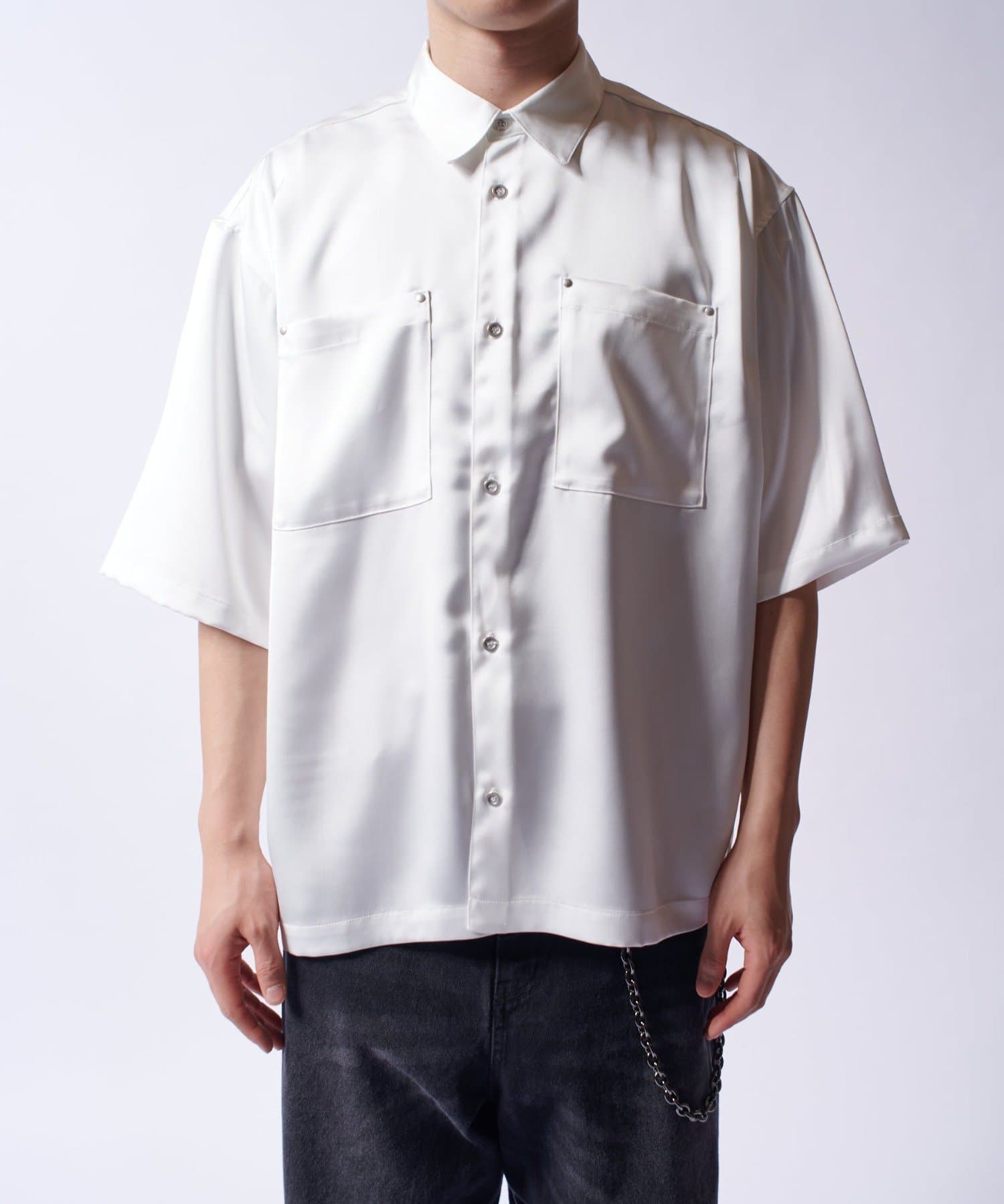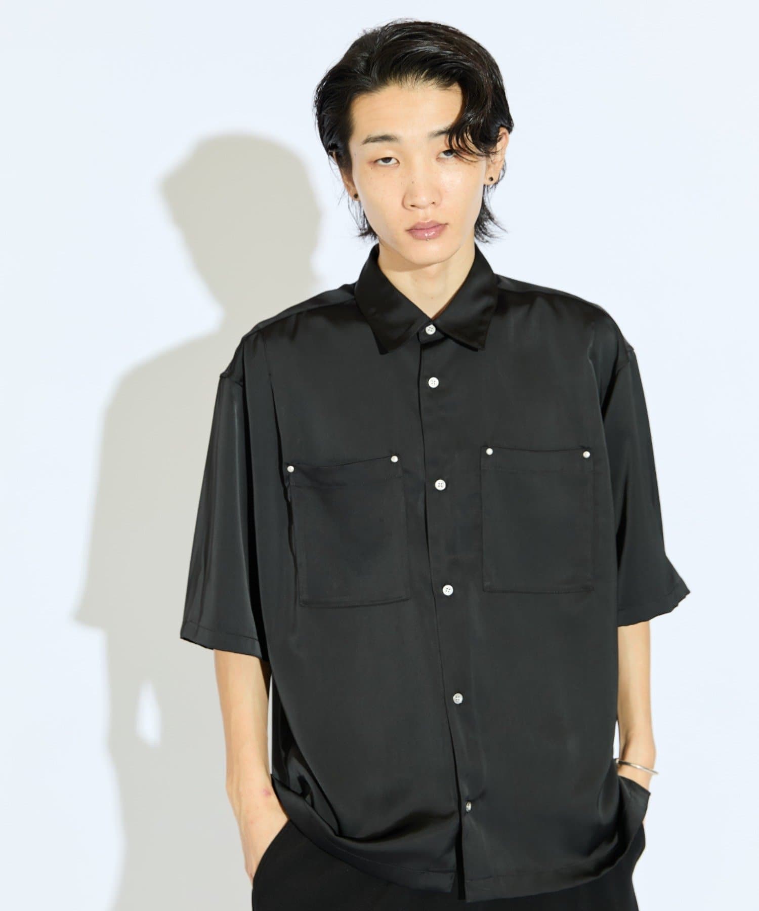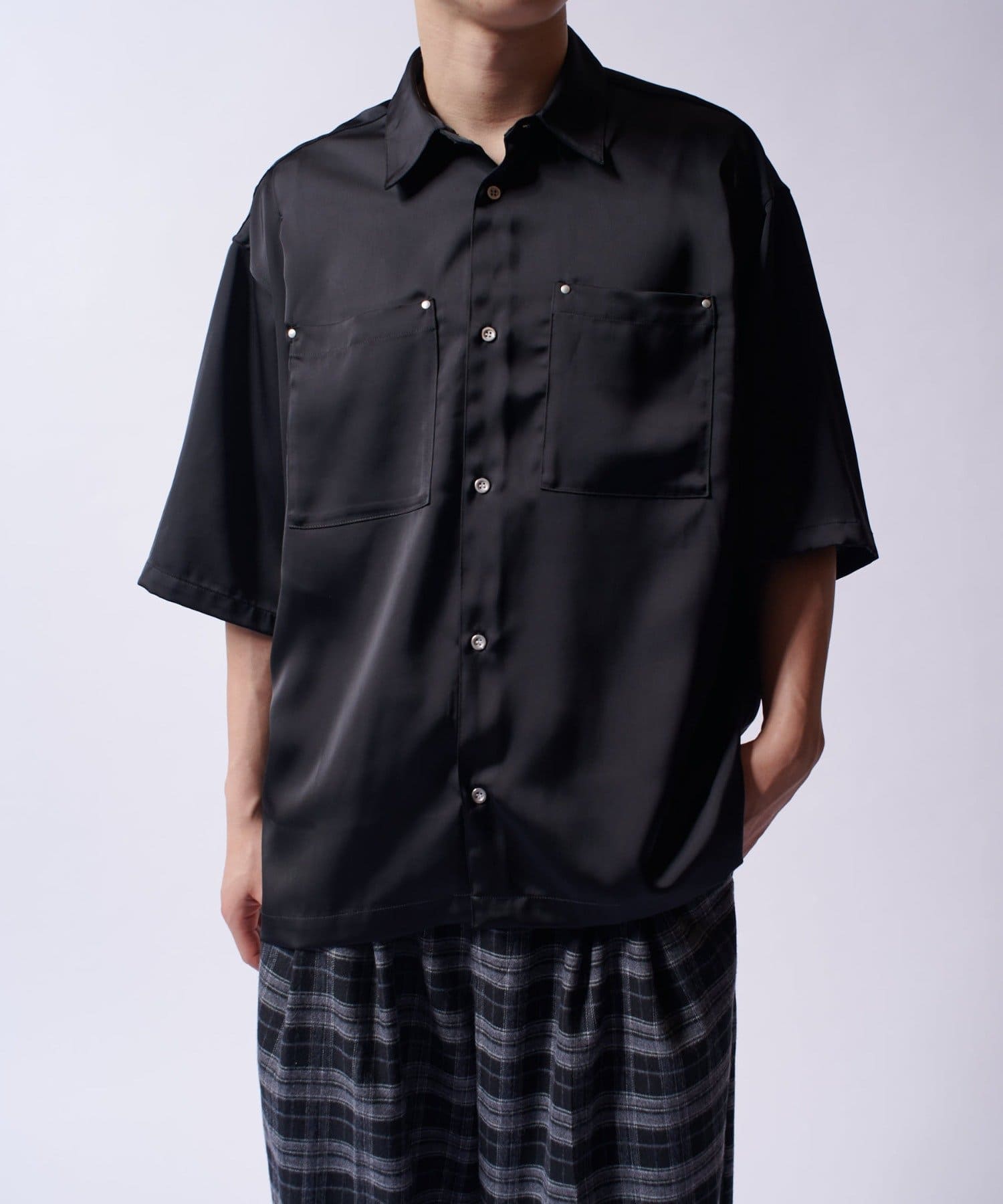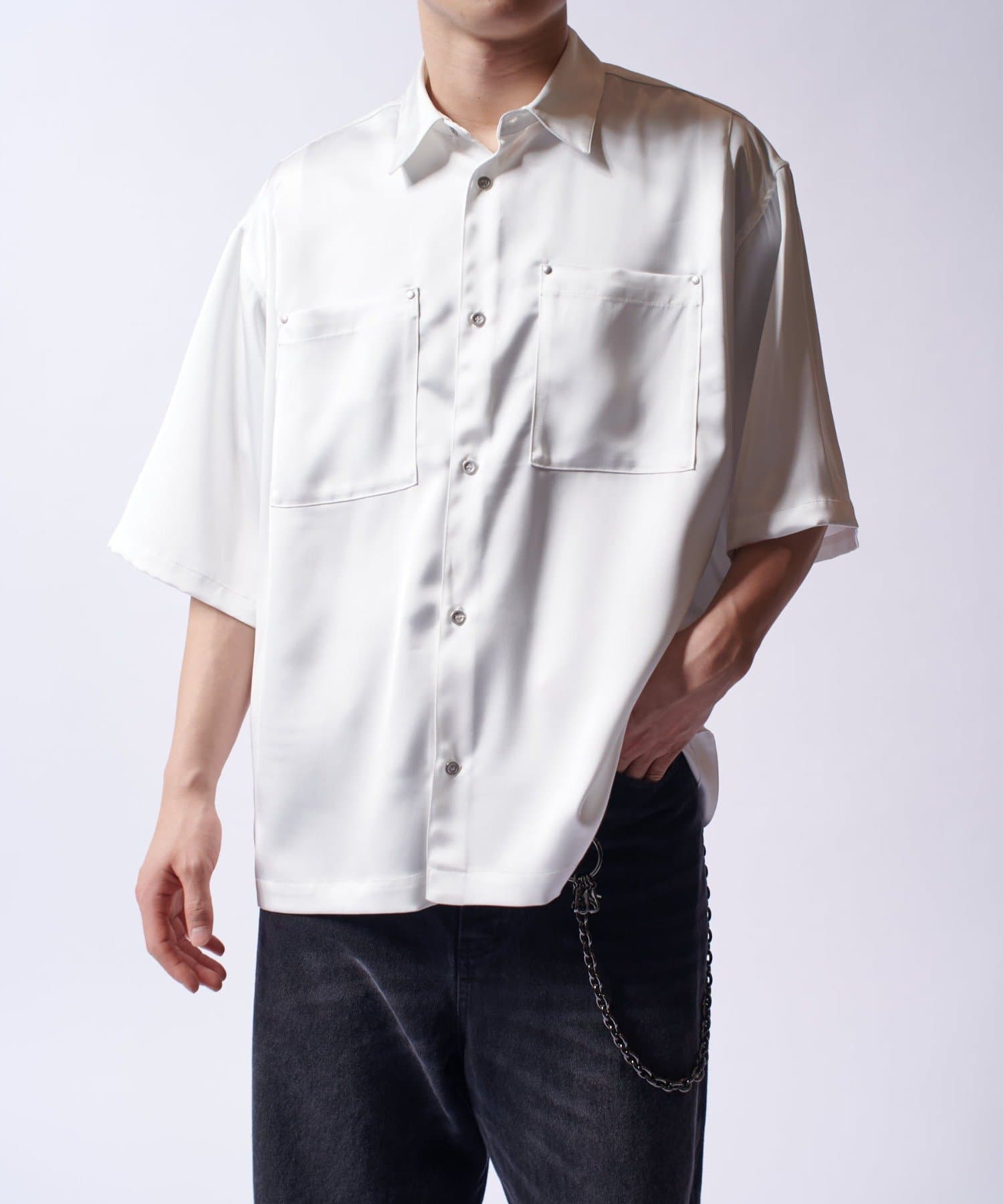 【Neucon/ニューコン】リベットデザインダブルポケットサテンオーバーシャツ