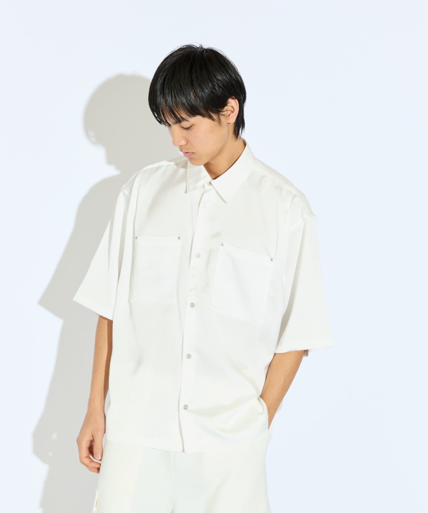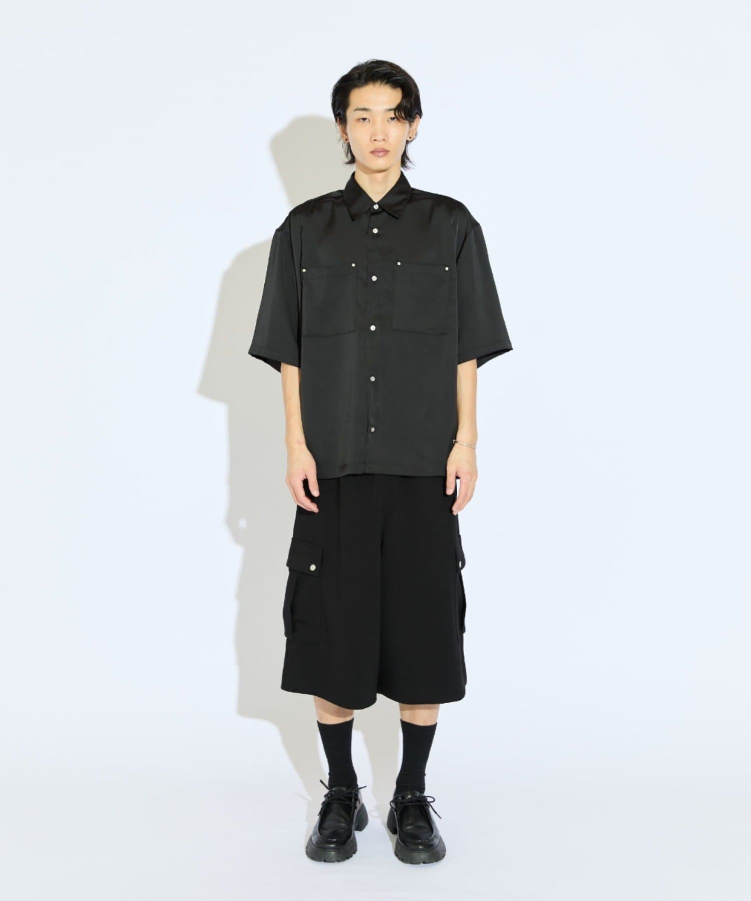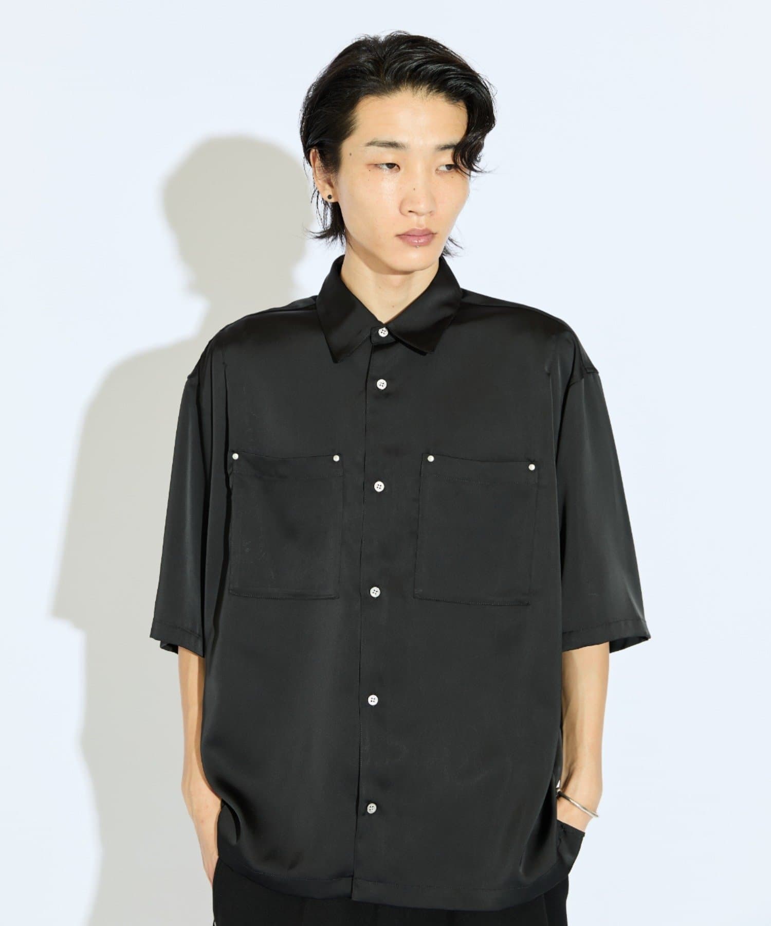 【Neucon/ニューコン】リベットデザインダブルポケットサテンオーバーシャツ