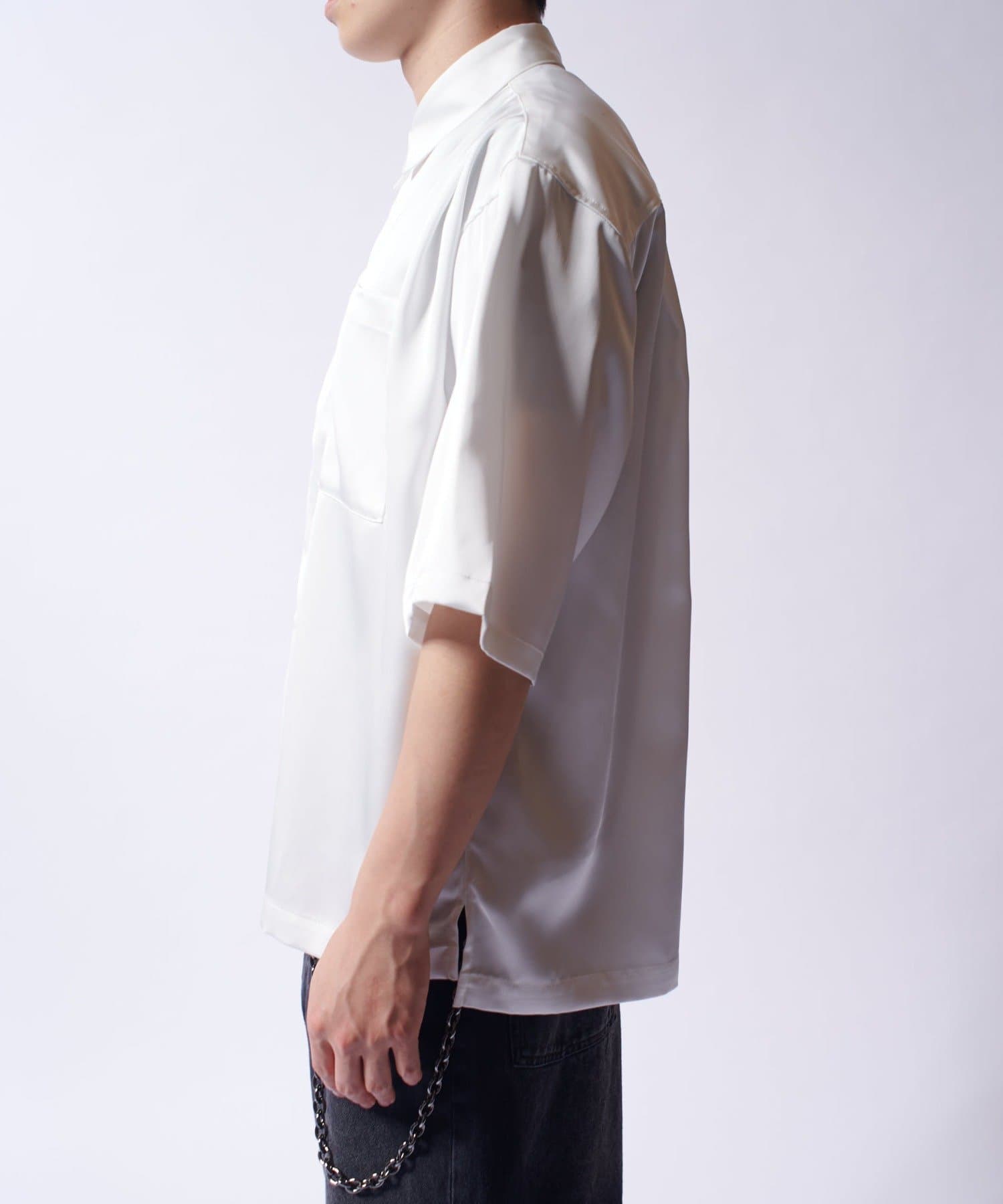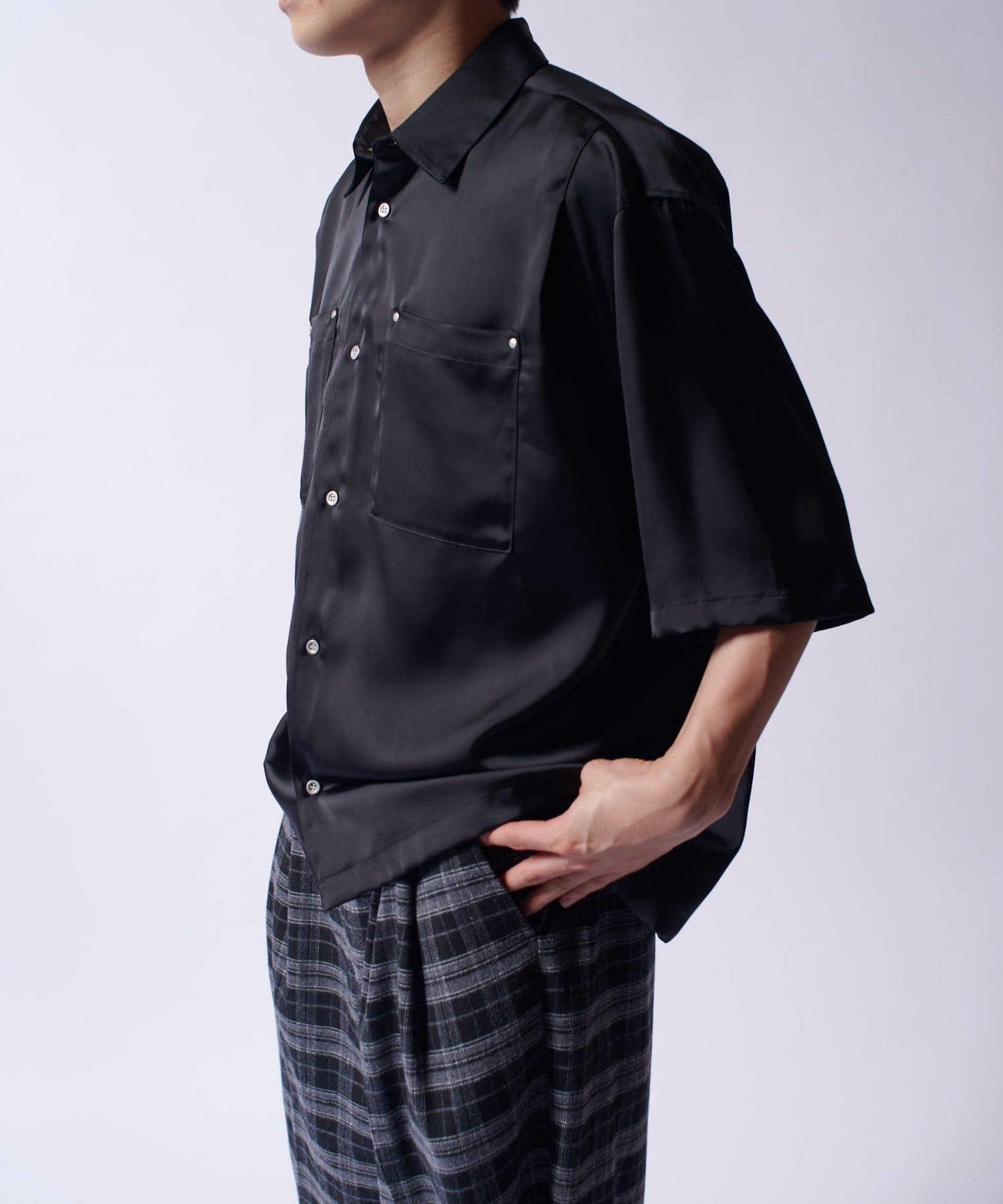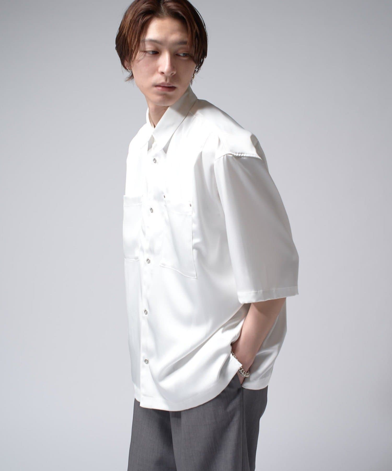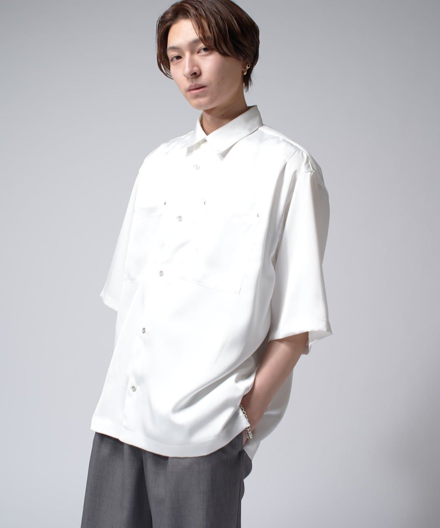 【Neucon/ニューコン】リベットデザインダブルポケットサテンオーバーシャツ