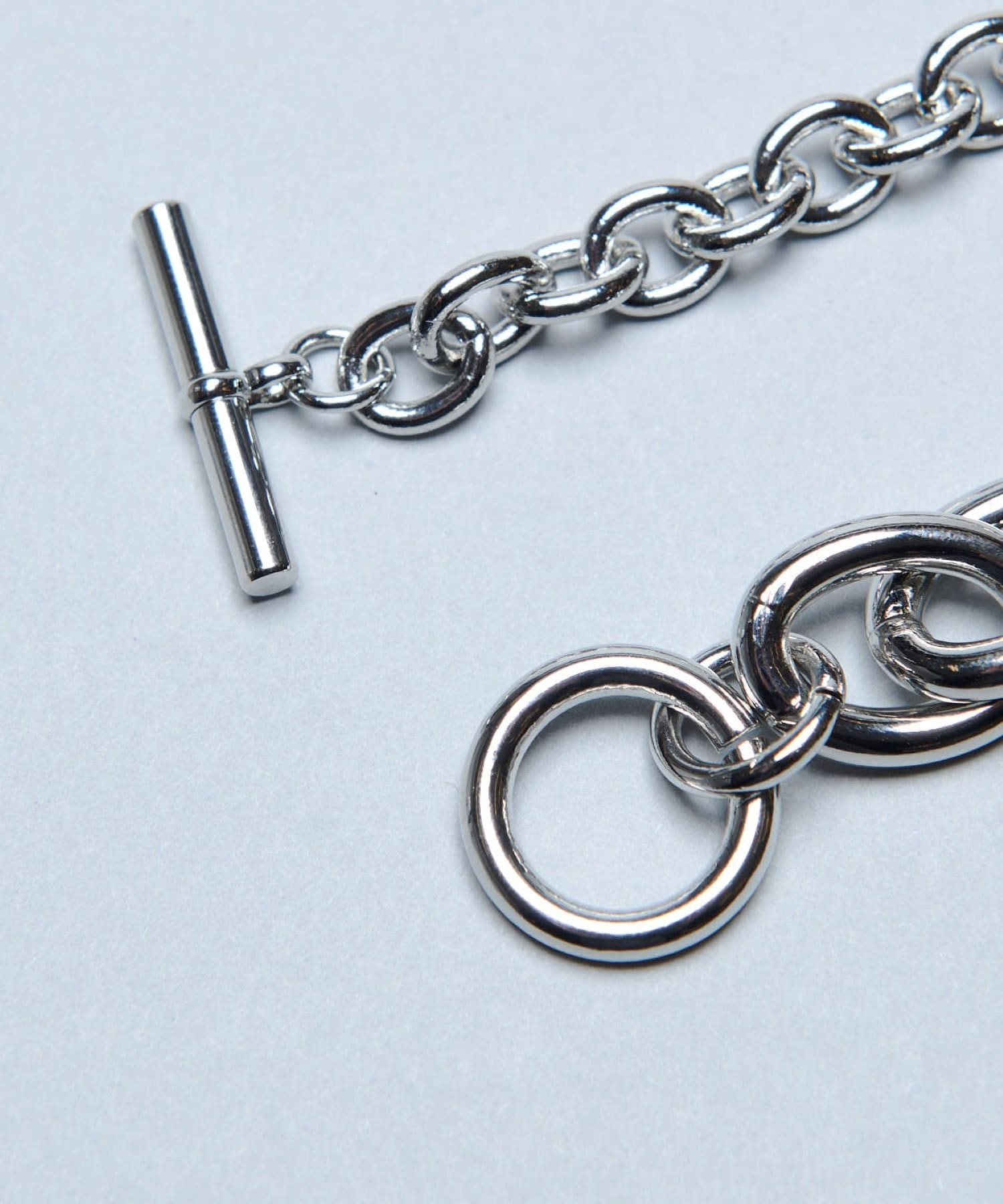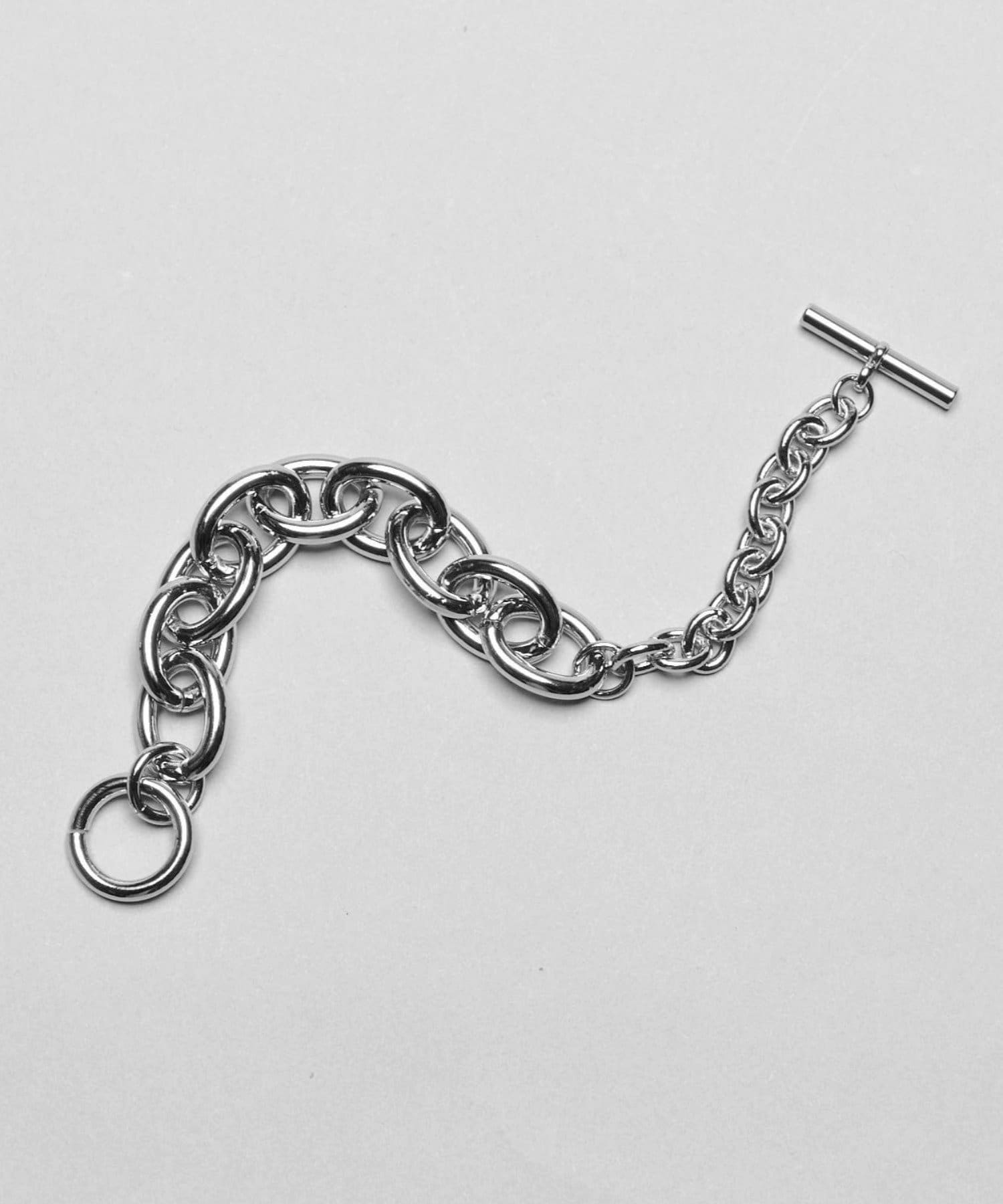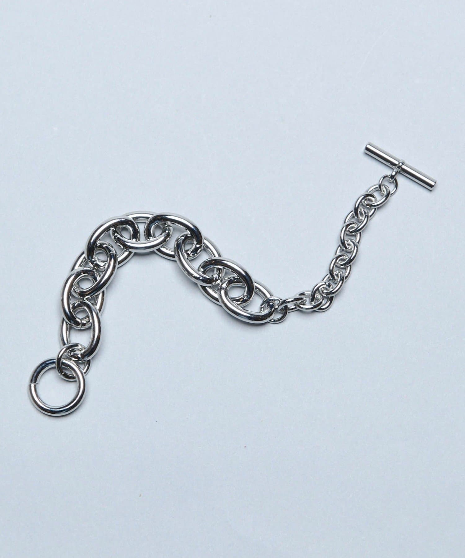 大きさの異なるチェーンを組み合わせた、コンビネーションブレスレッド。
