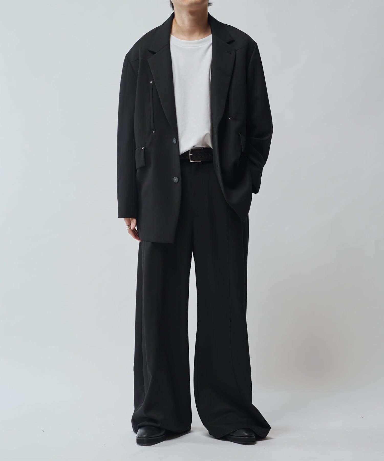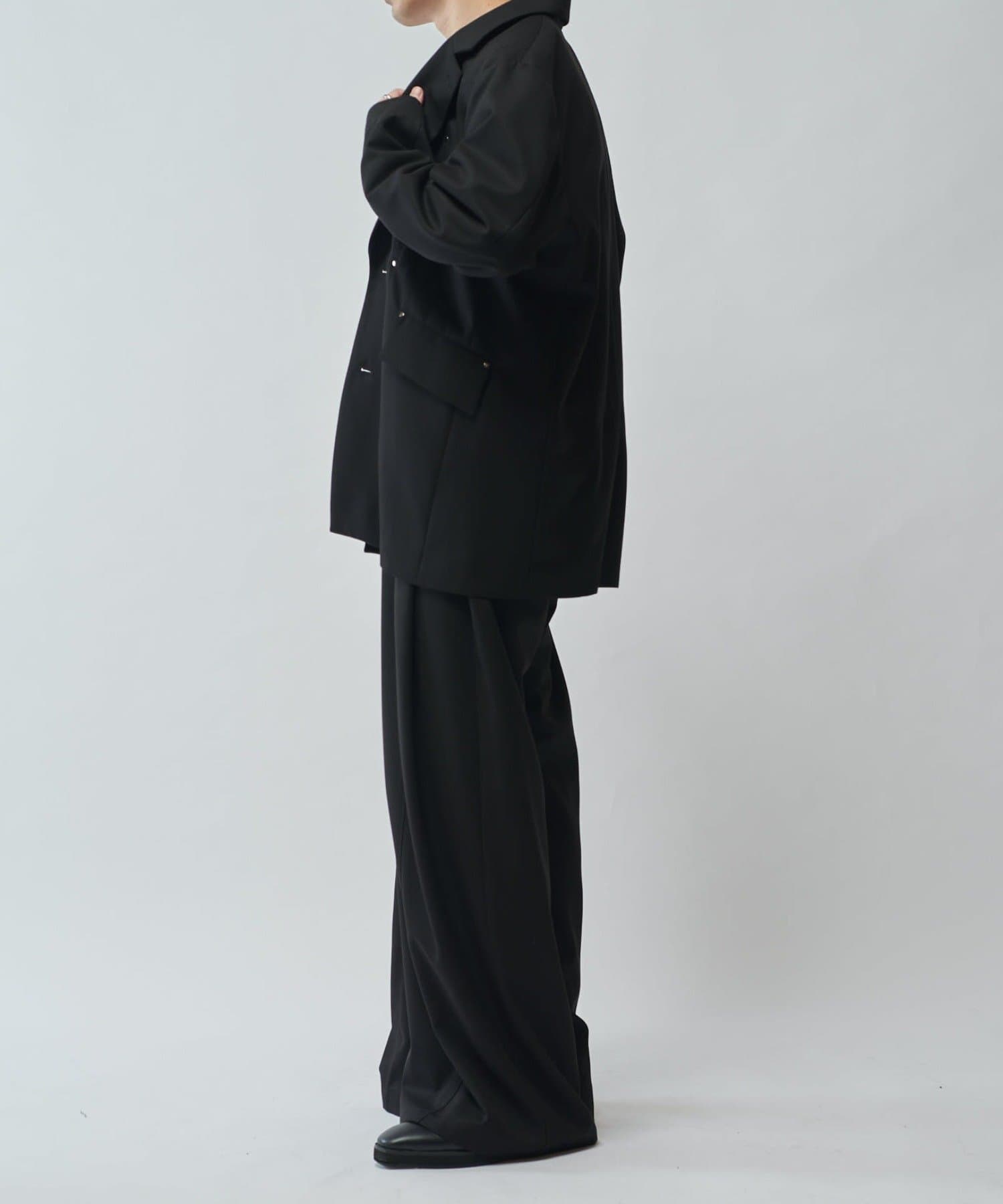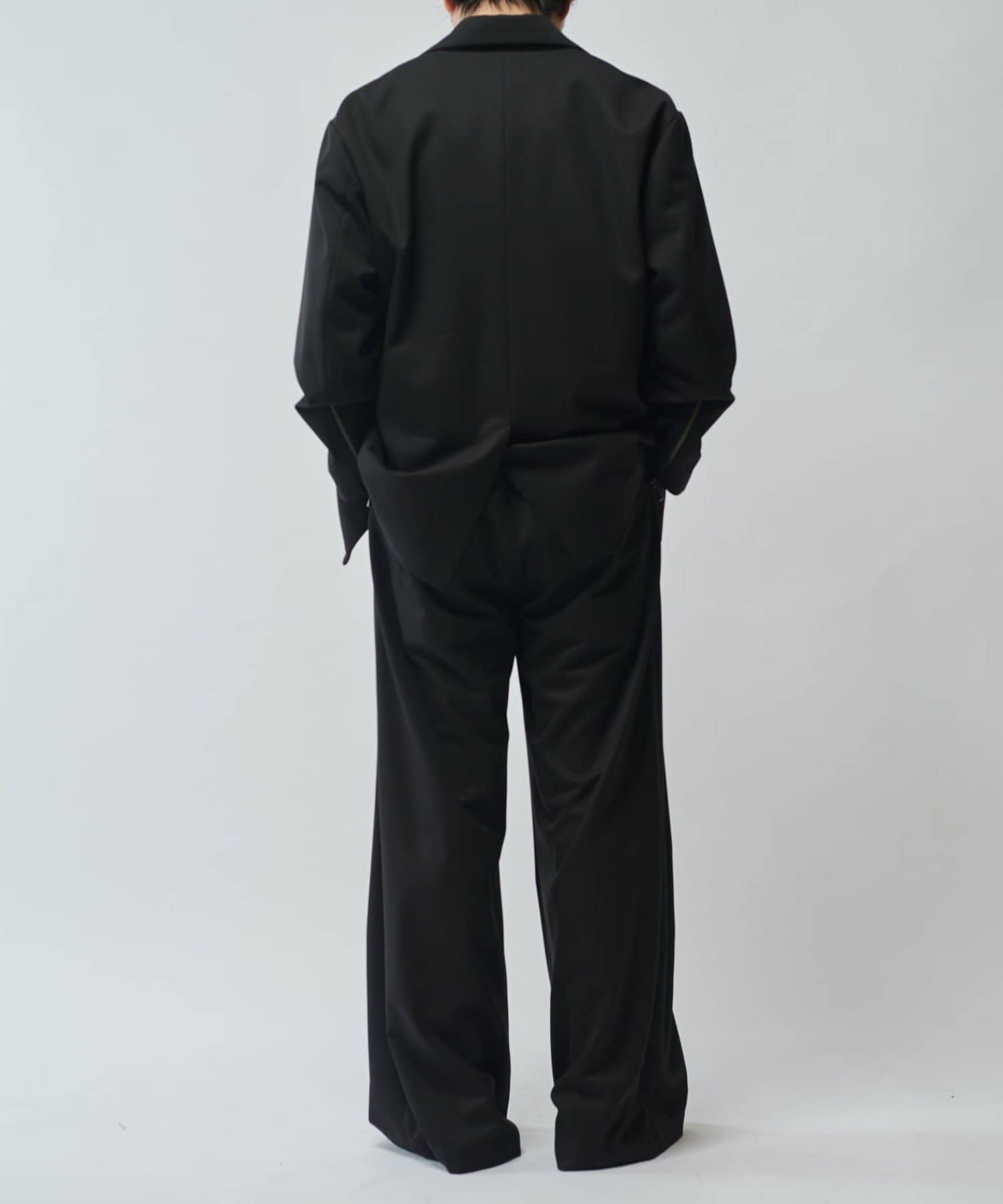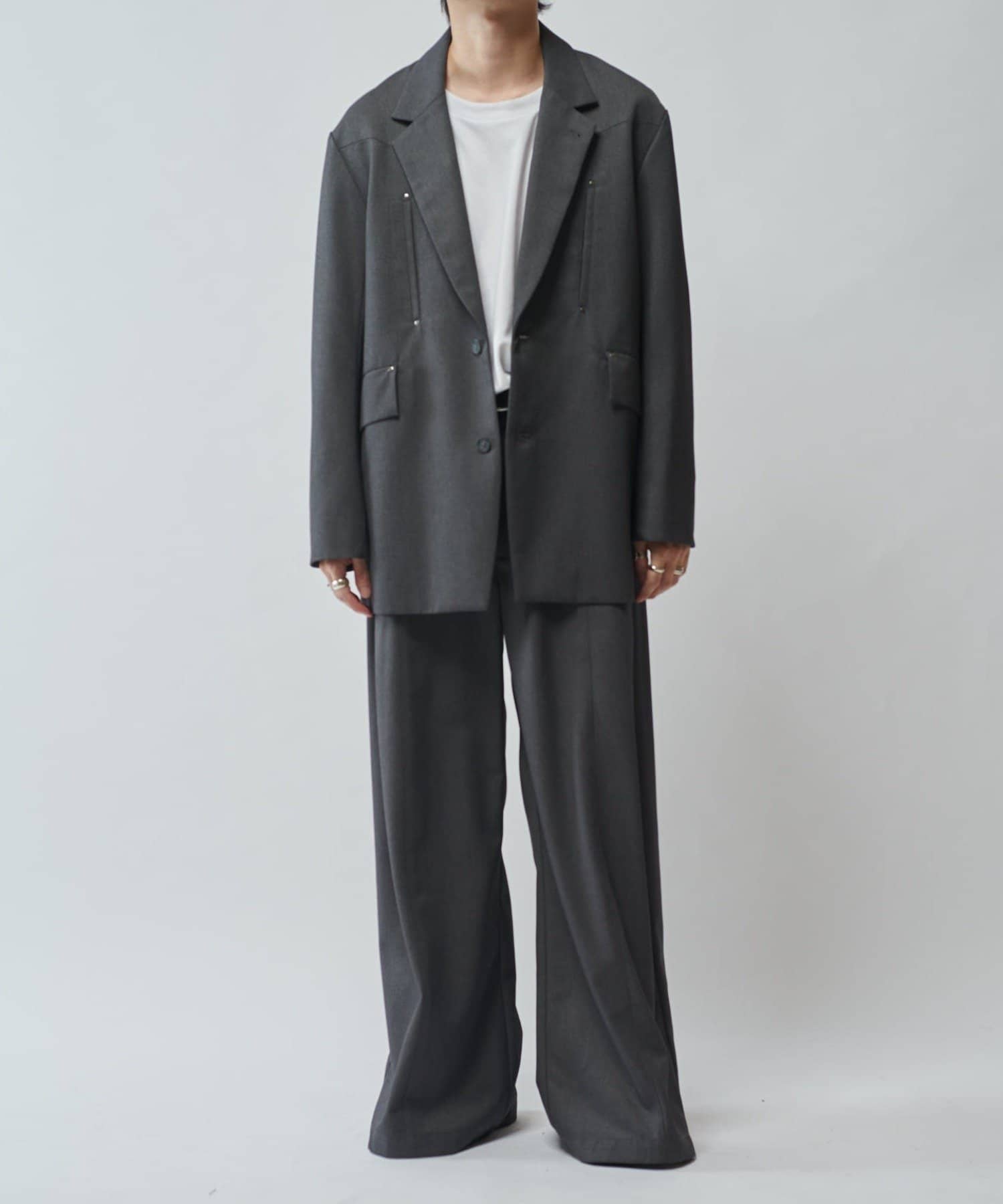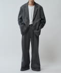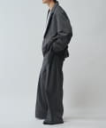 同素材のジャケットとのセットアップスタイルもおすすめです。