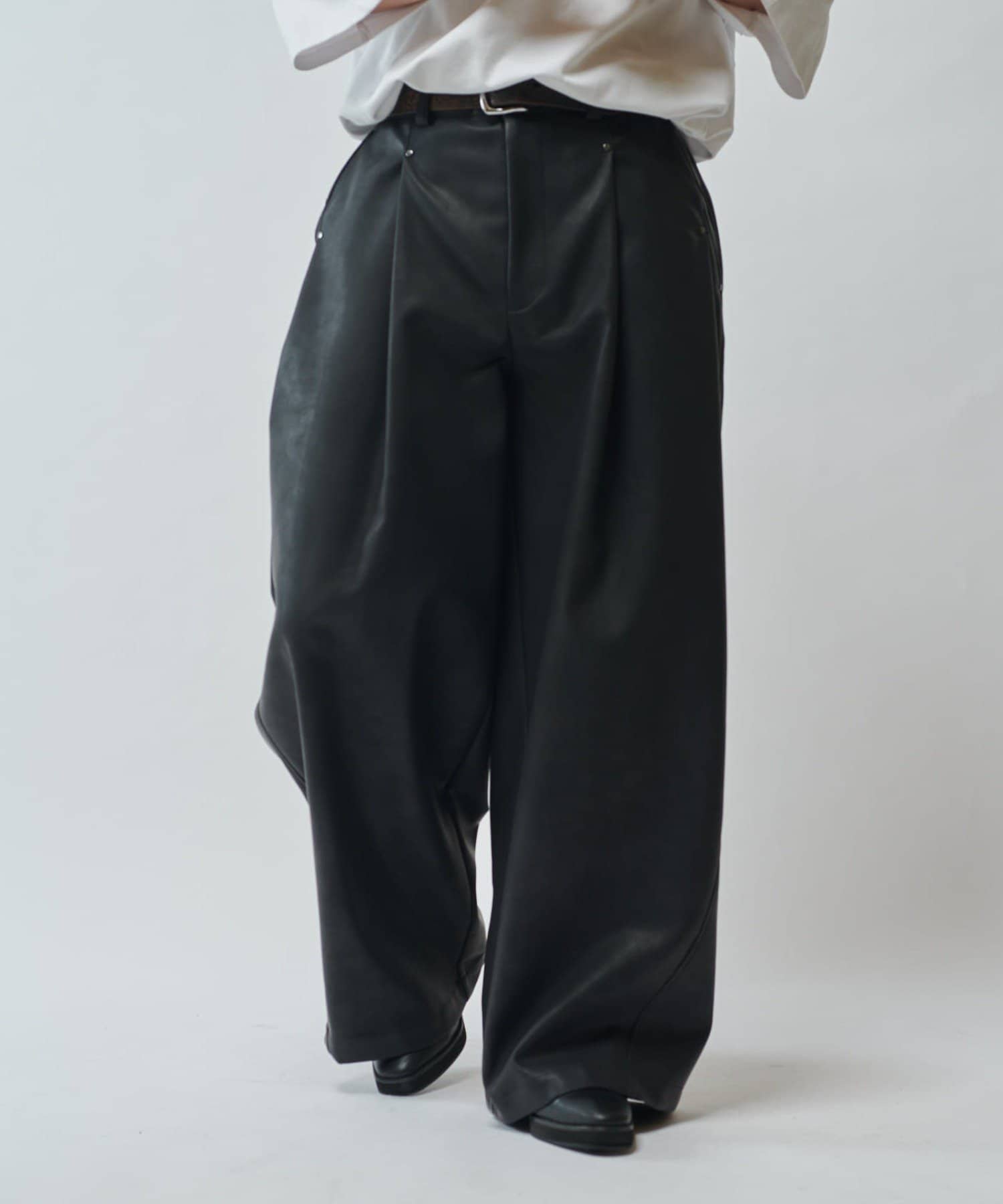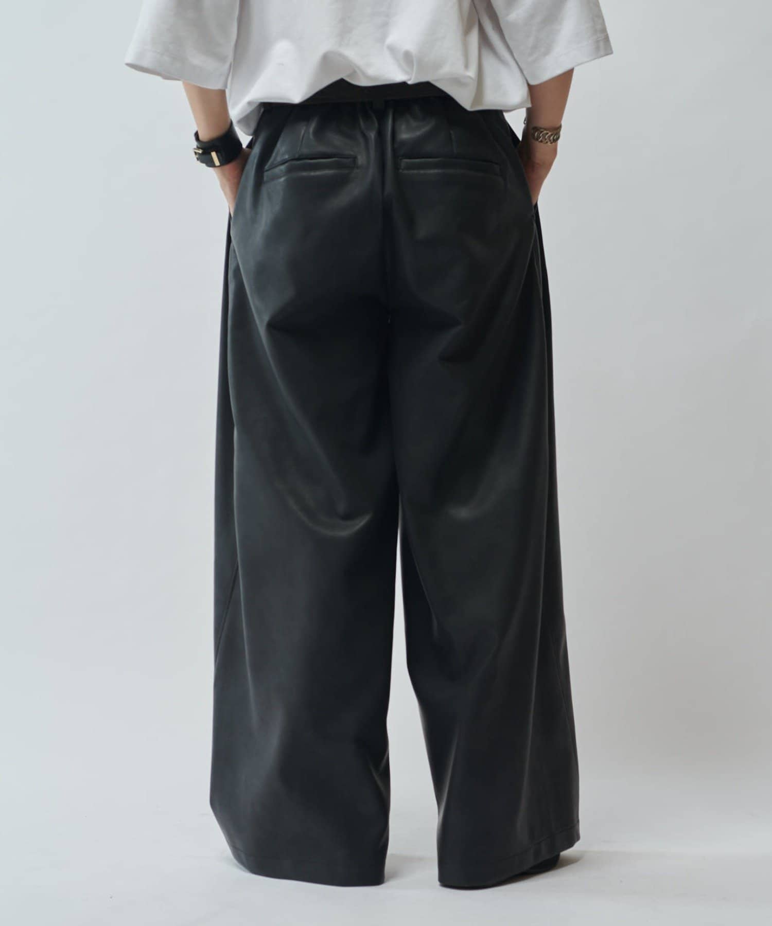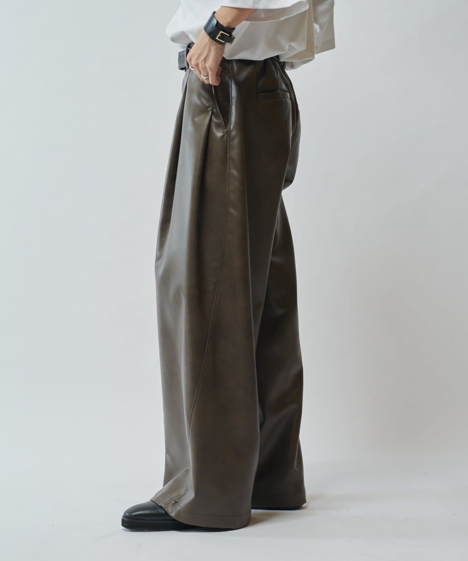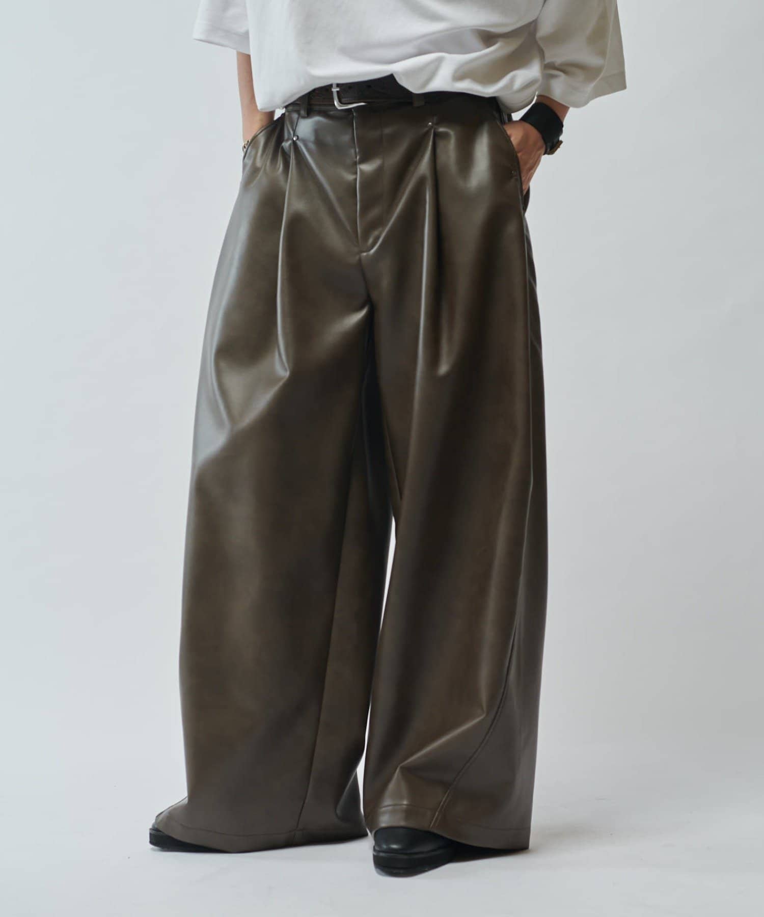 【SURJENT】 シンセティックレザーワイドストレートパンツ