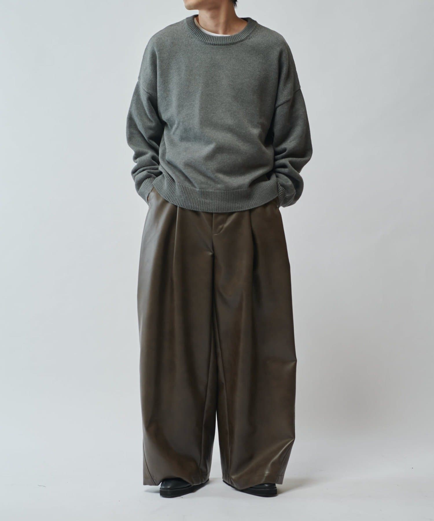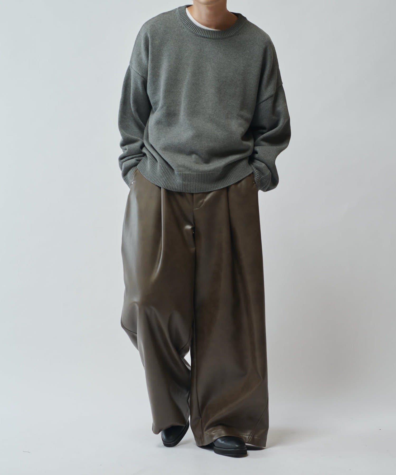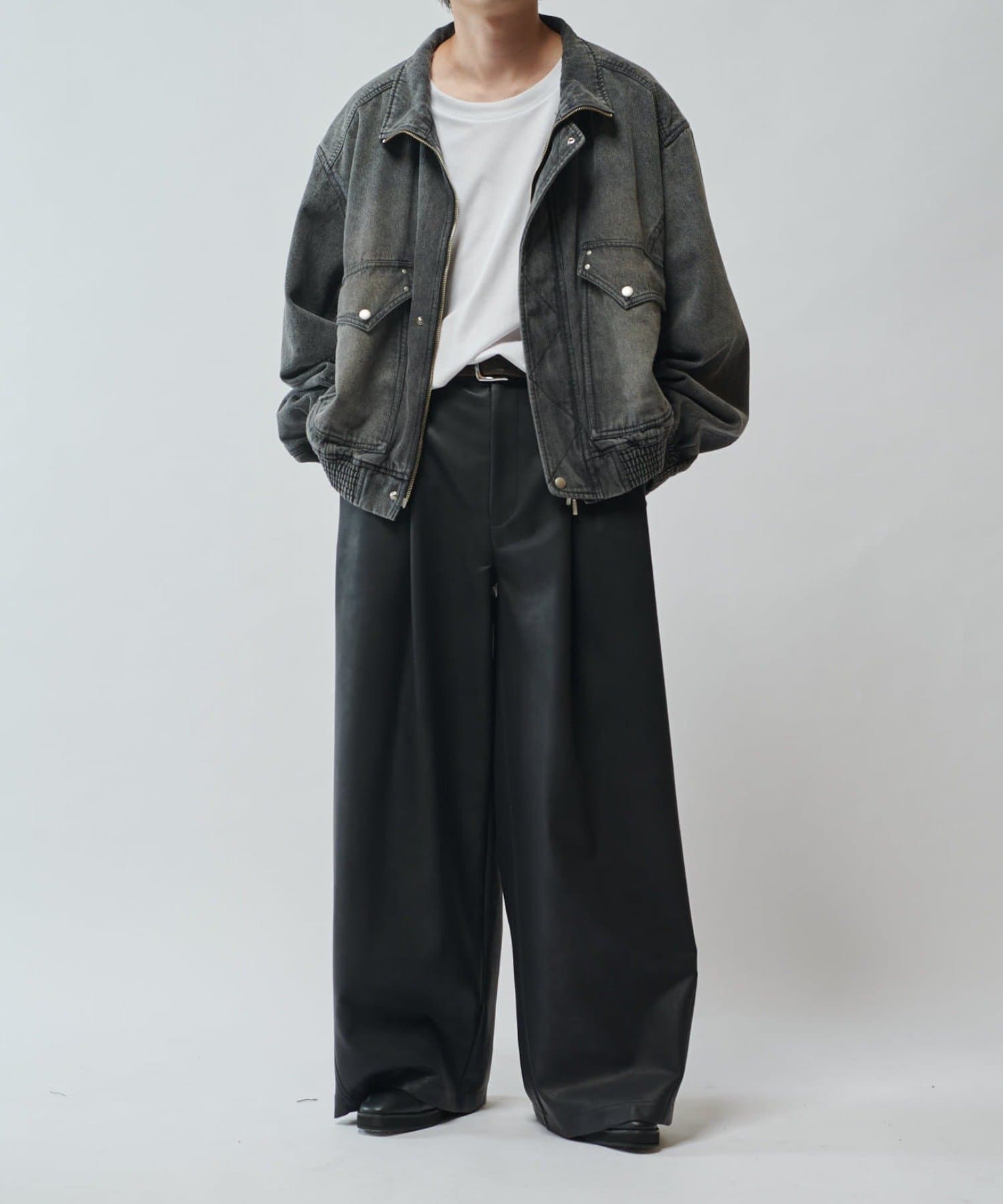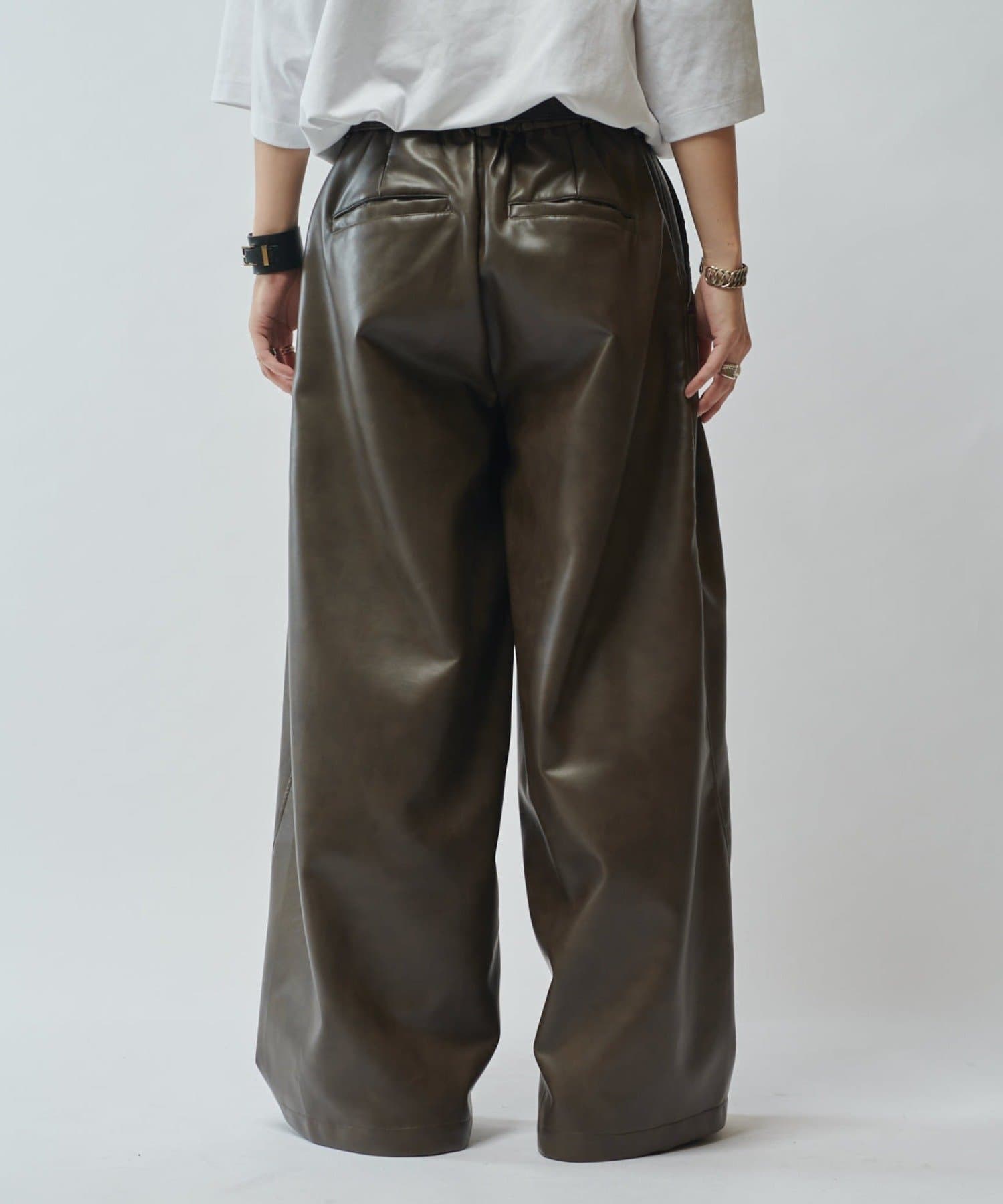 【SURJENT】 シンセティックレザーワイドストレートパンツ