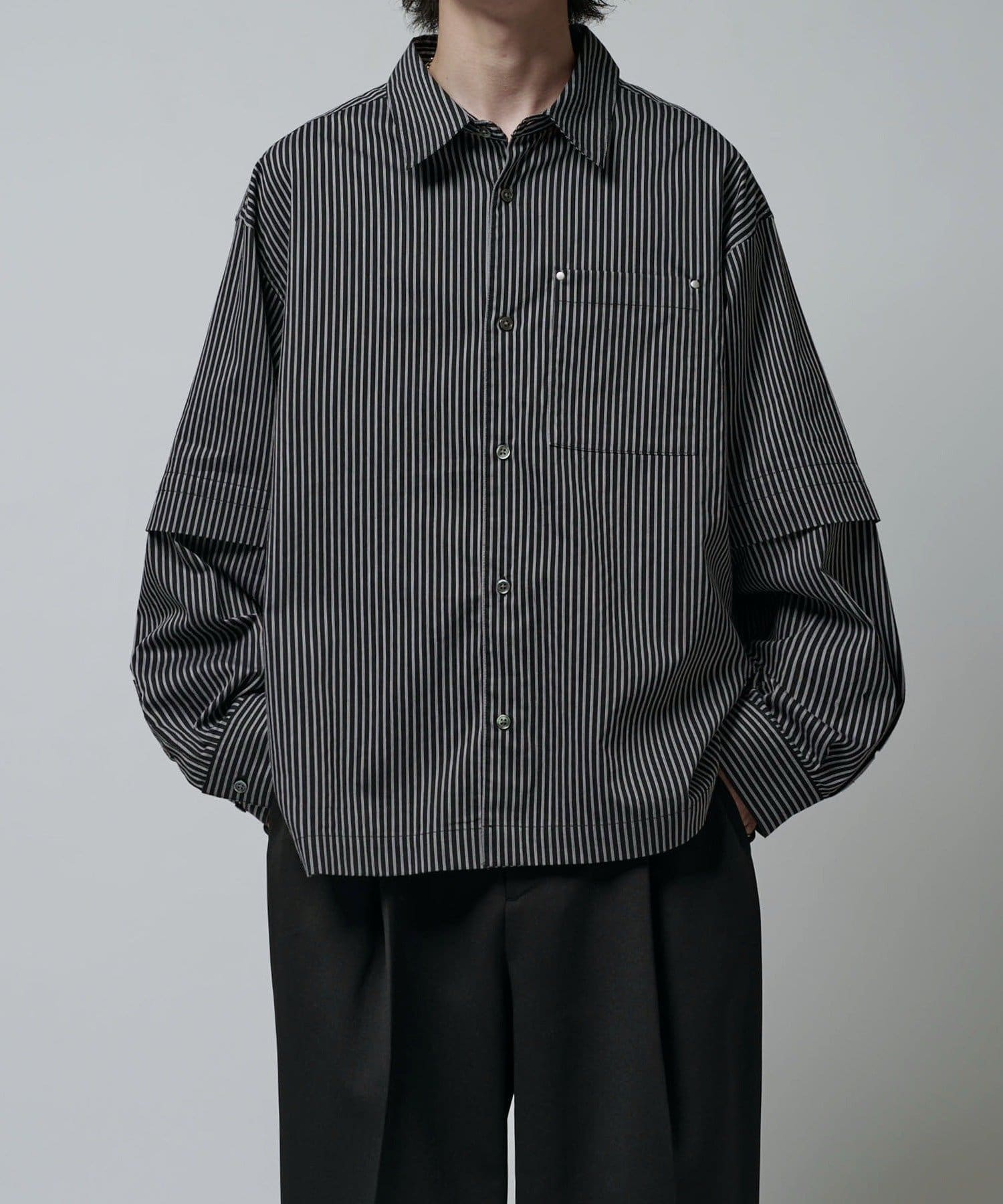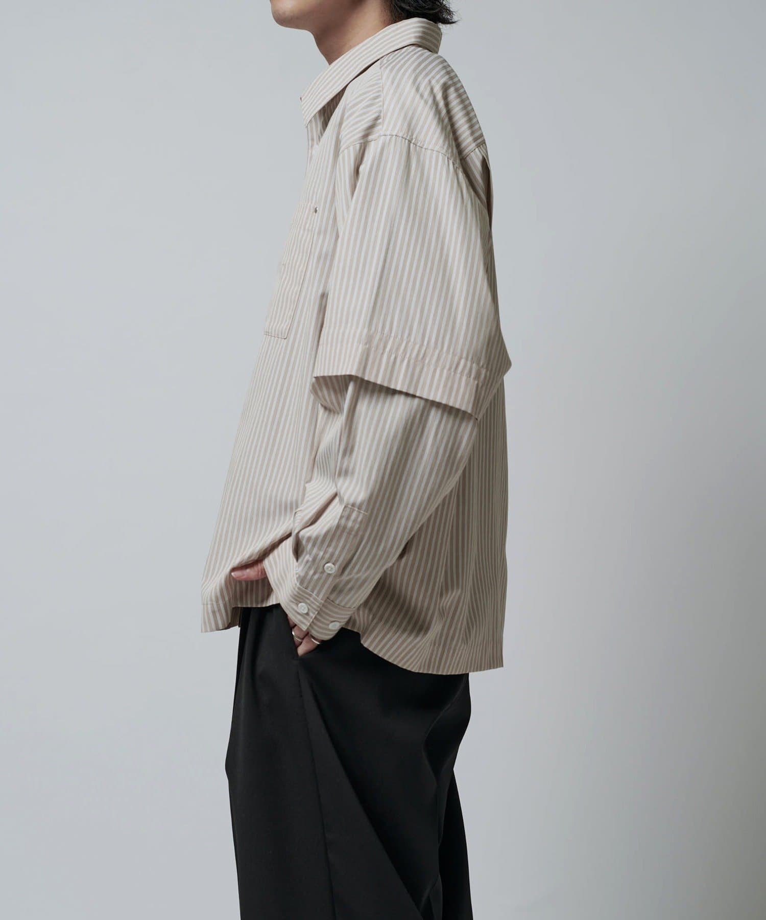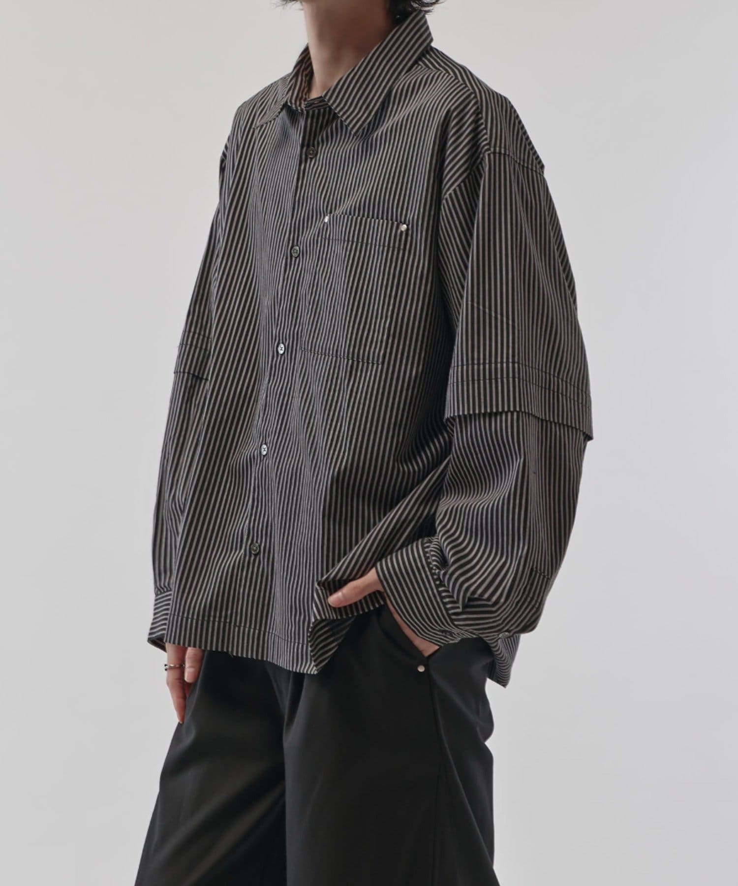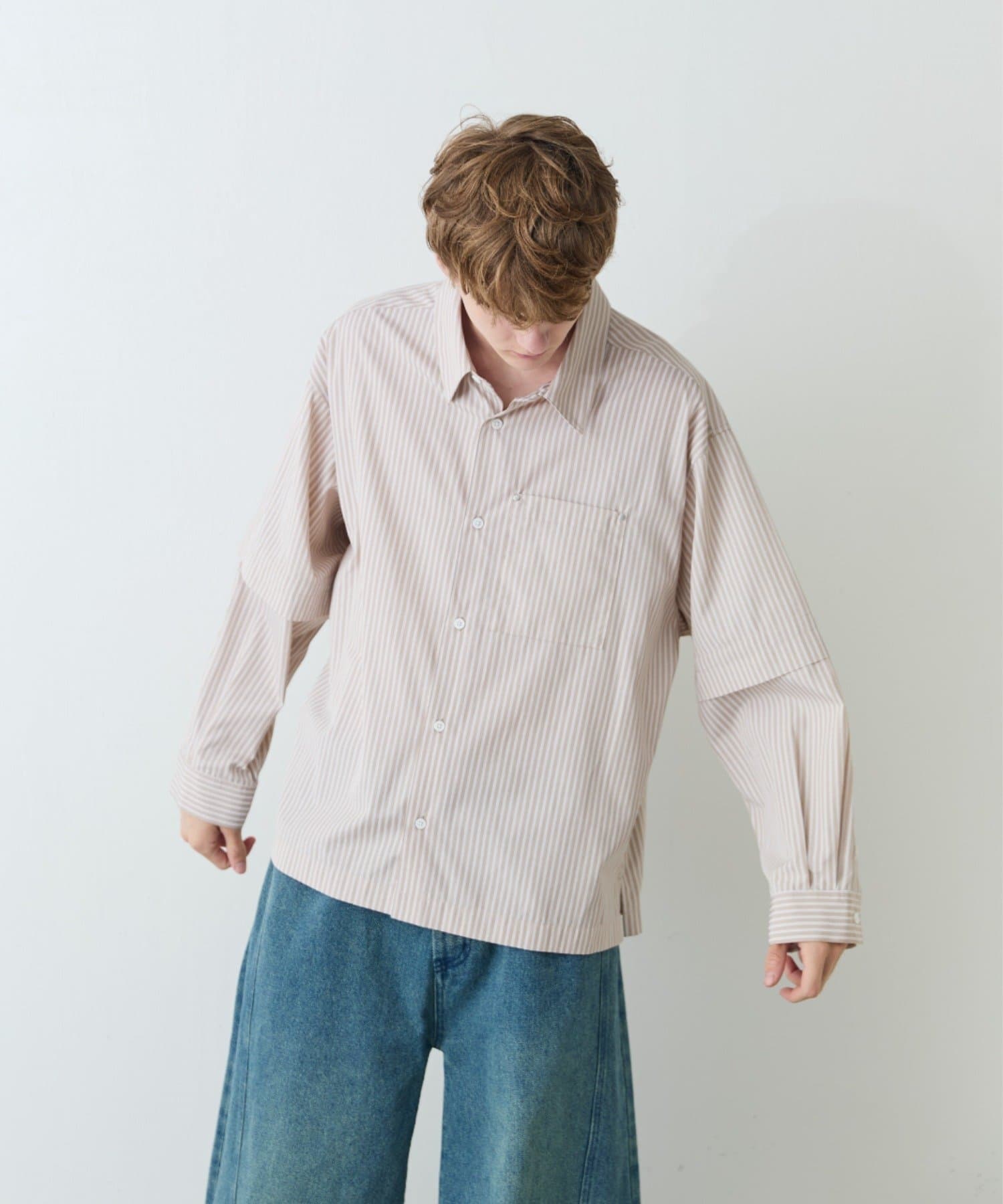 「レイヤードデザインストライプオーバーサイズシャツ」