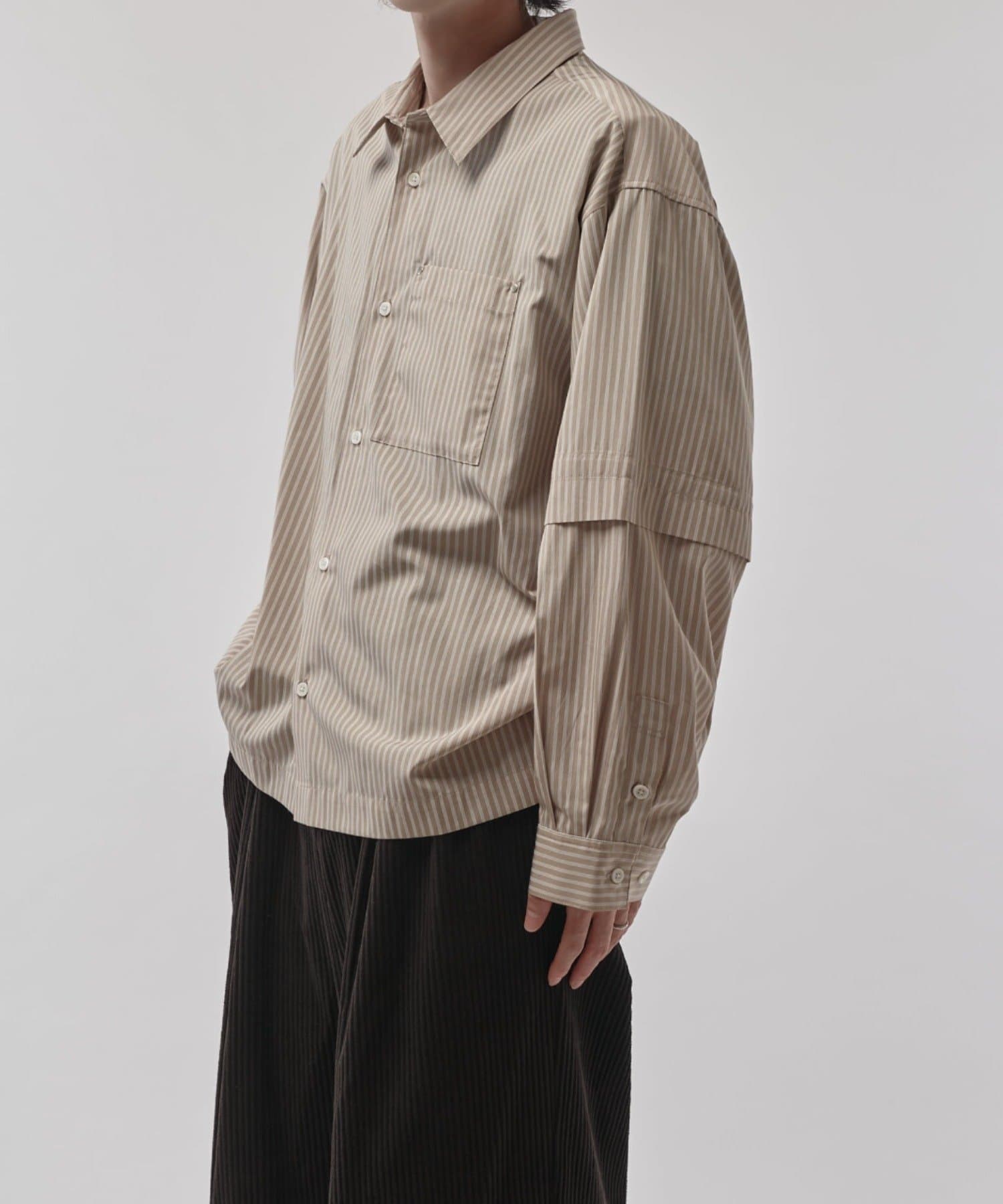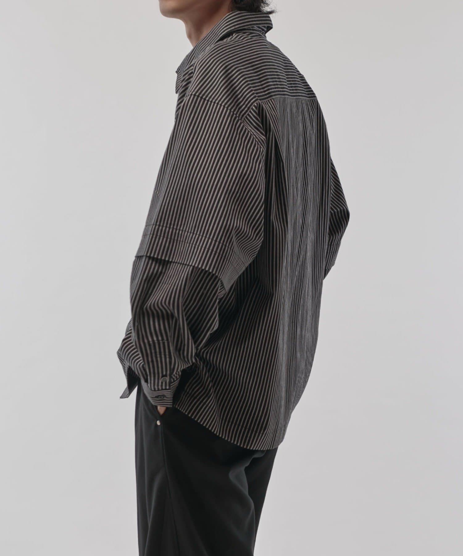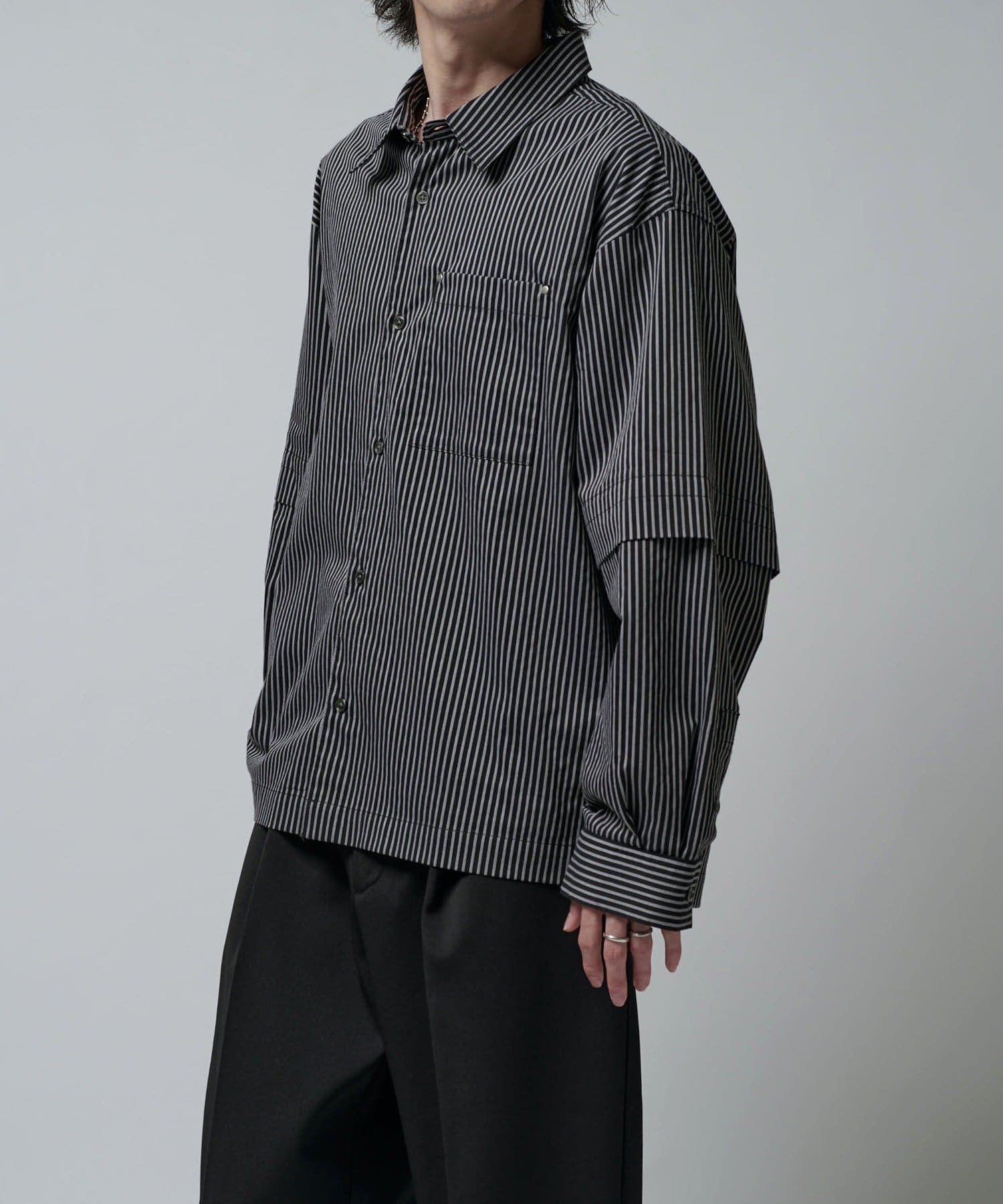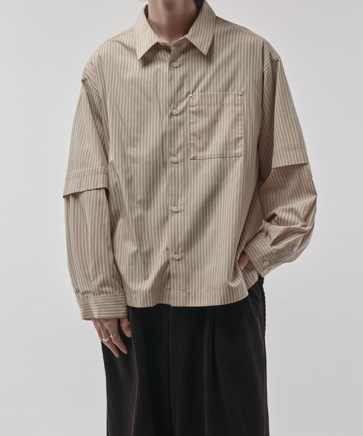 「レイヤードデザインストライプオーバーサイズシャツ」