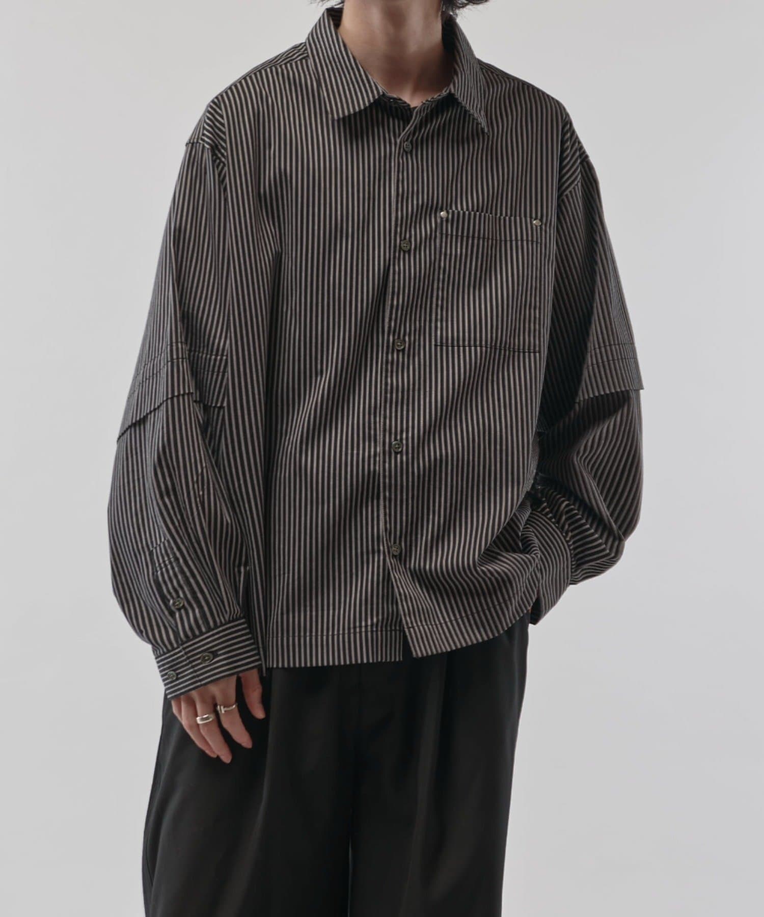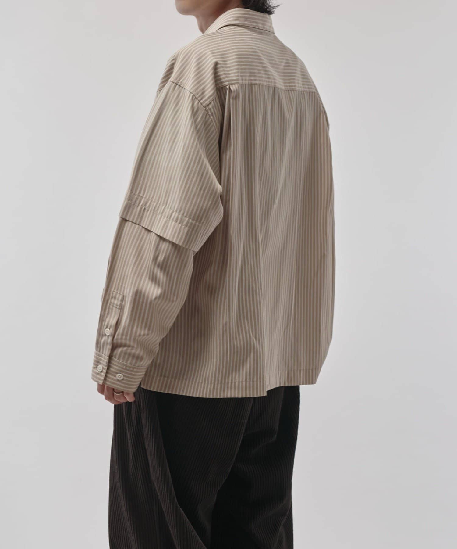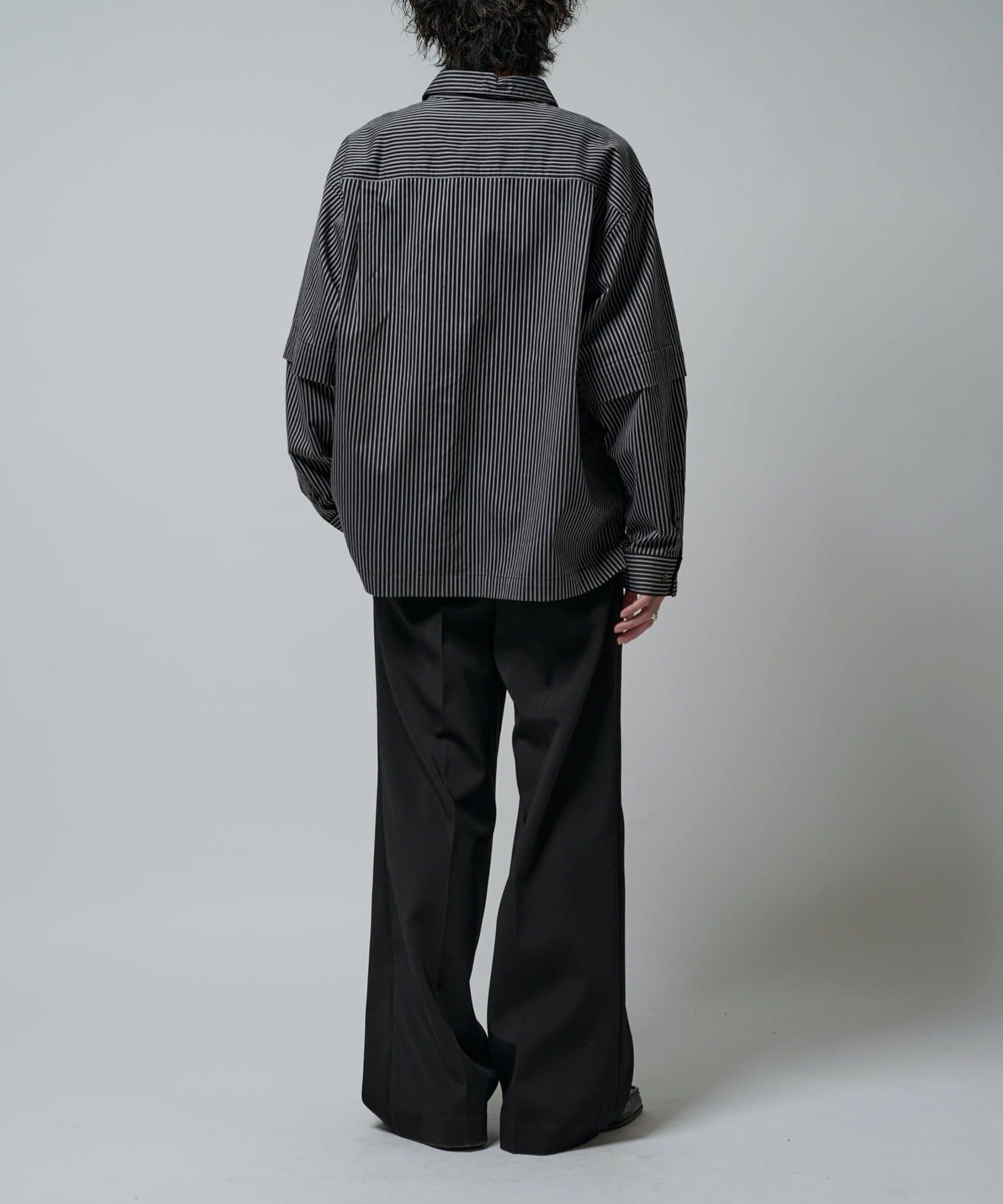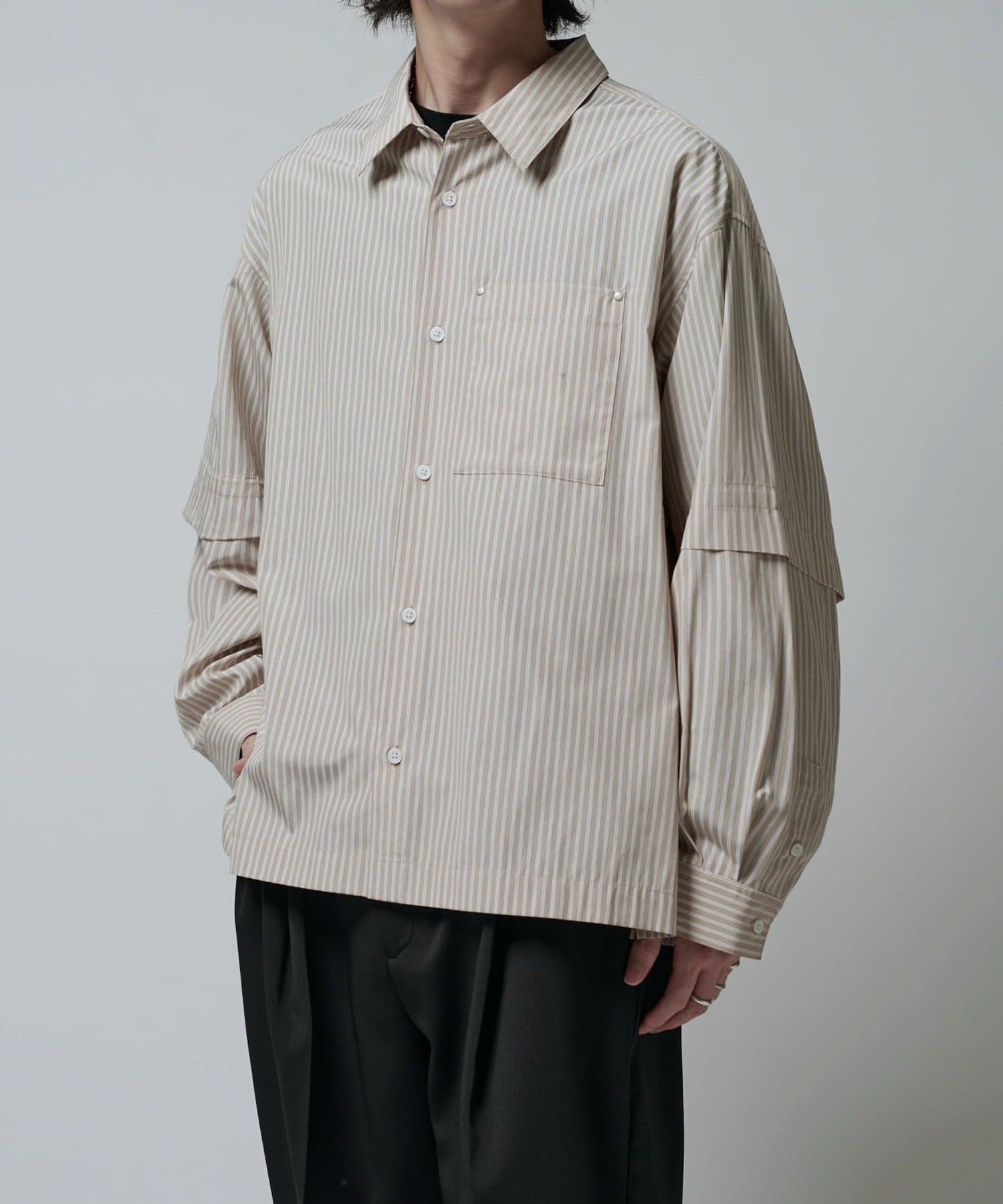 「レイヤードデザインストライプオーバーサイズシャツ」