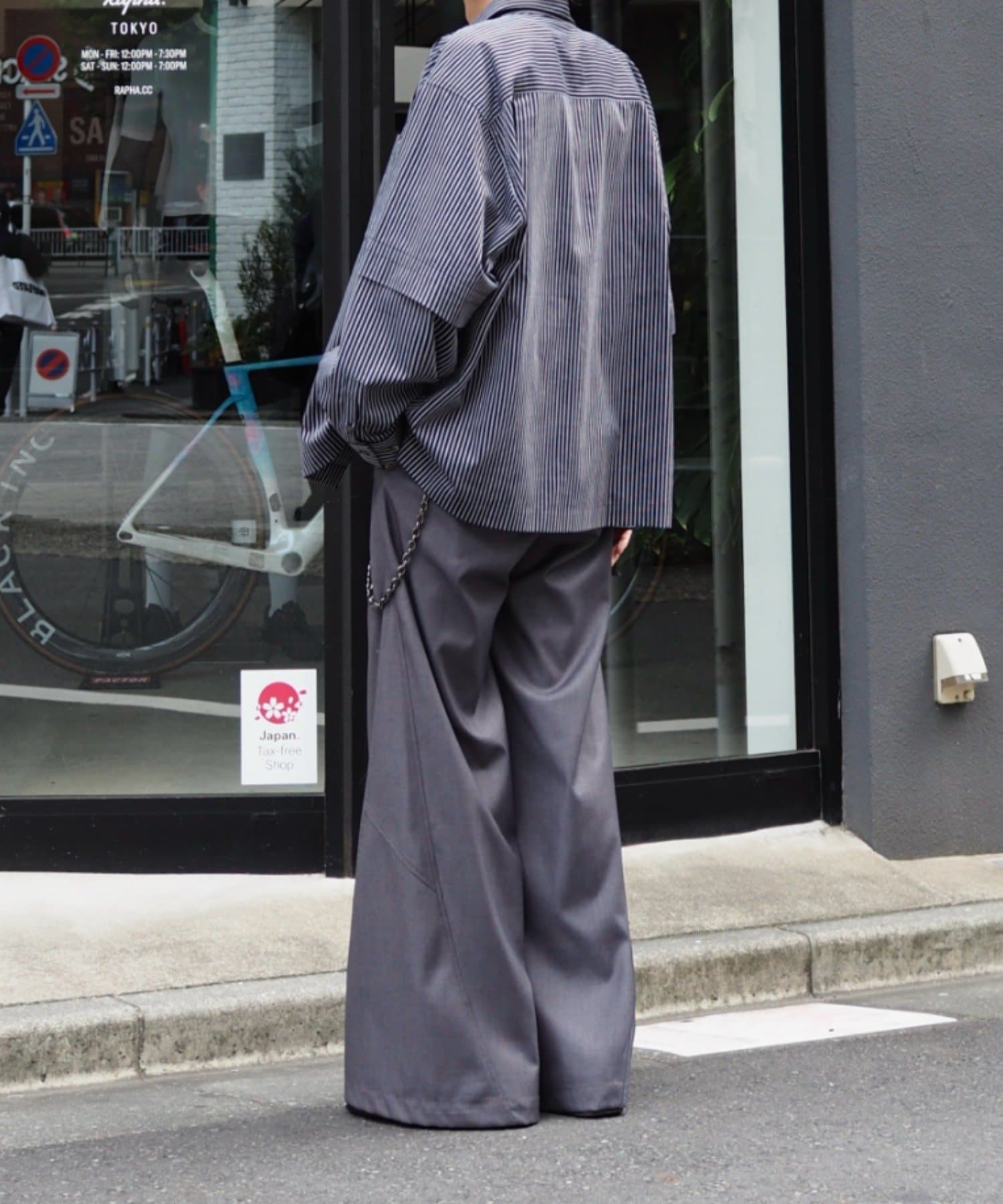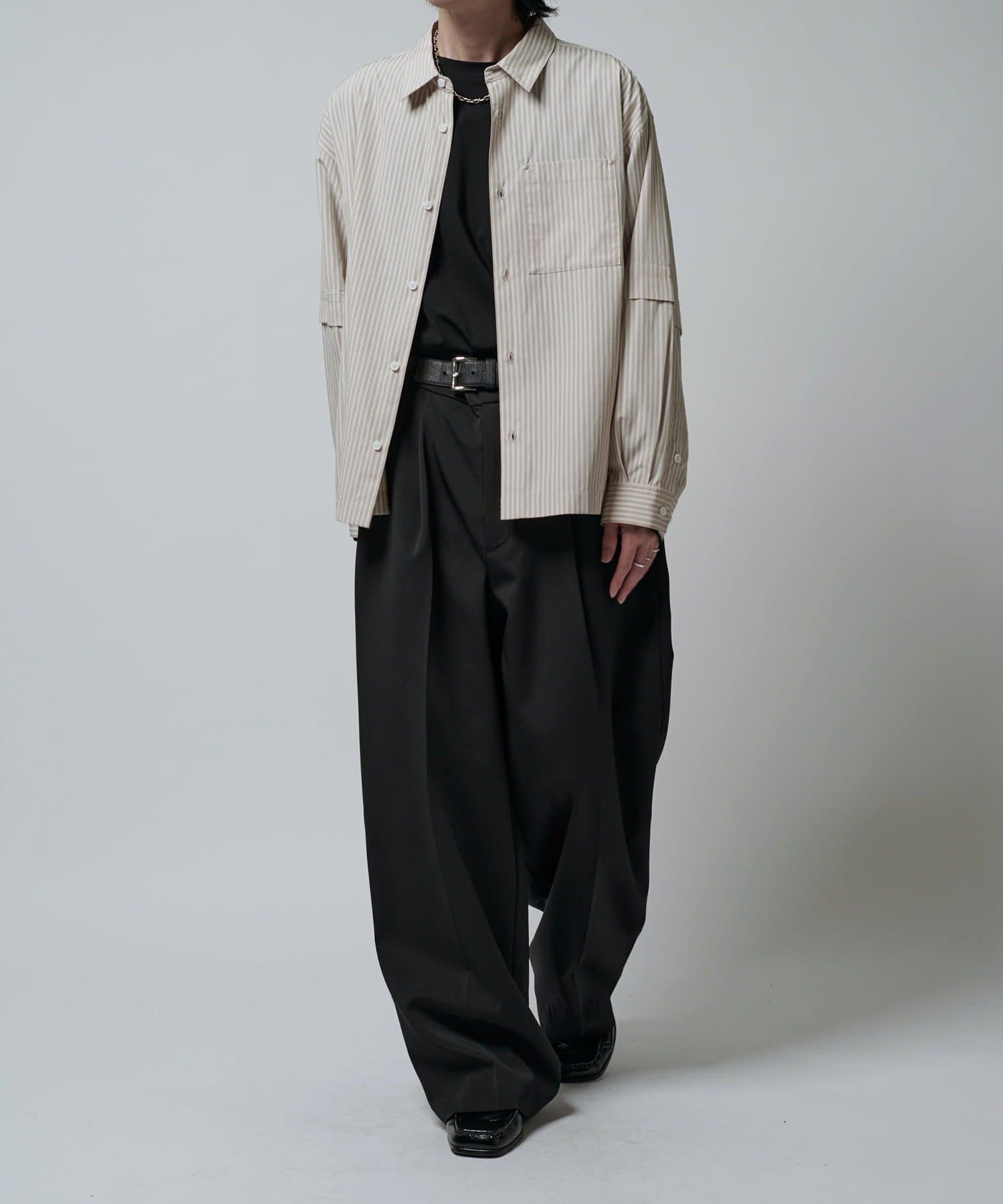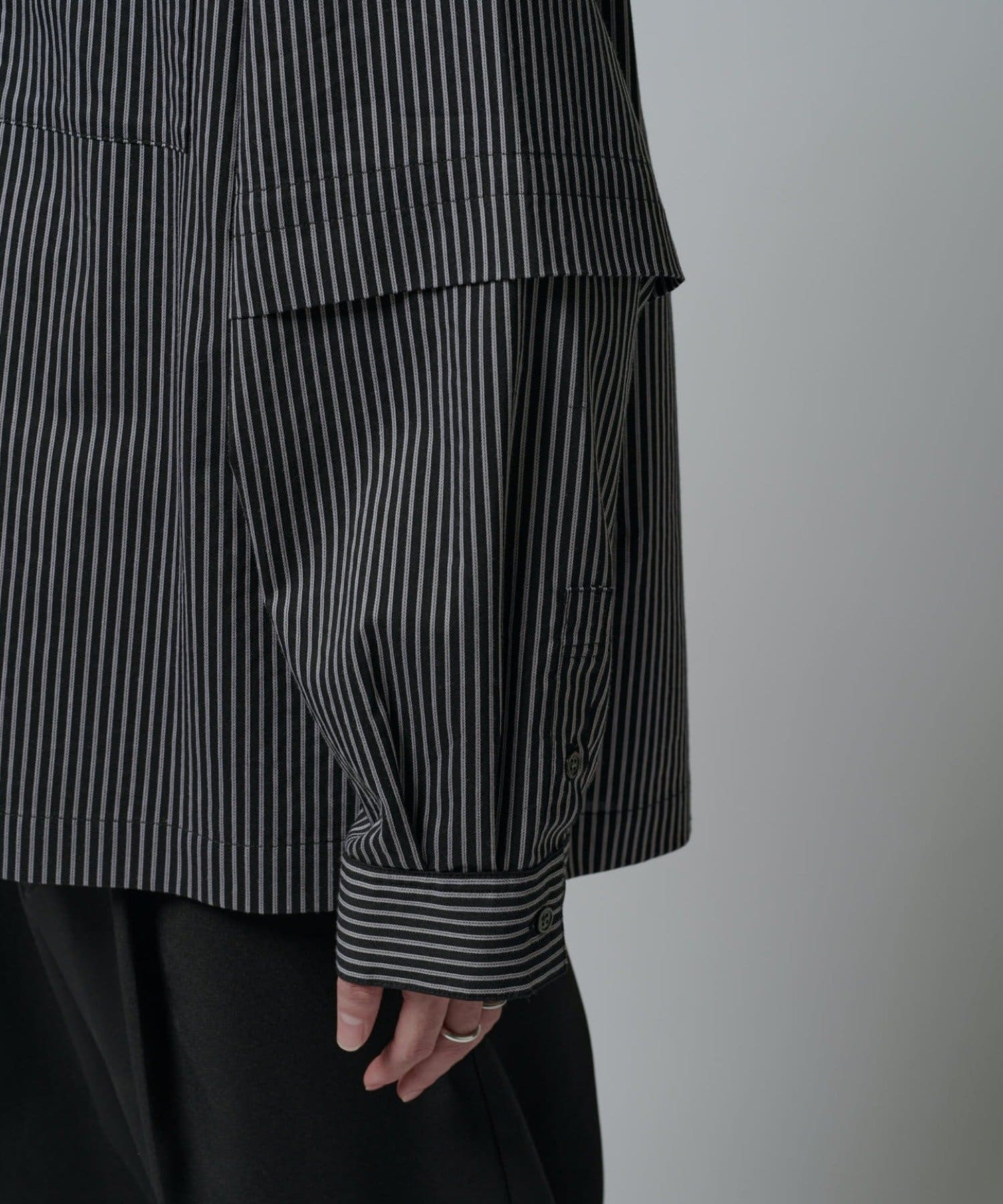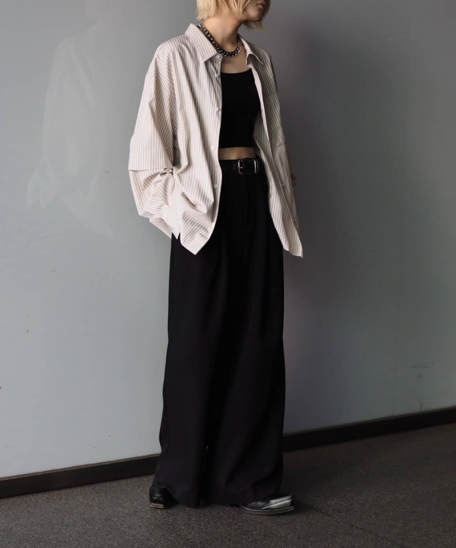 「レイヤードデザインストライプオーバーサイズシャツ」