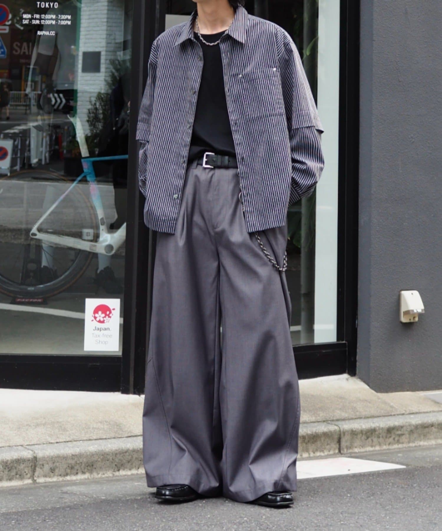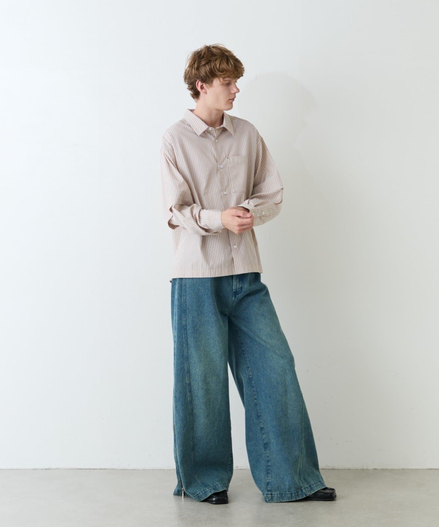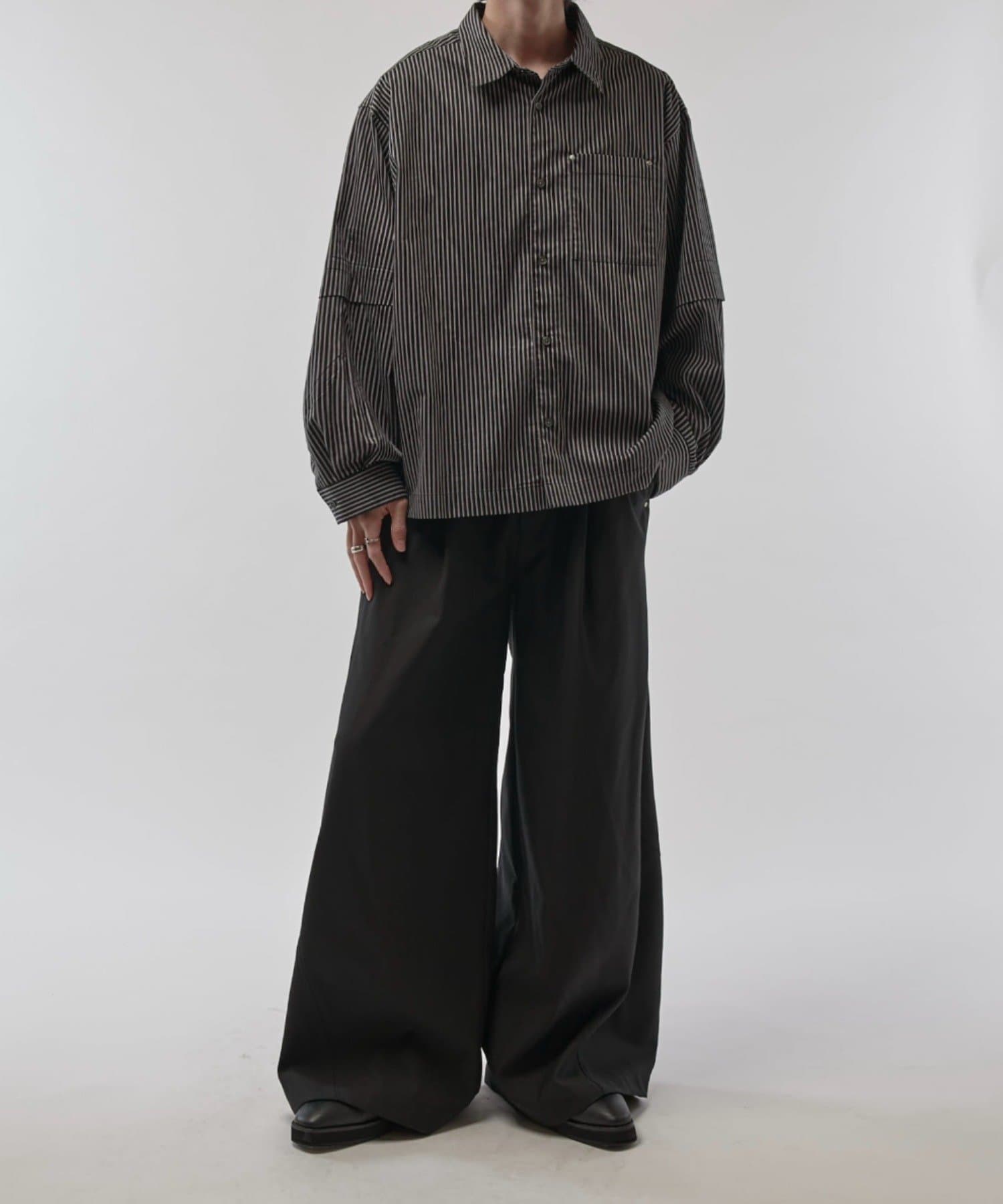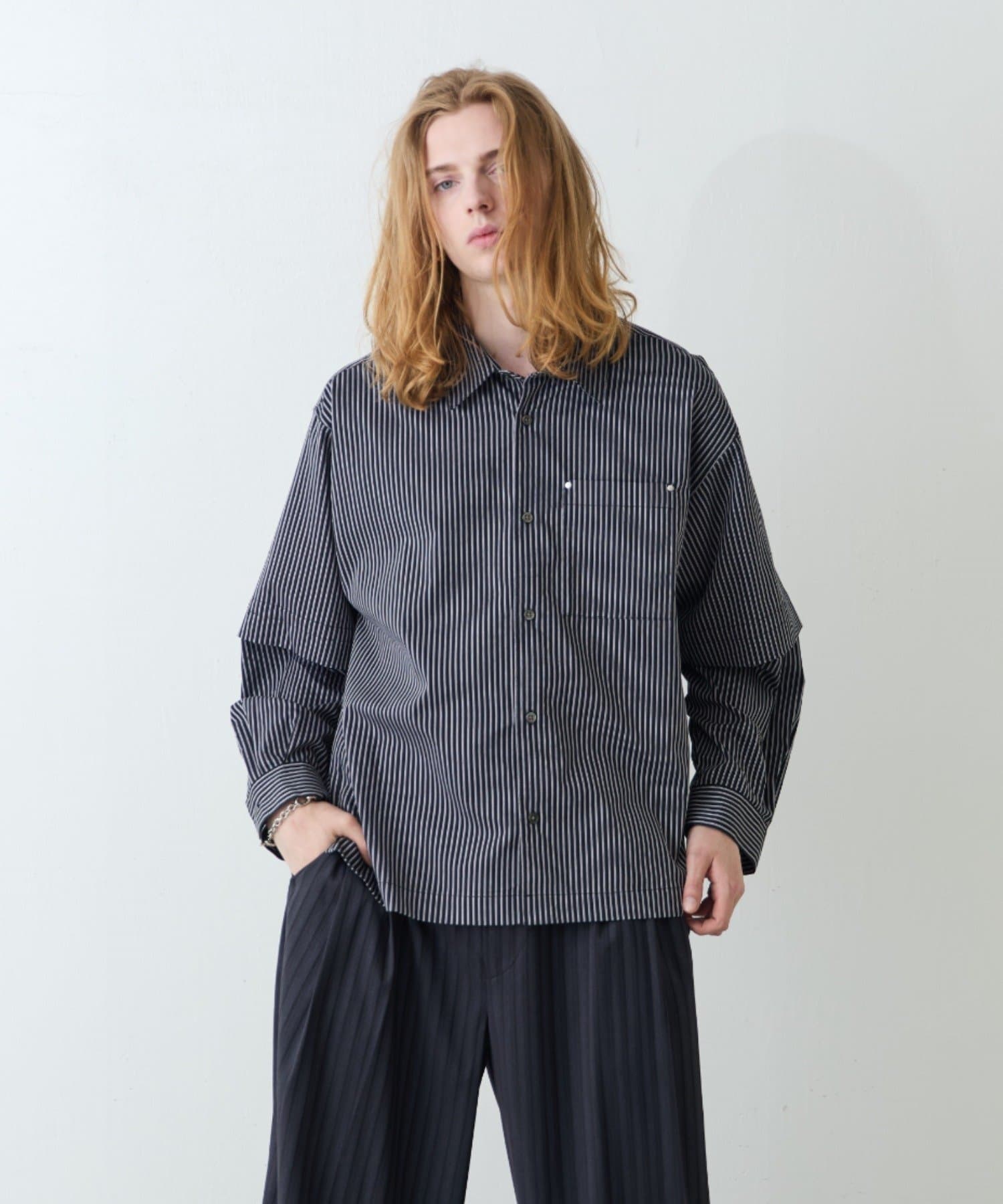 【Neucon/ニューコン】レイヤードデザインストライプオーバーサイズシャツ