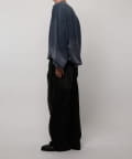 オーバーサイズな身幅、袖に対して、着丈を短めに設定することで、ラフ過ぎない印象に。