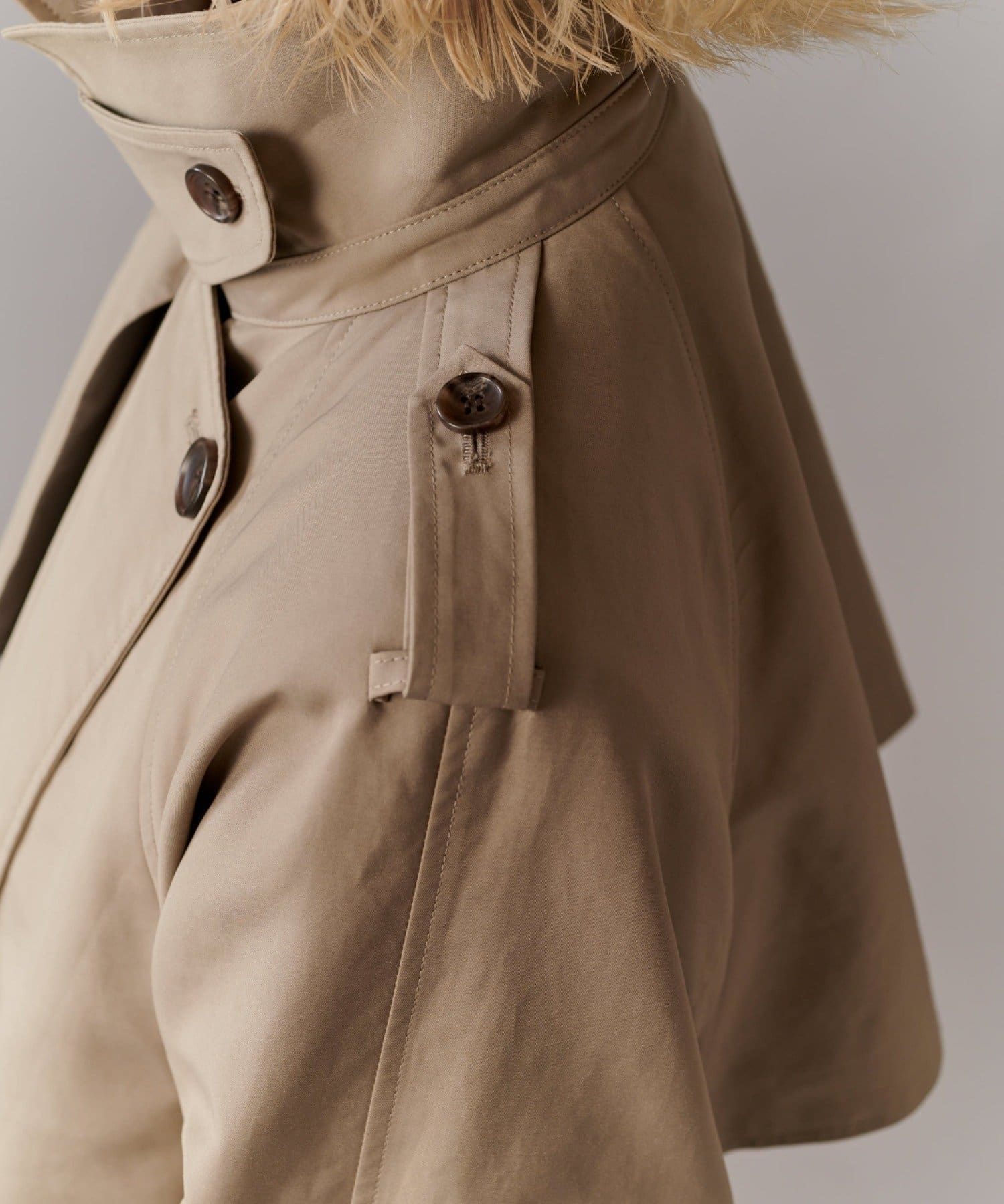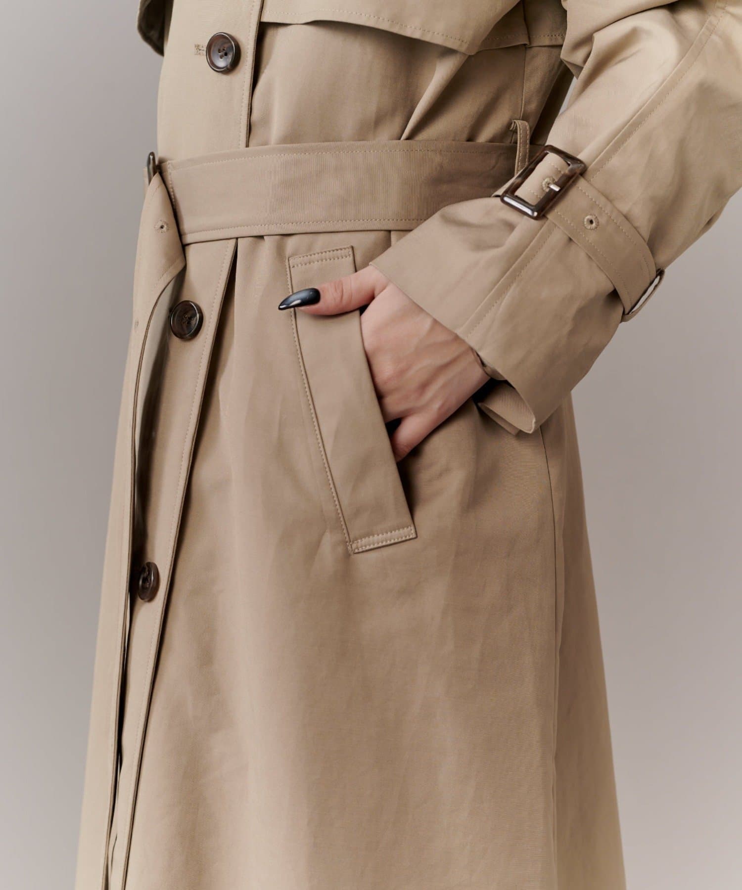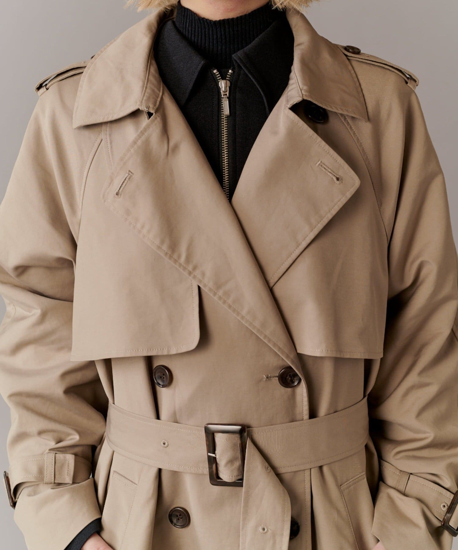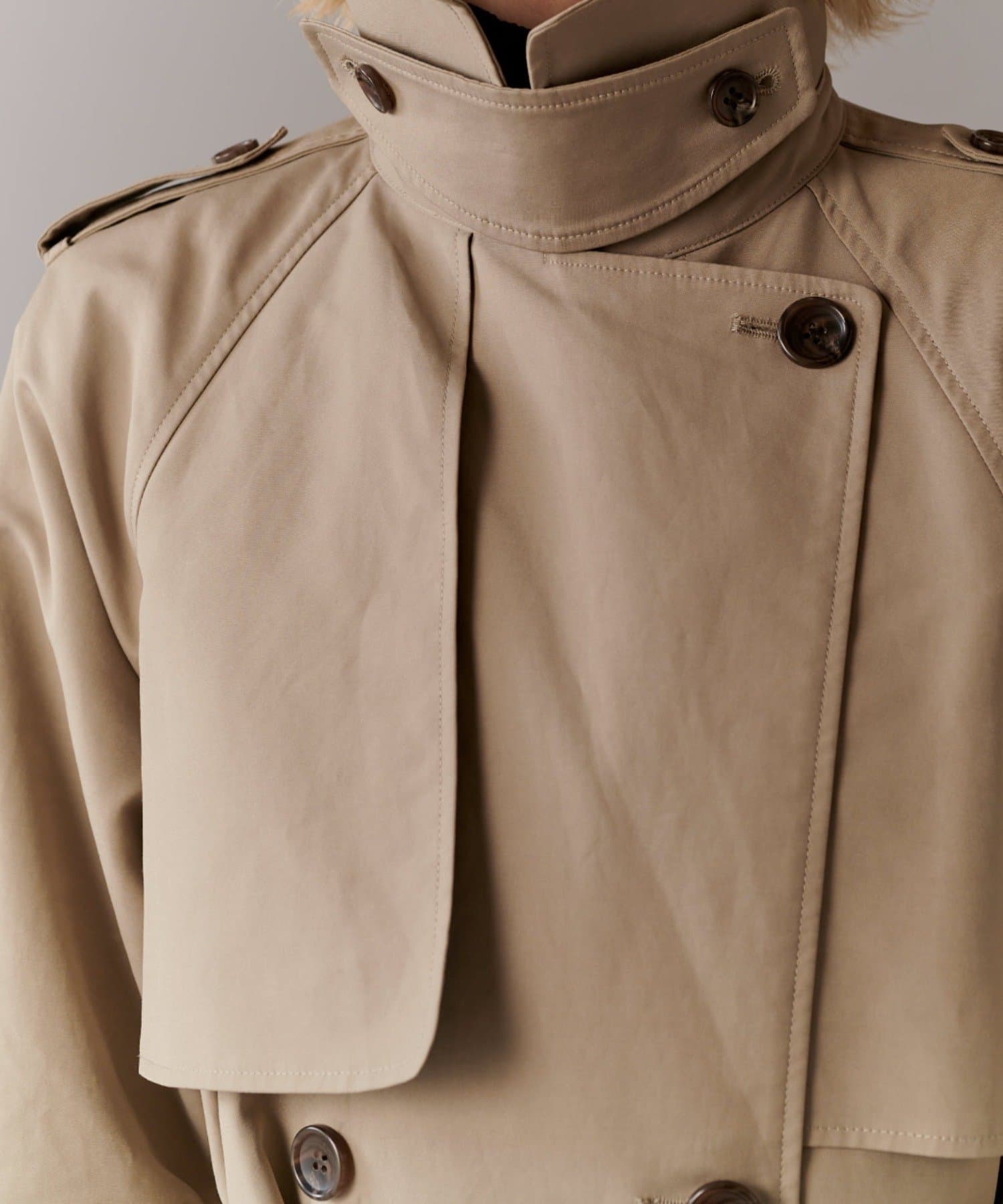 ・ガンパッチやエポレットを付けることで、より本格的なトレンチコートに
