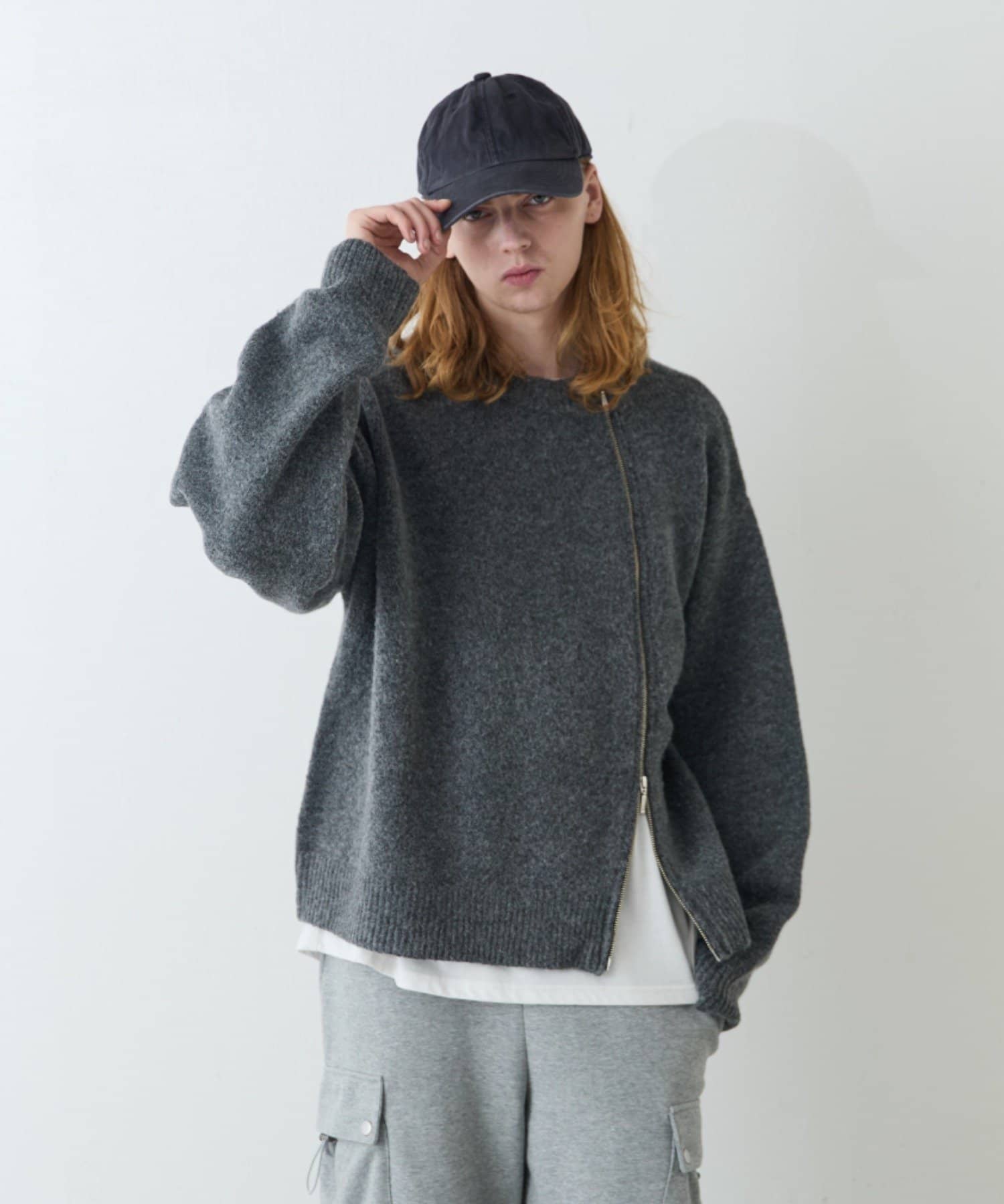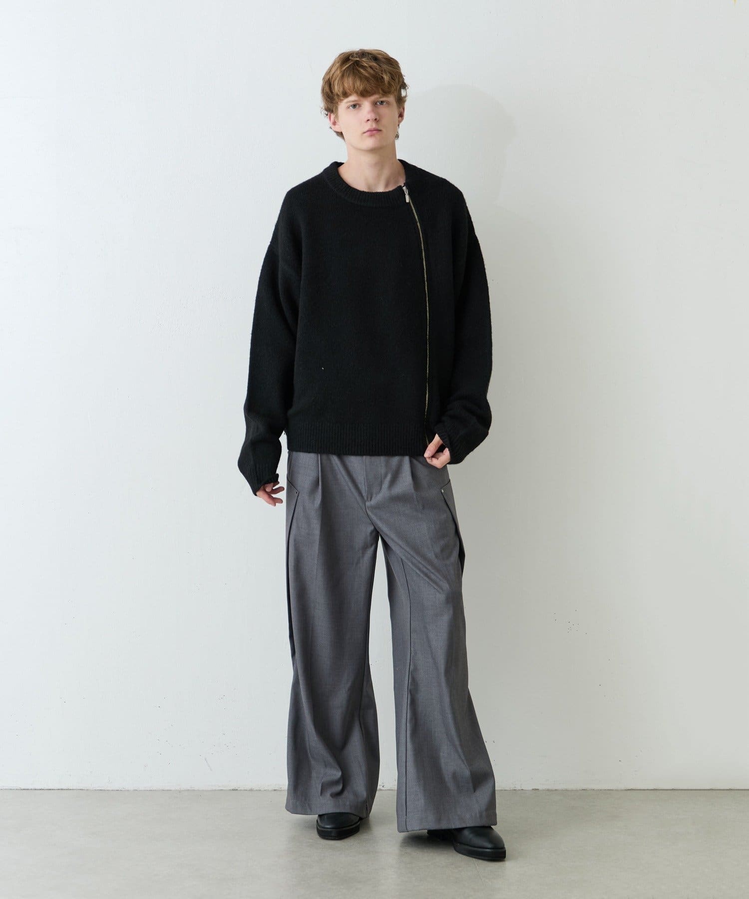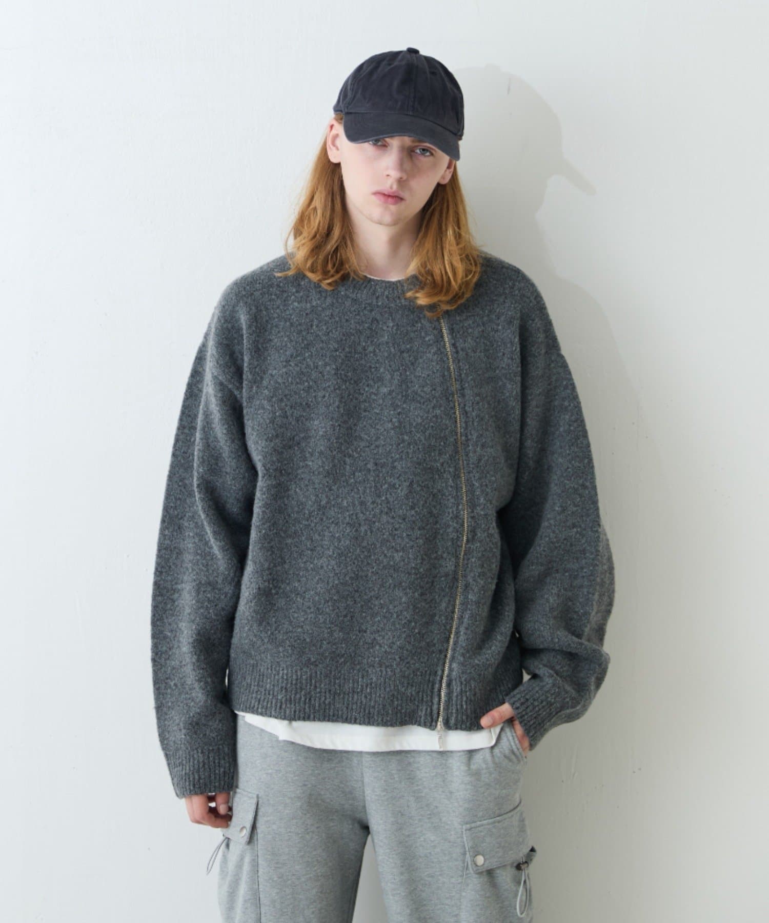 TOP > Lui's > メンズ > トップス > ニット/セーター > 【Neucon/ニューコン】ツイストZIPデザインオーバサイズクルーネックニット