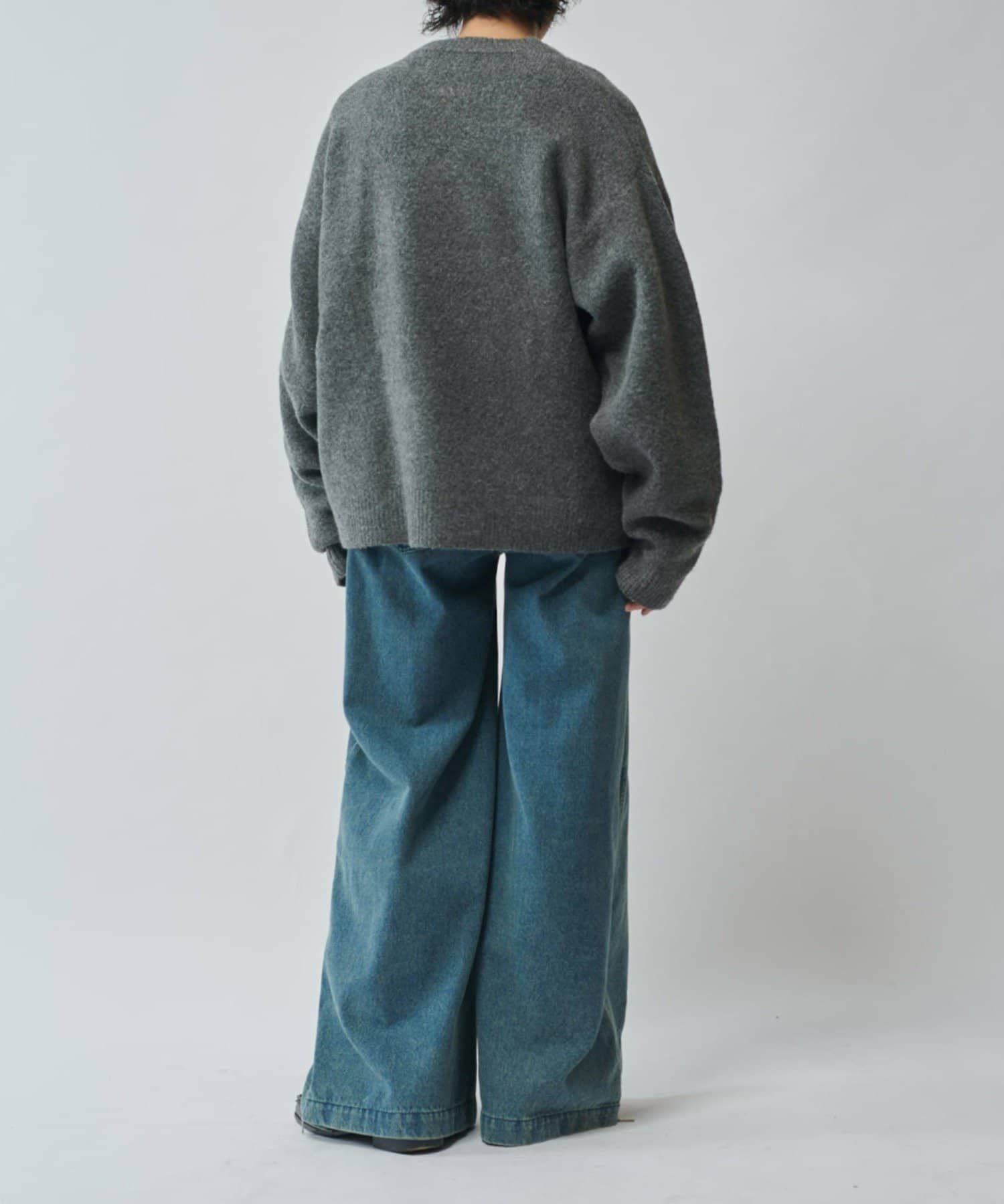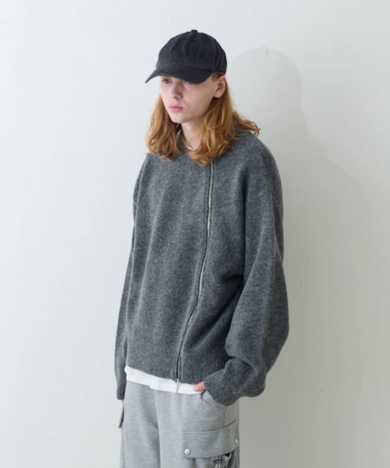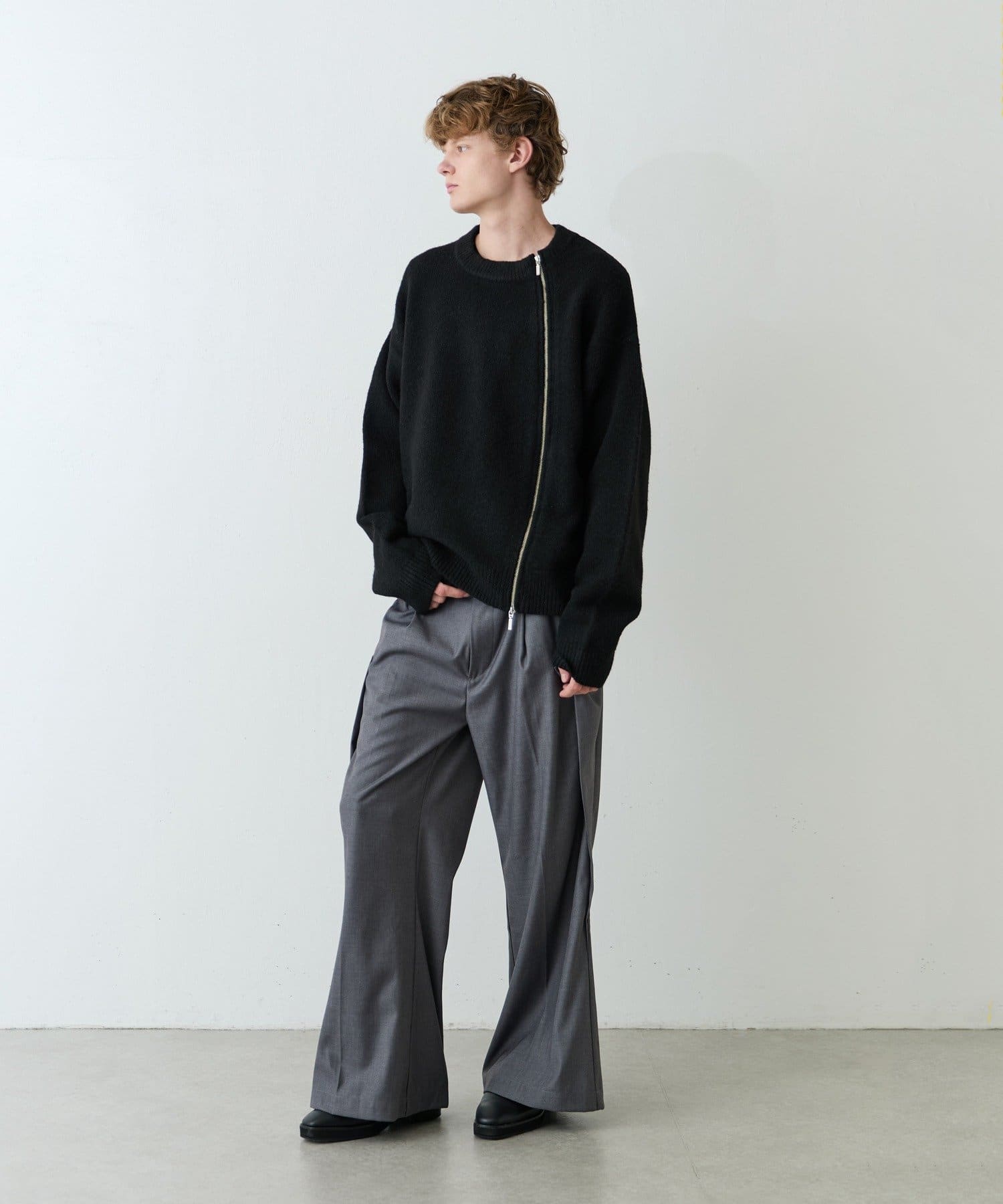 TOP > Lui's > メンズ > トップス > ニット/セーター > 【Neucon/ニューコン】ツイストZIPデザインオーバサイズクルーネックニット