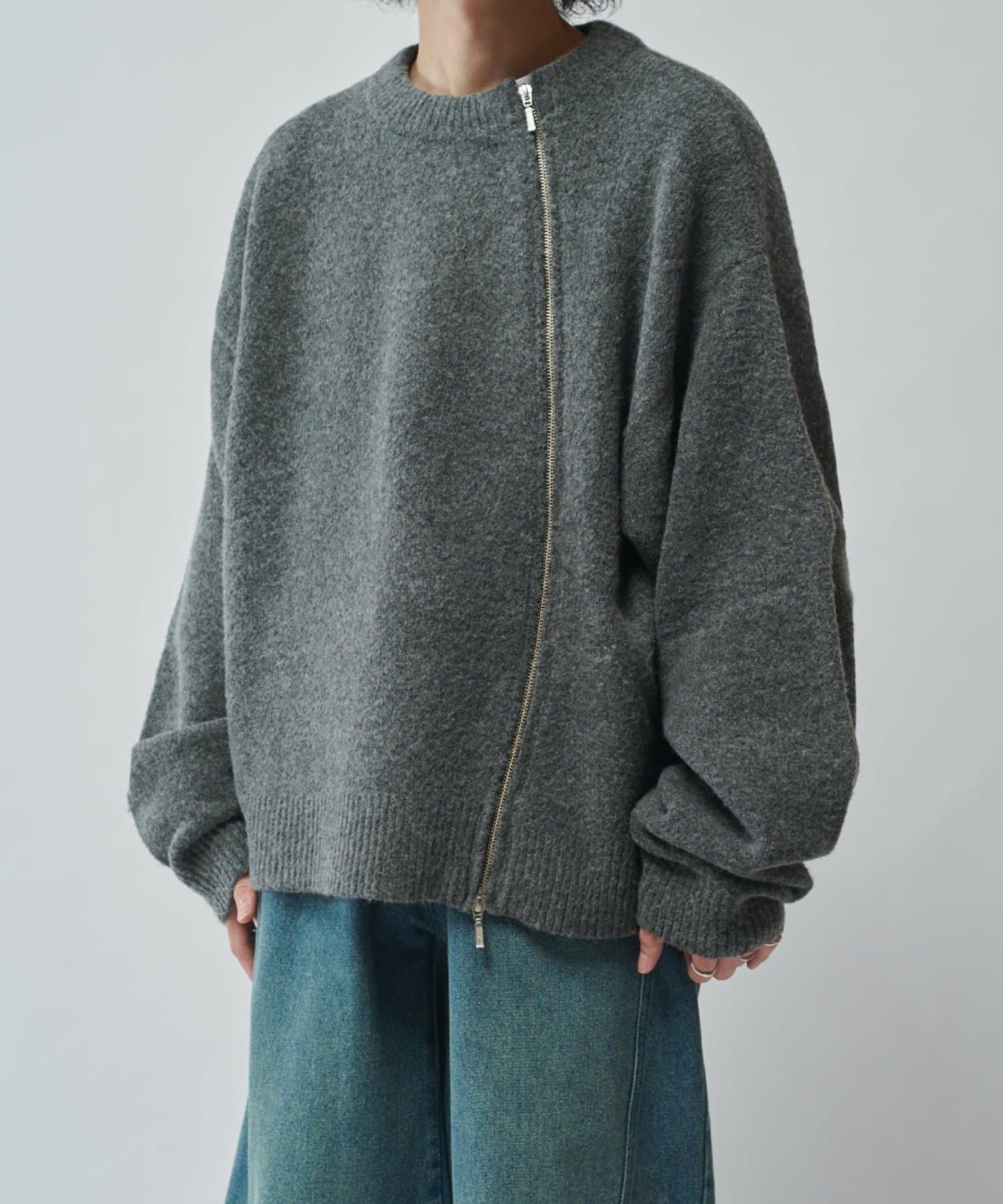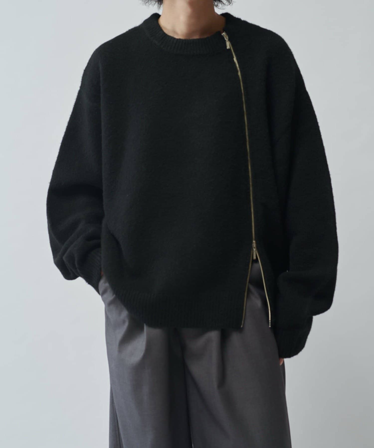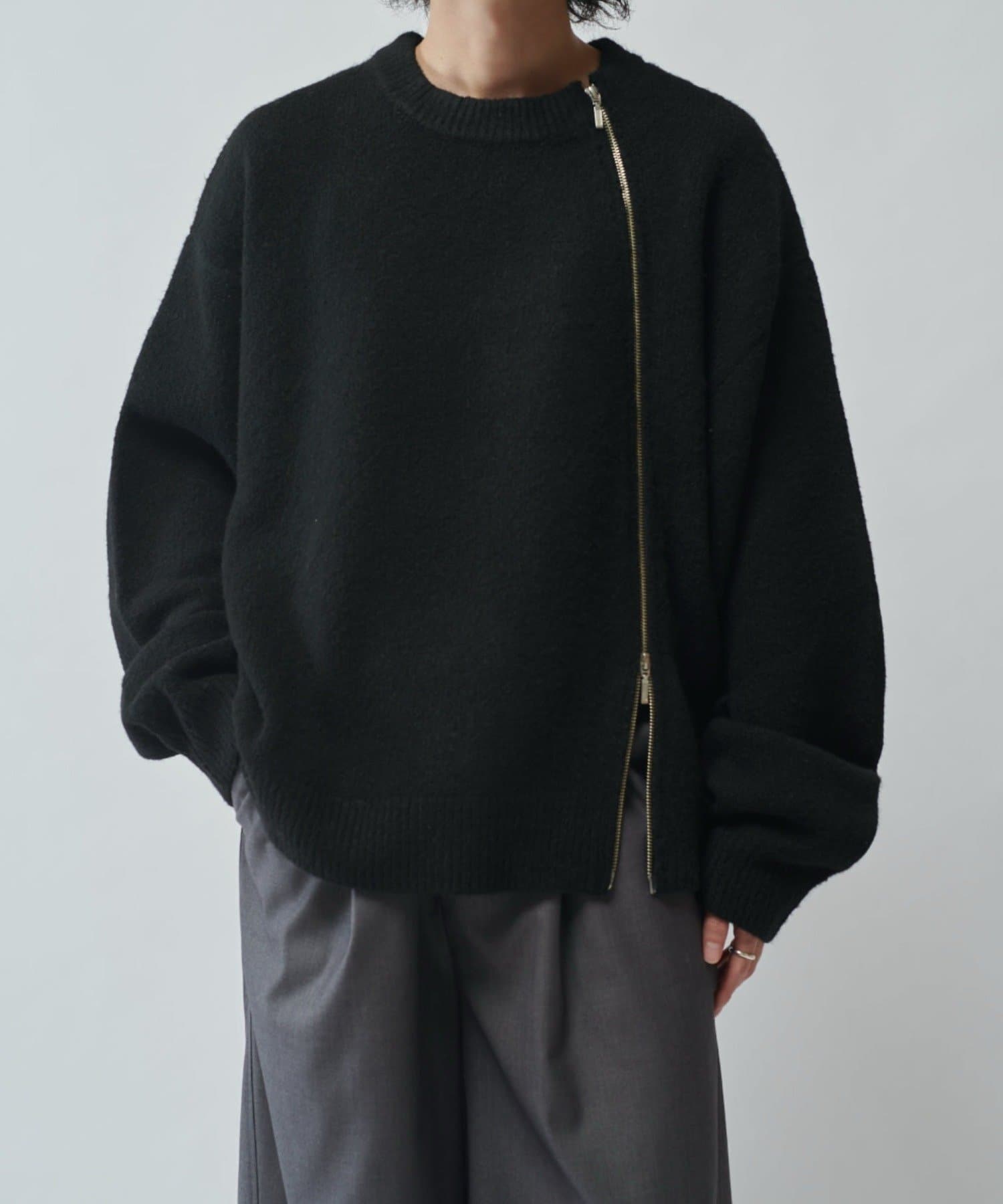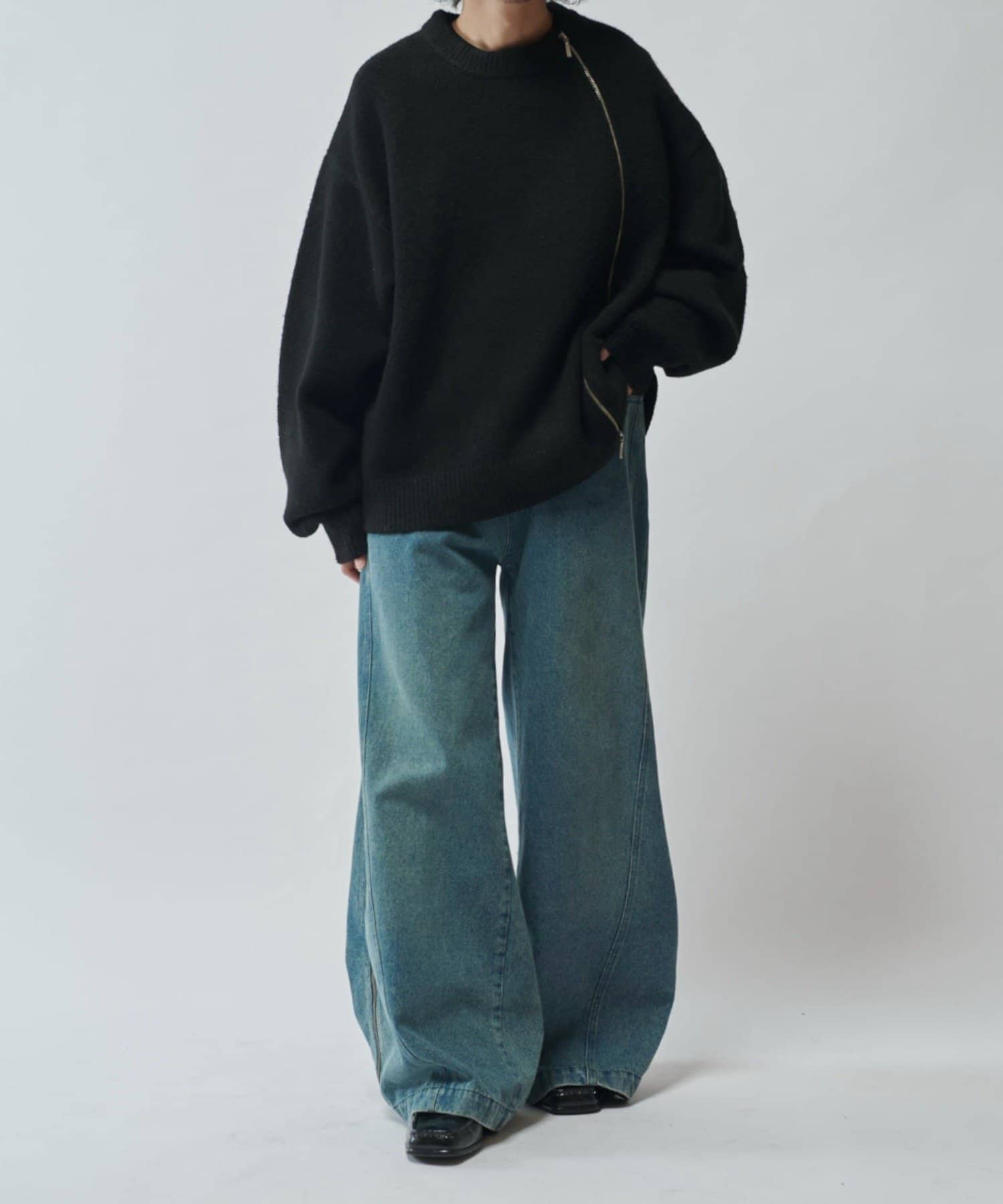 【Neucon/ニューコン】ツイストZIPデザインオーバサイズクルーネックニット