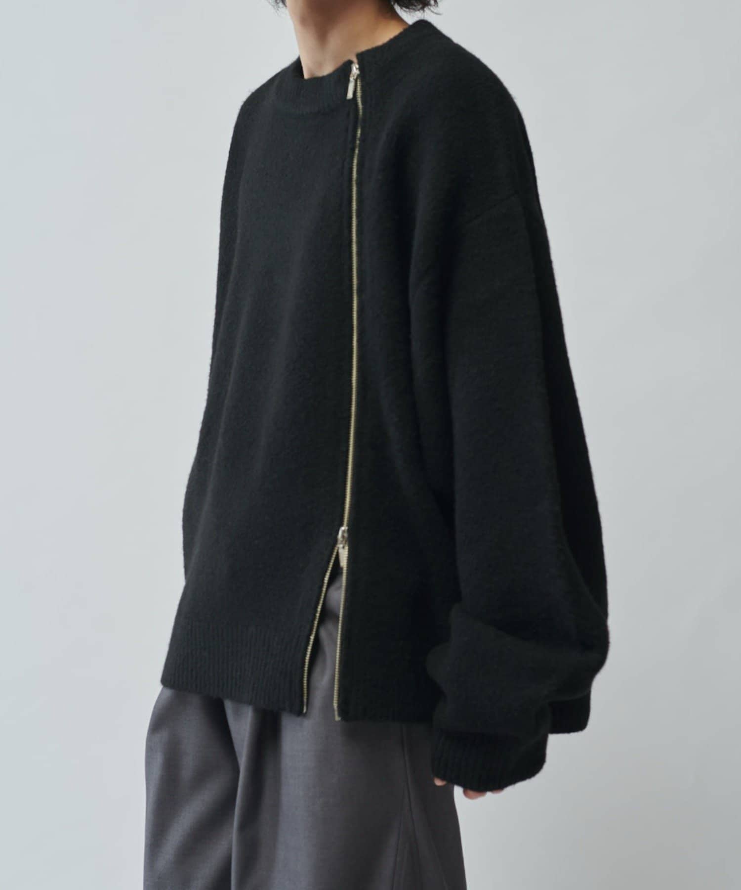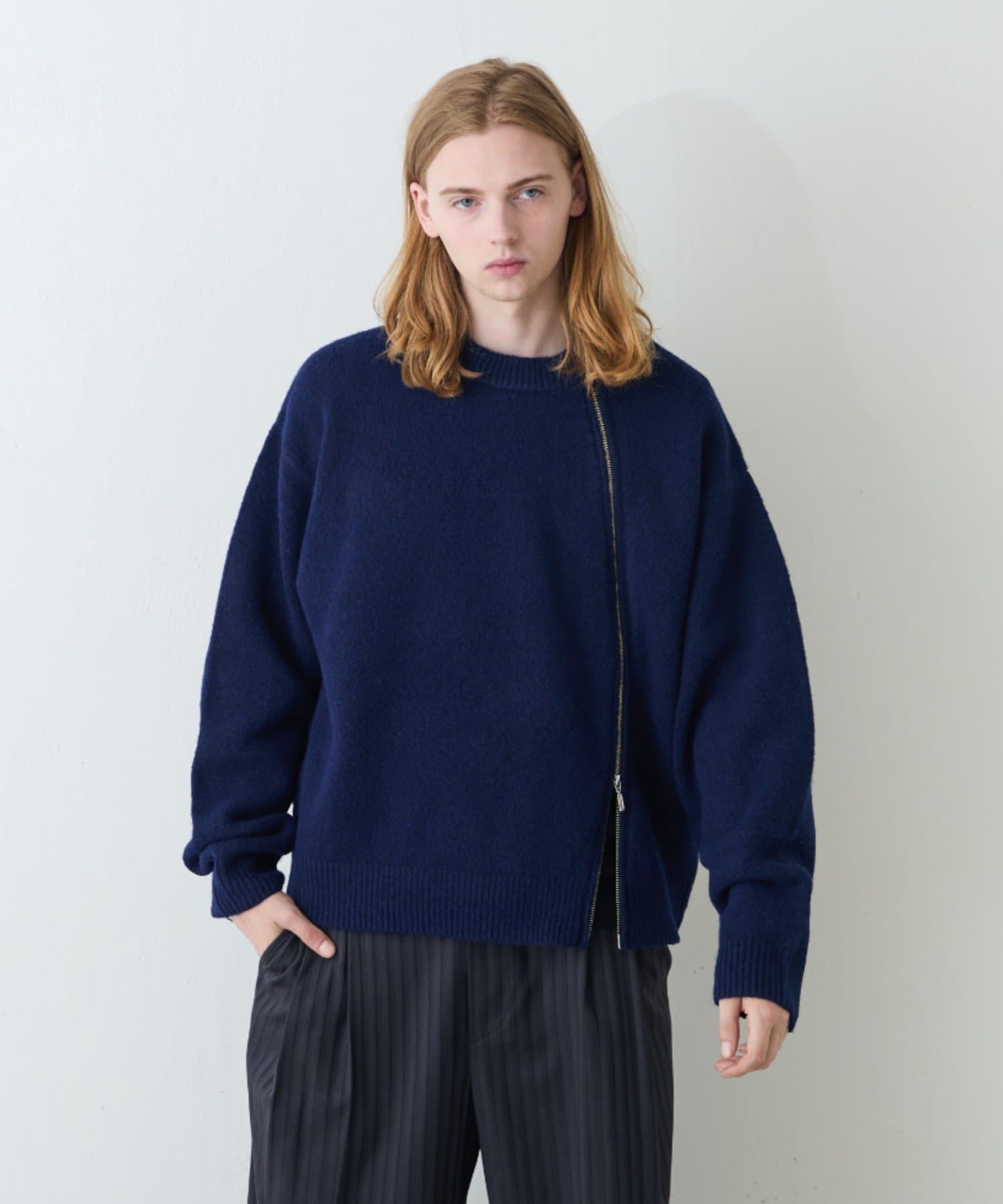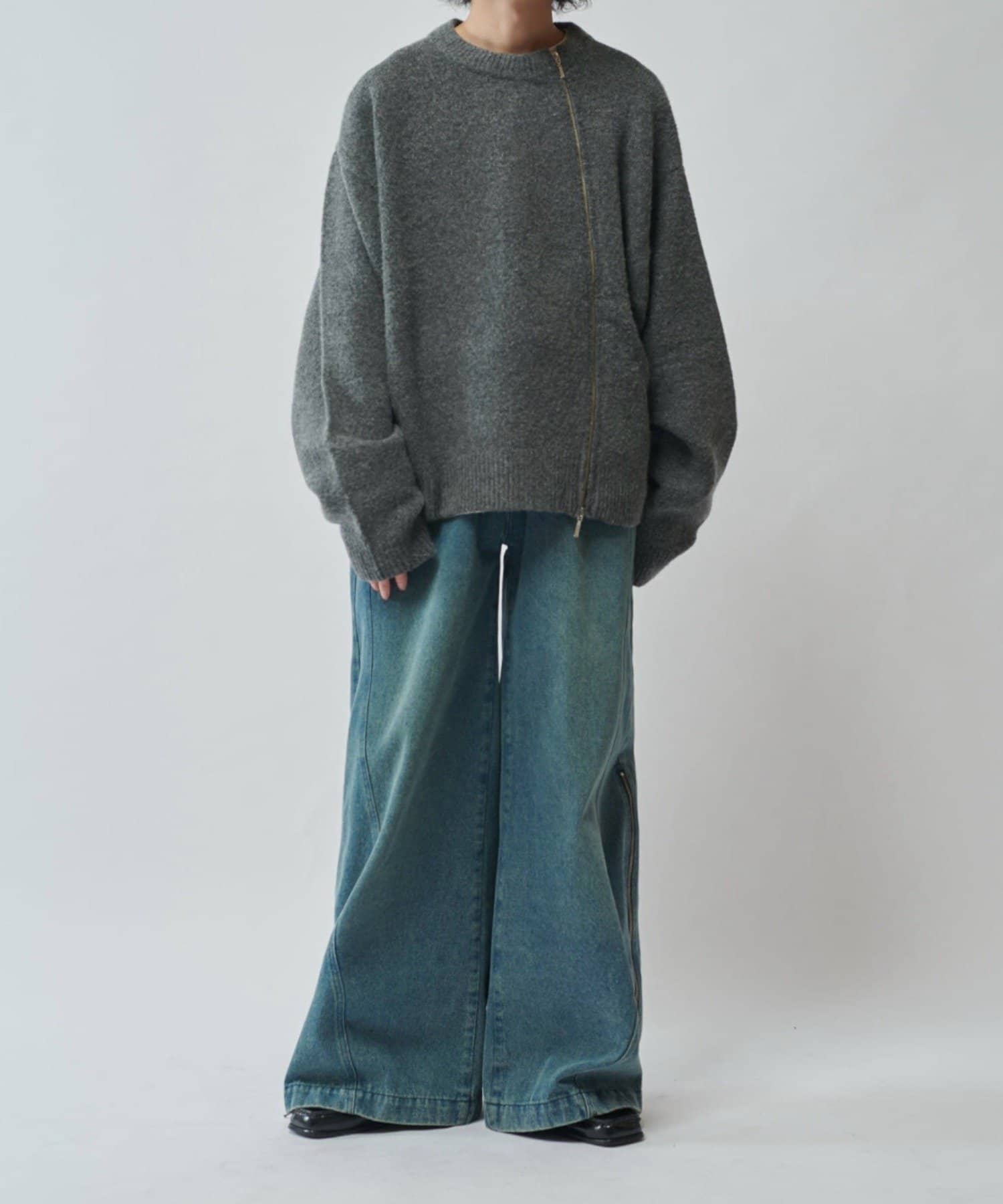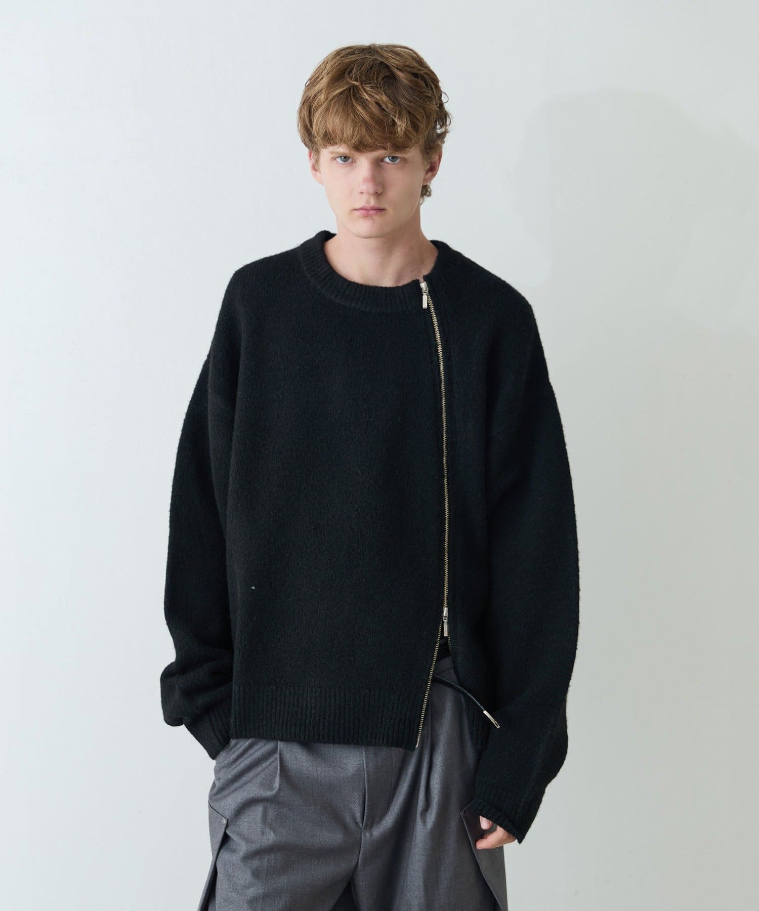 【Neucon/ニューコン】ツイストZIPデザインオーバサイズクルーネックニット