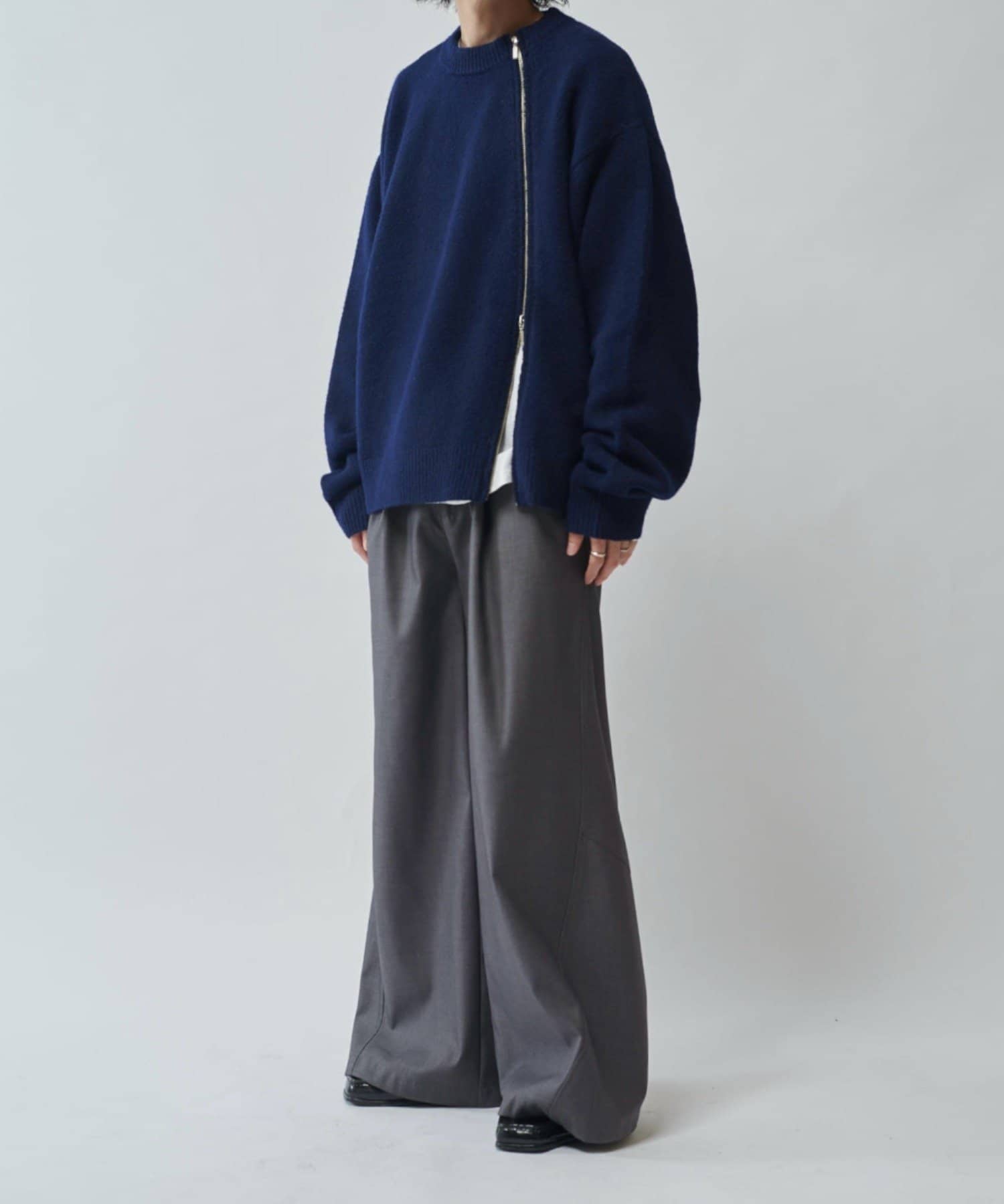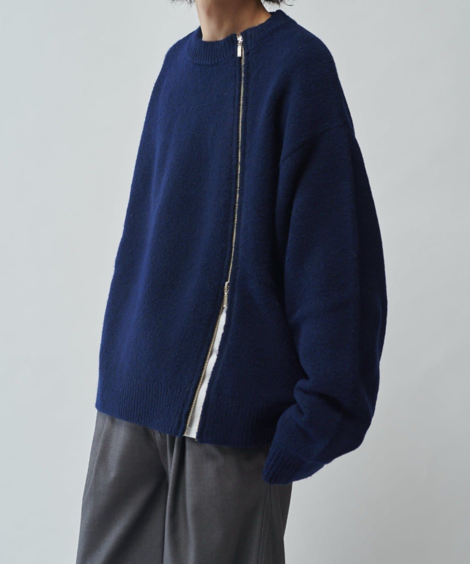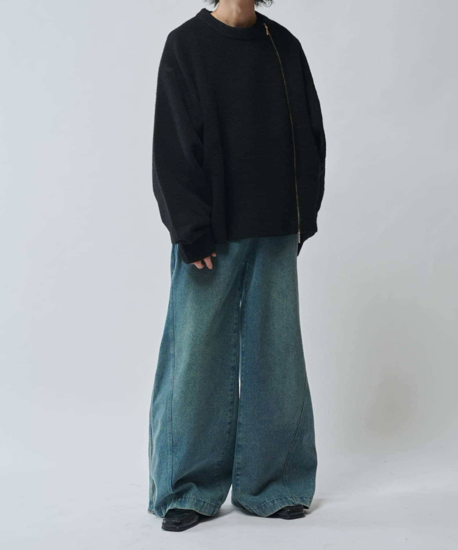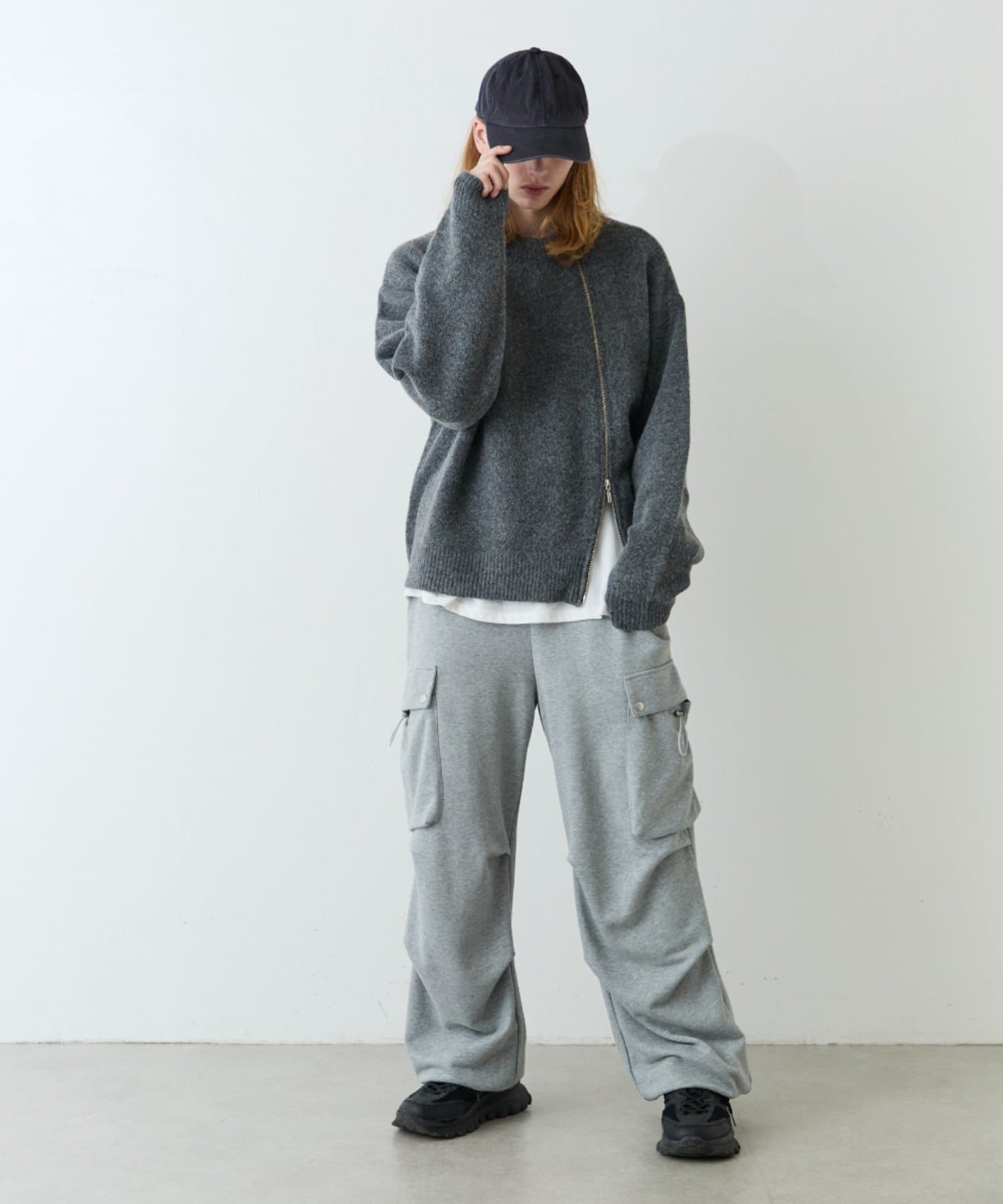 【Neucon/ニューコン】ツイストZIPデザインオーバサイズクルーネックニット