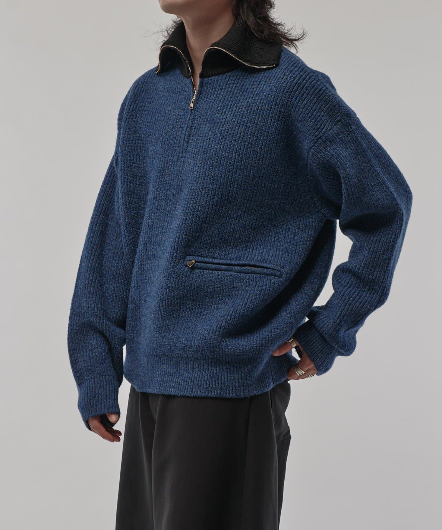 上質な風合いと保温性に優れたウールを使用したハーフジッププルオーバーニット。