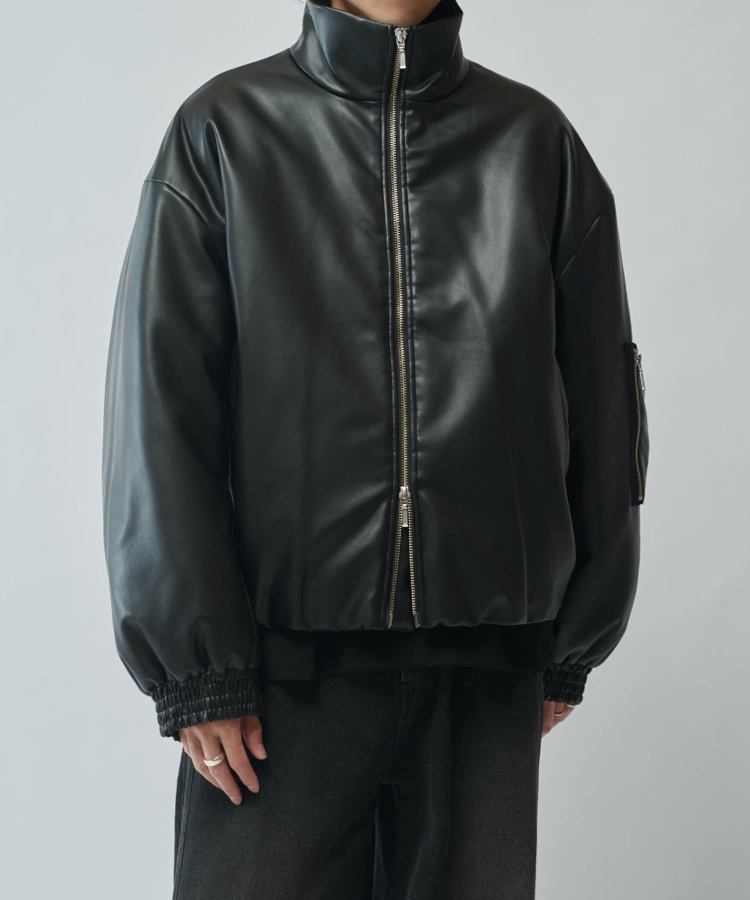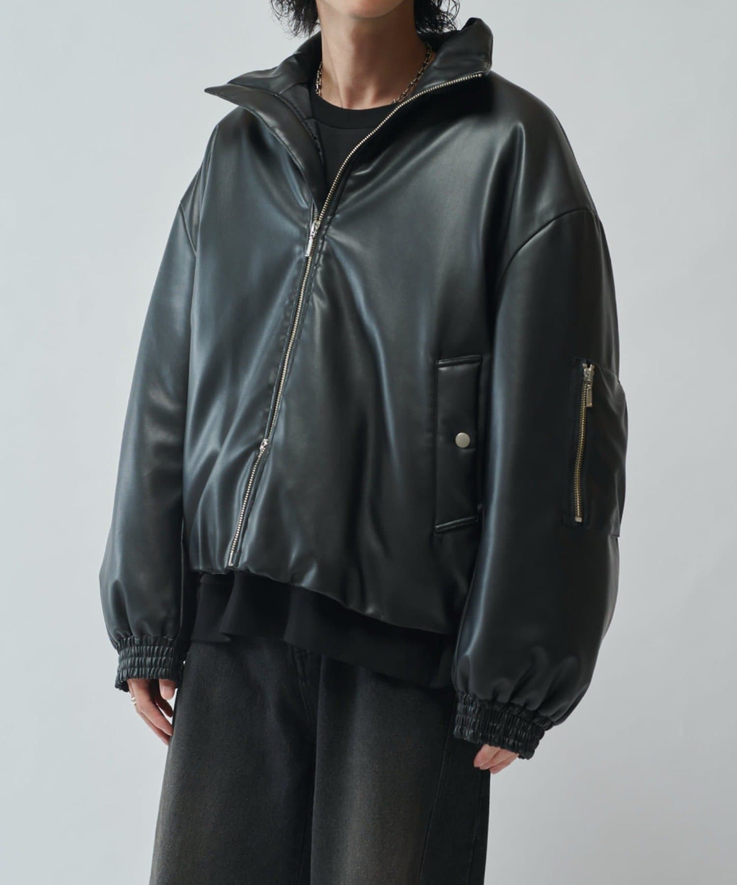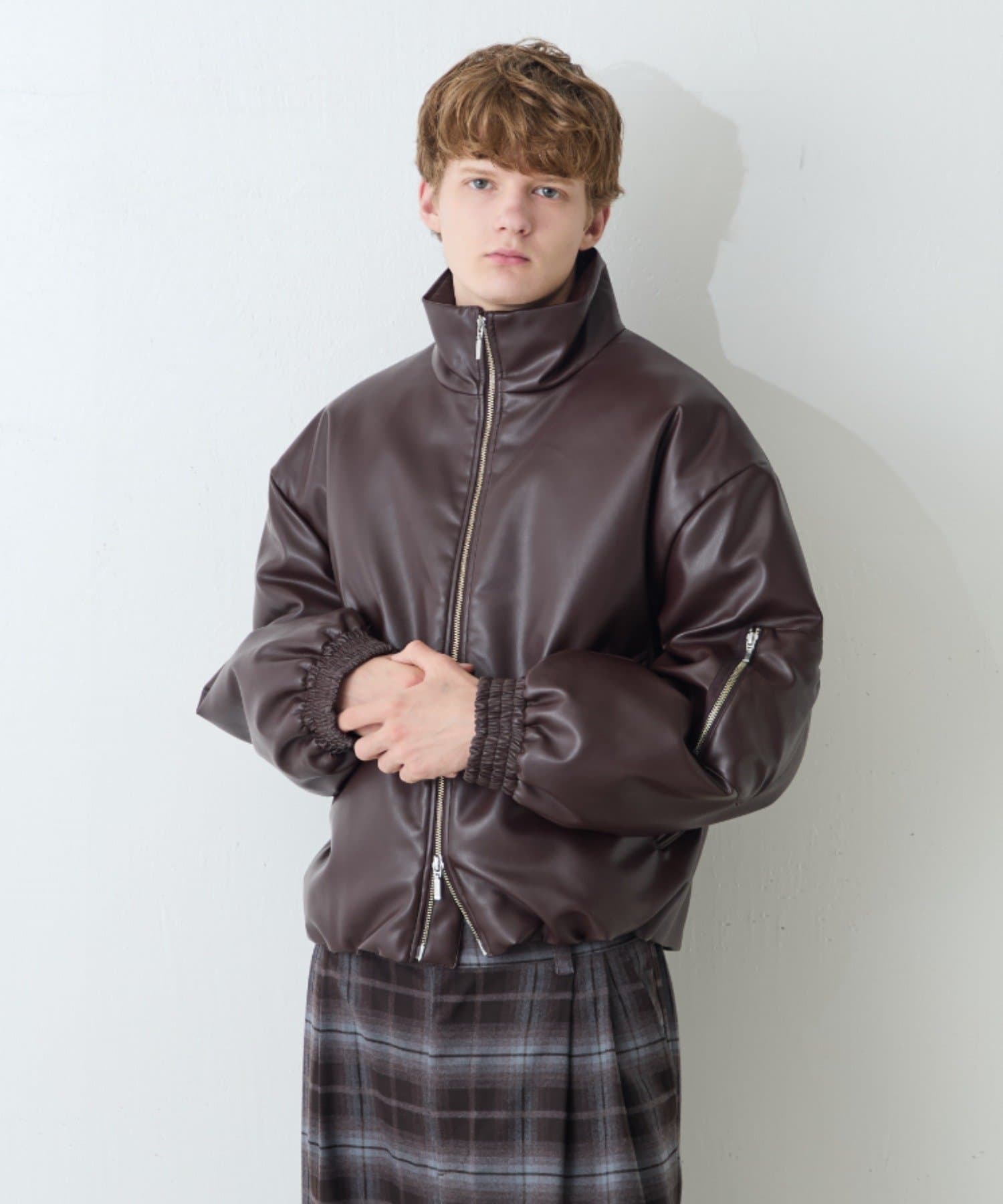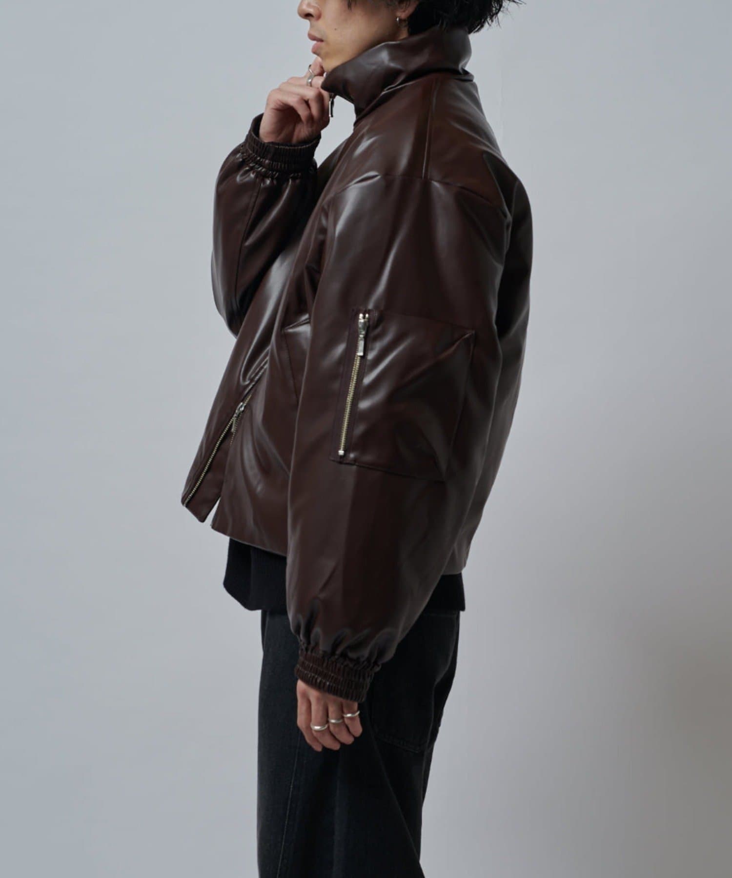 【Neucon/ニューコン】レザーボリュームパッファースタンドブルゾン