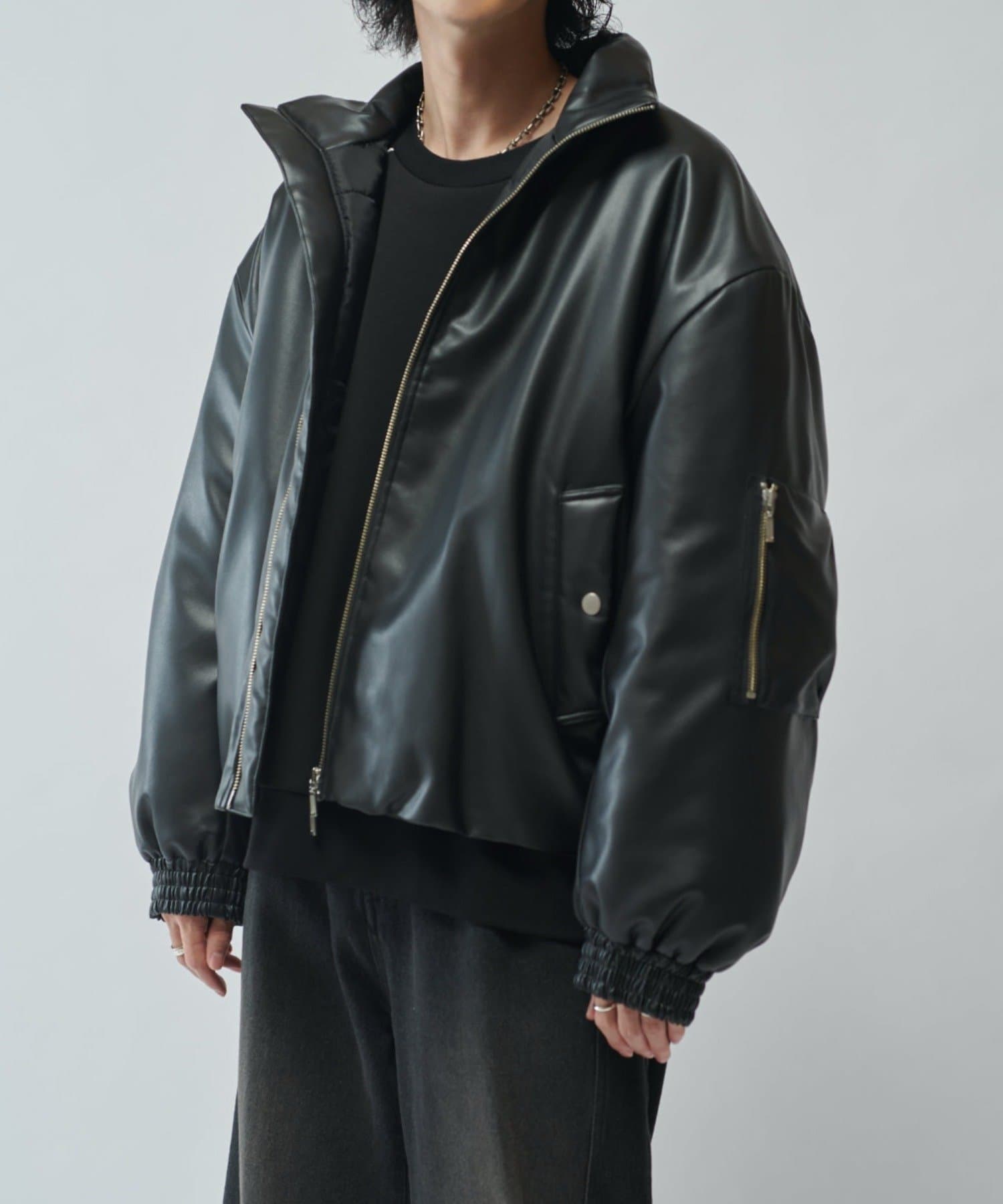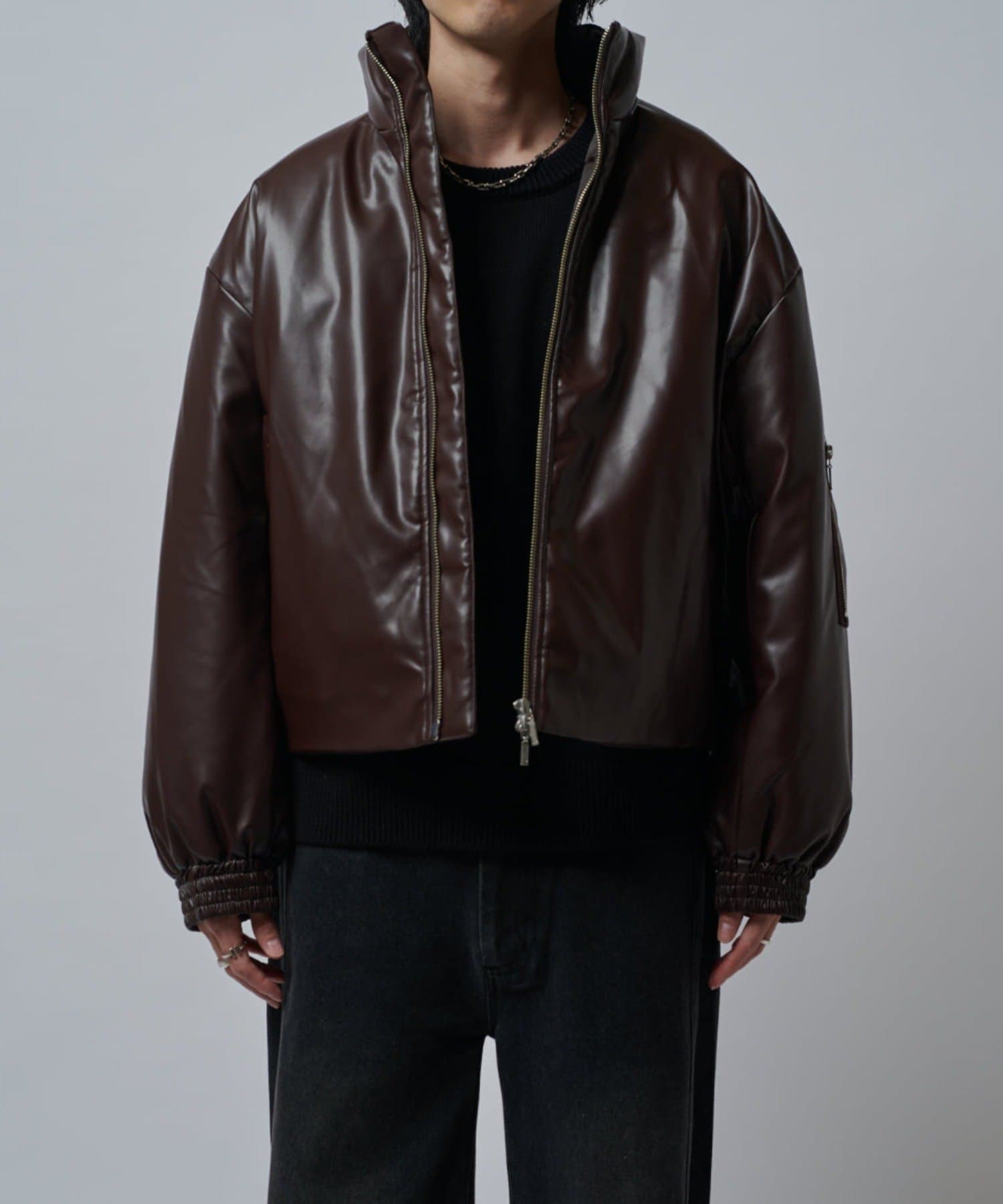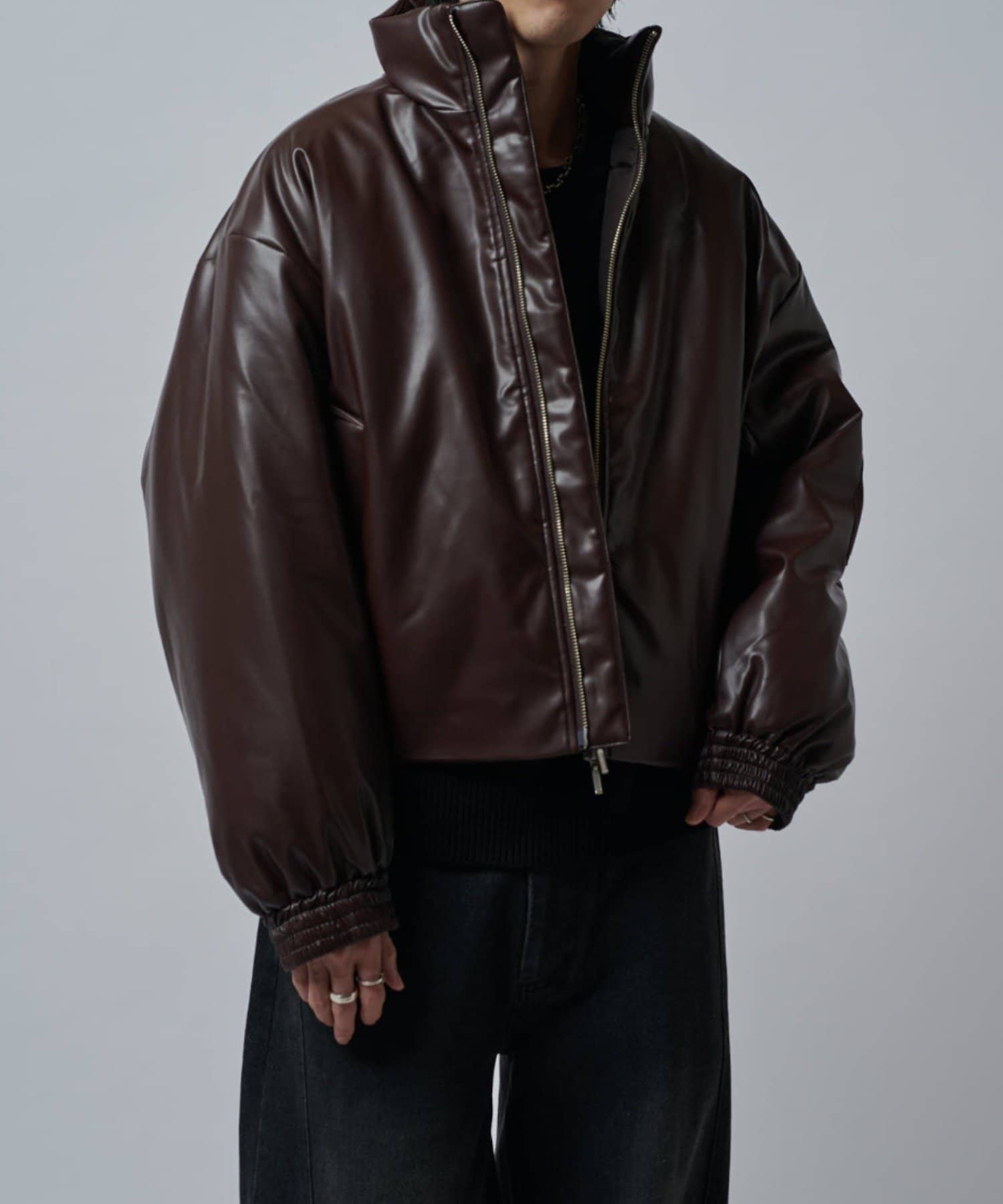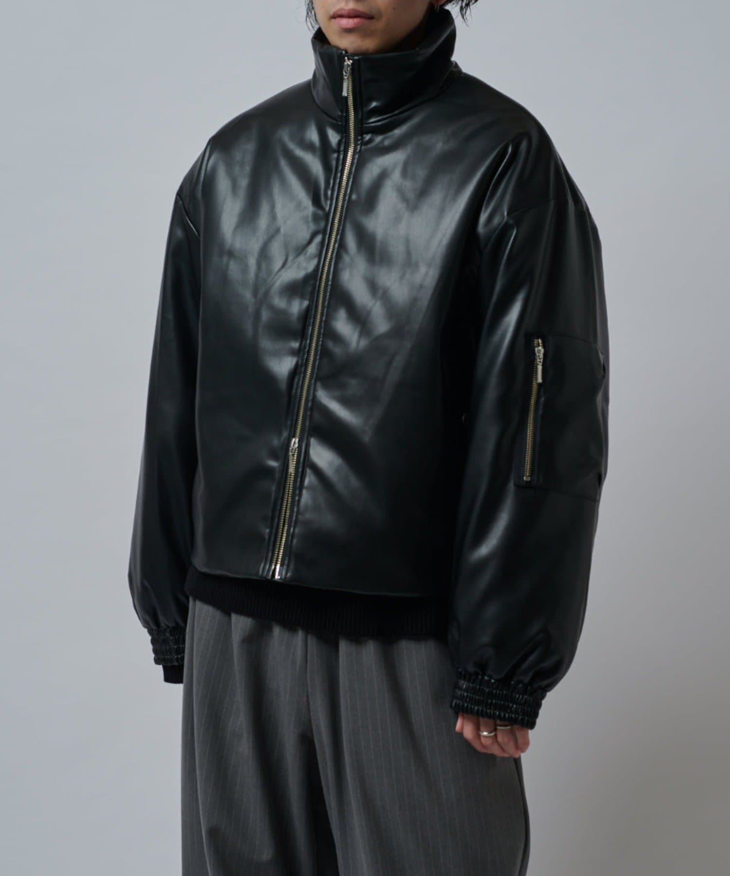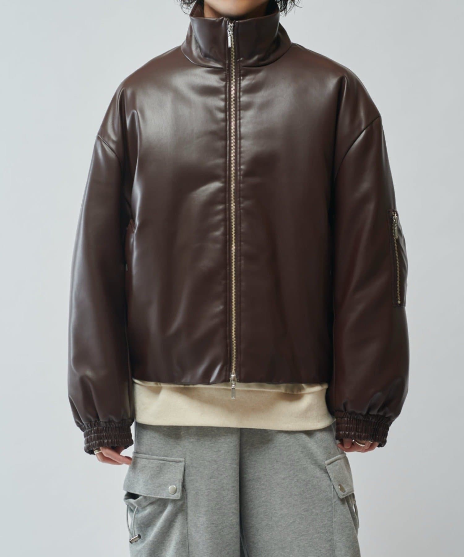 【Neucon/ニューコン】レザーボリュームパッファースタンドブルゾン