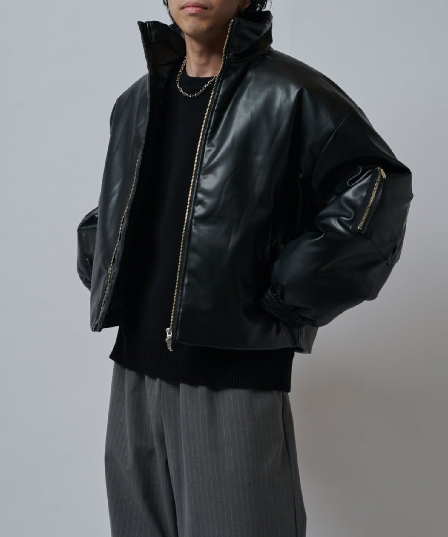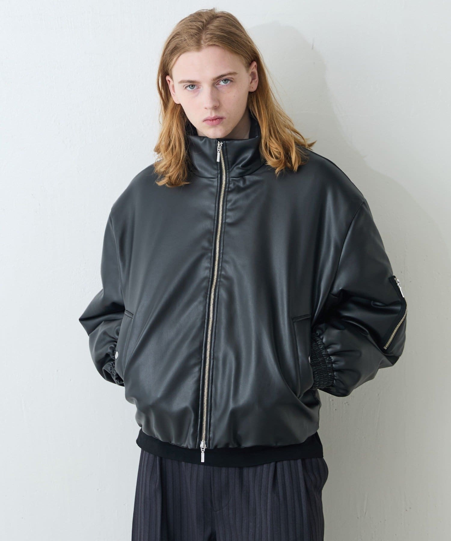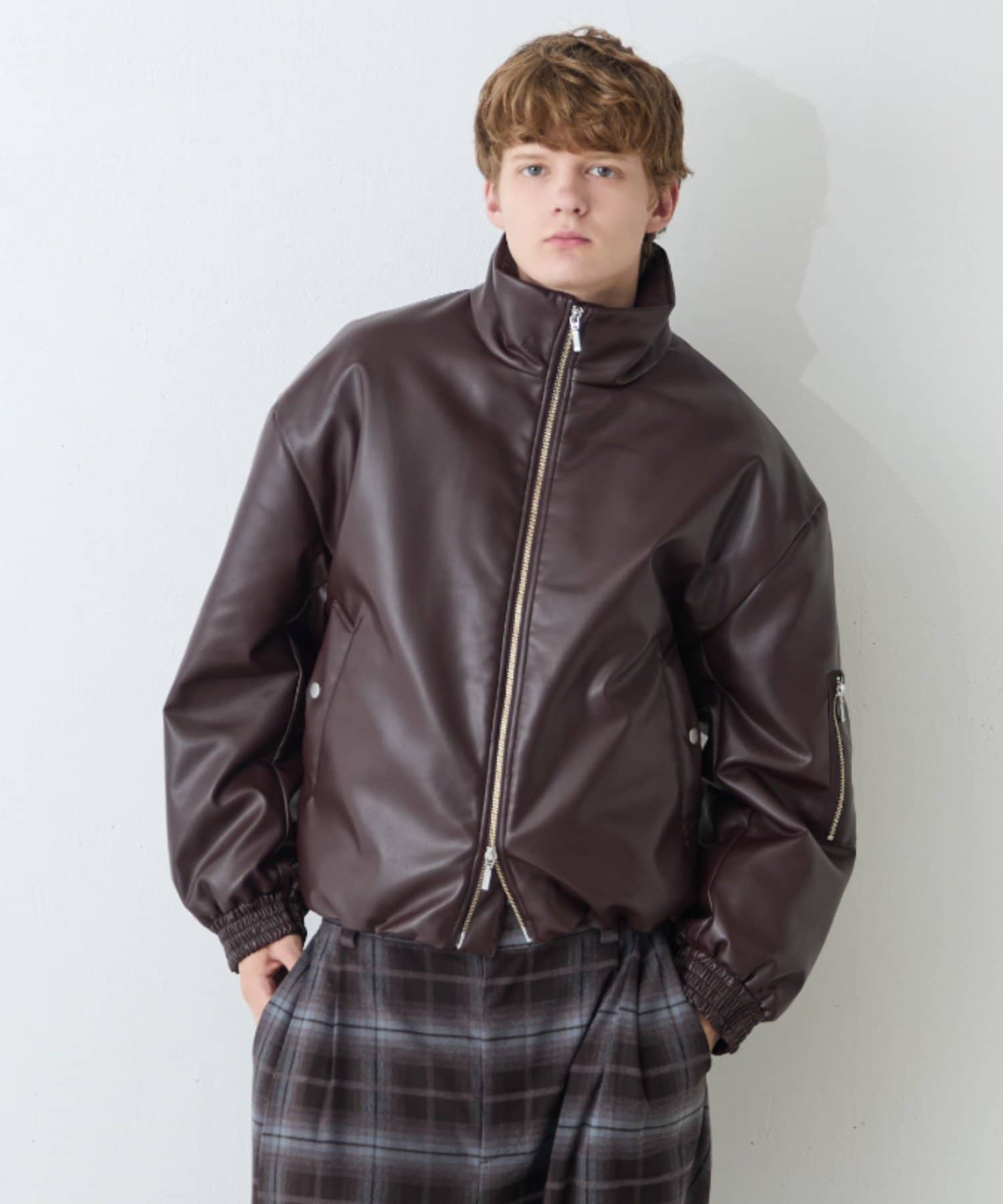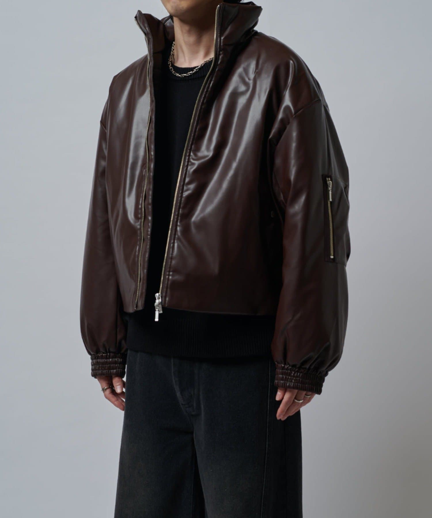 【Neucon/ニューコン】レザーボリュームパッファースタンドブルゾン