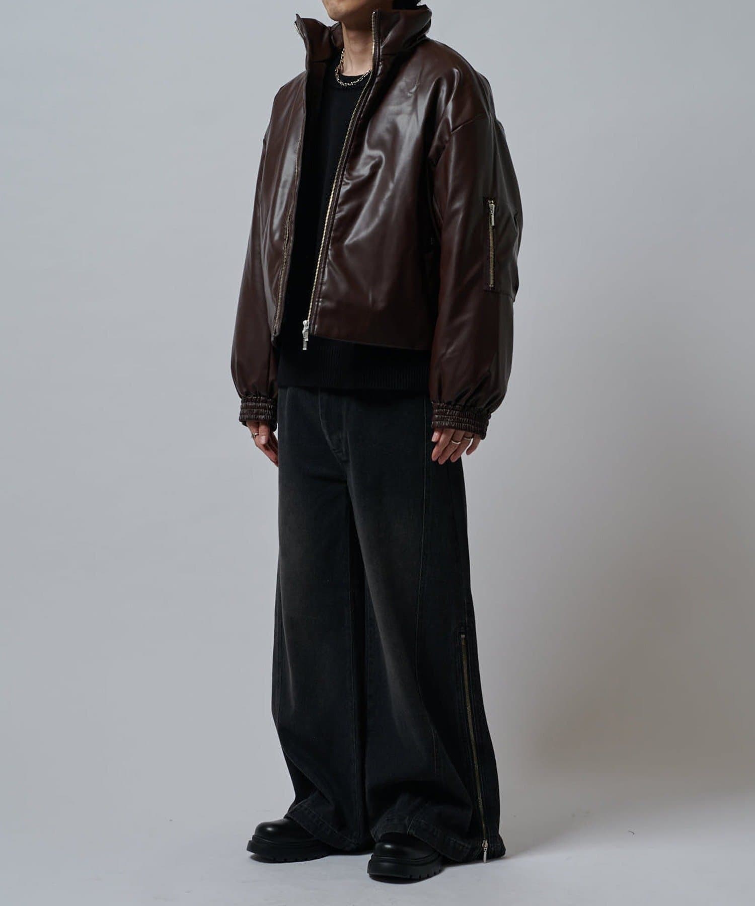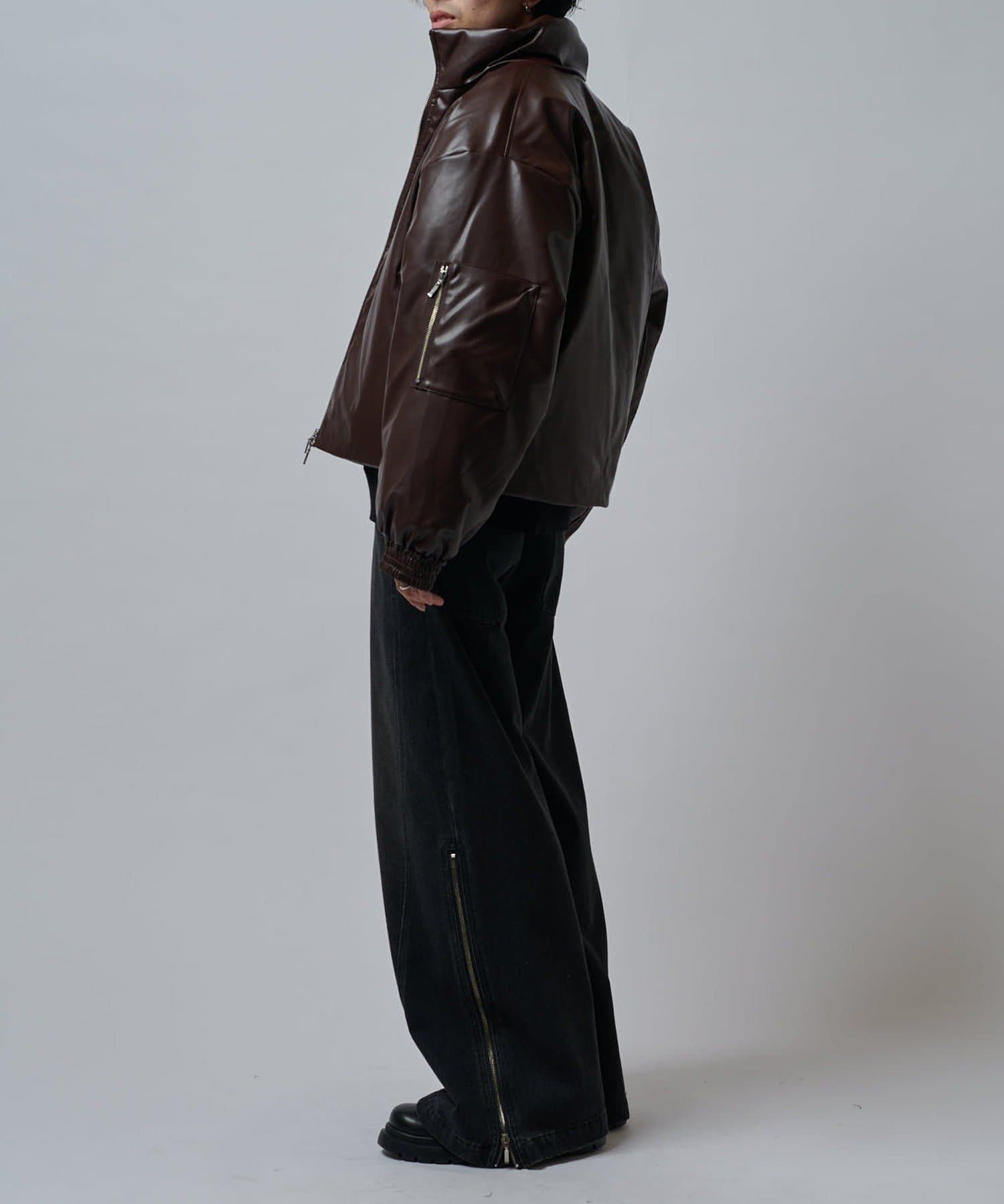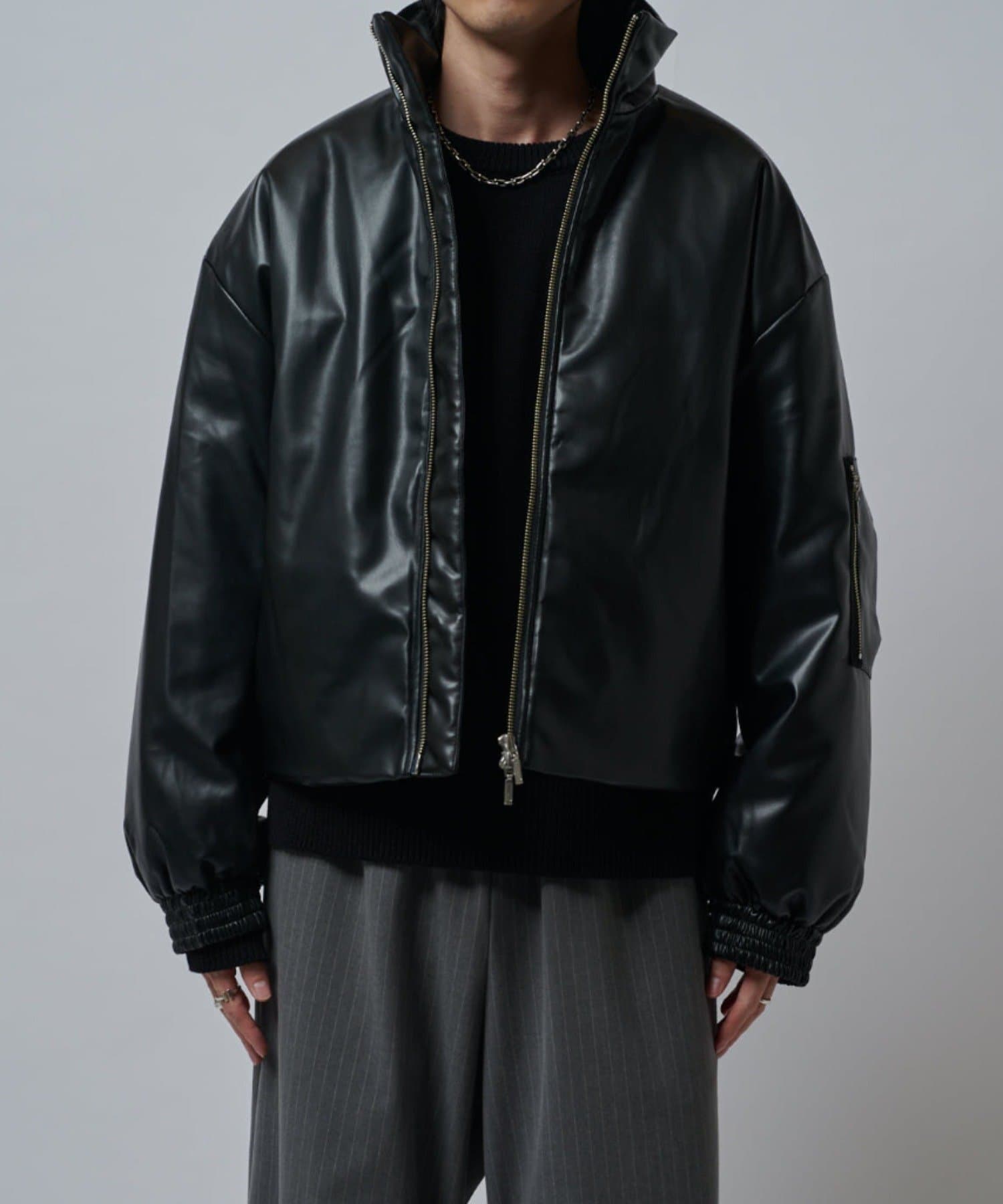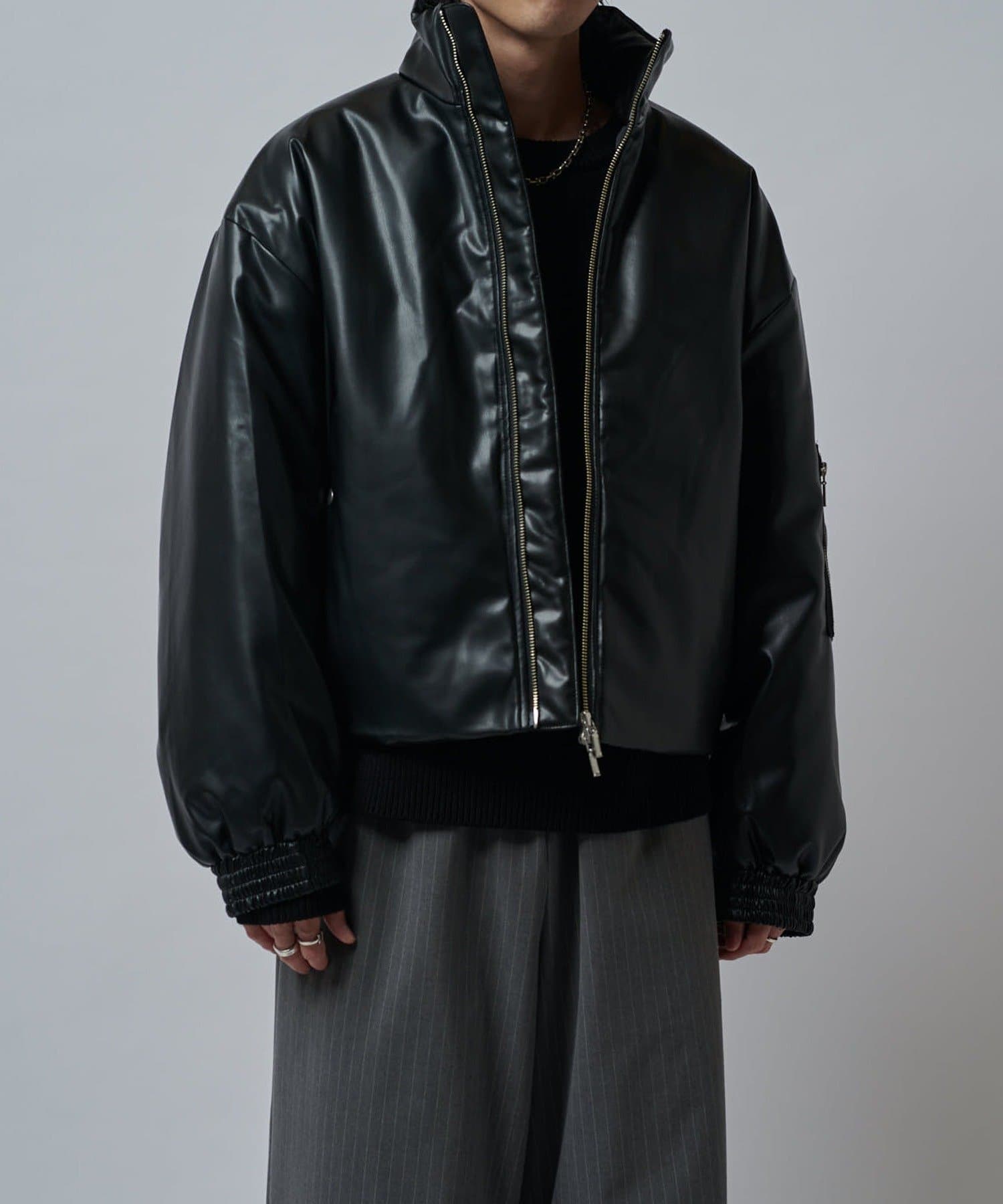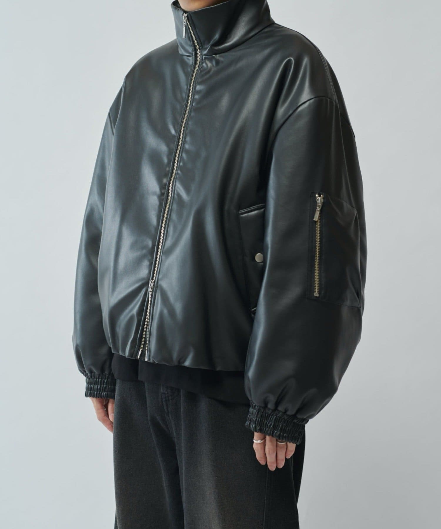【Neucon/ニューコン】レザーボリュームパッファースタンドブルゾン