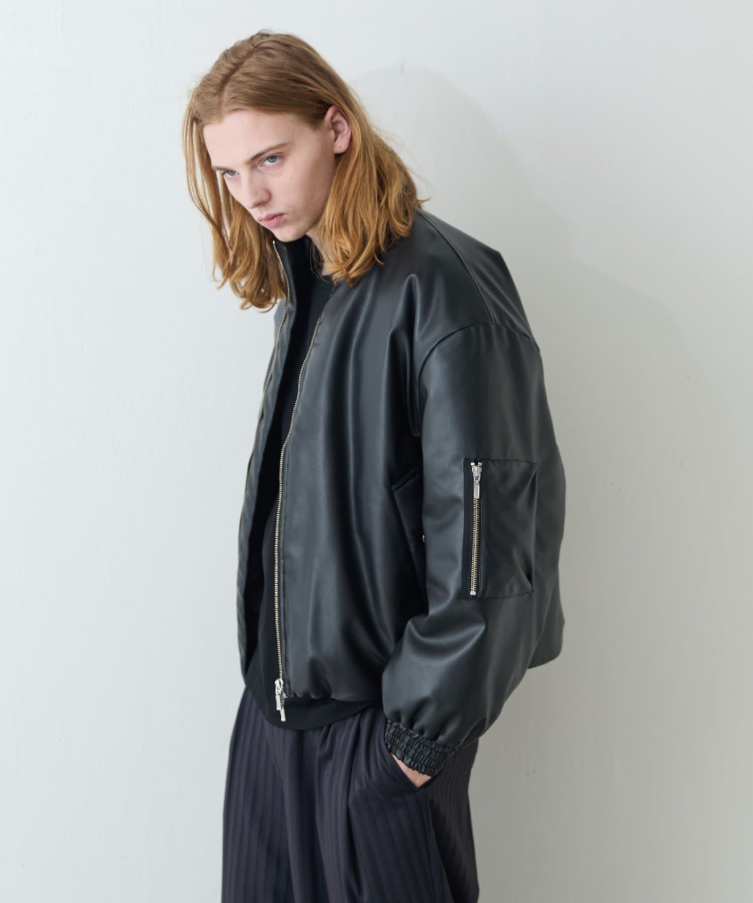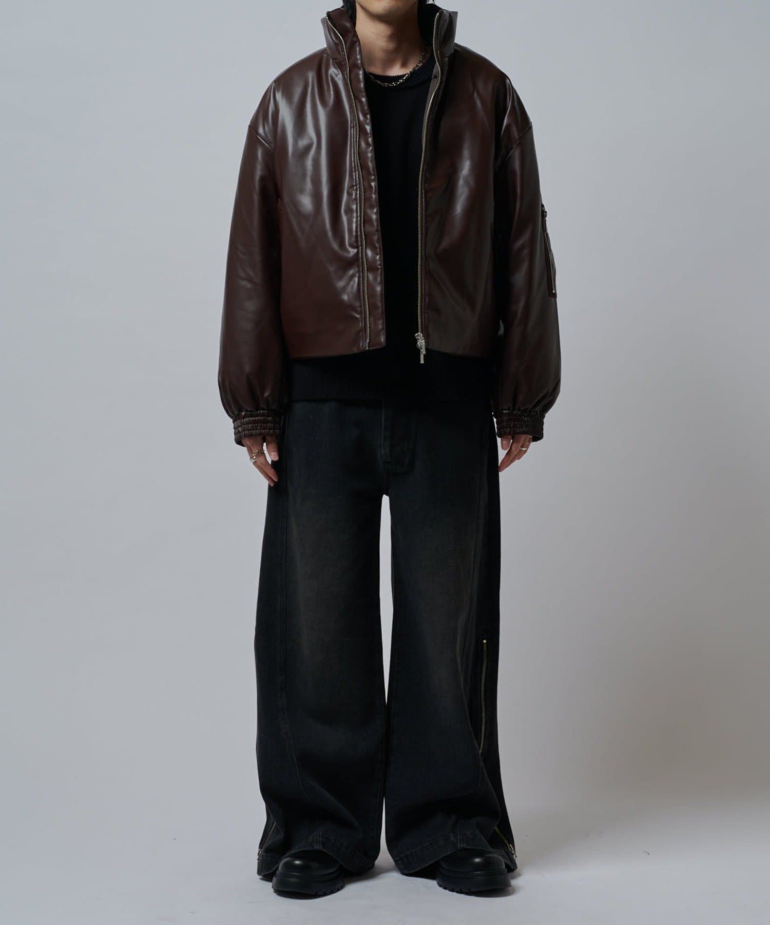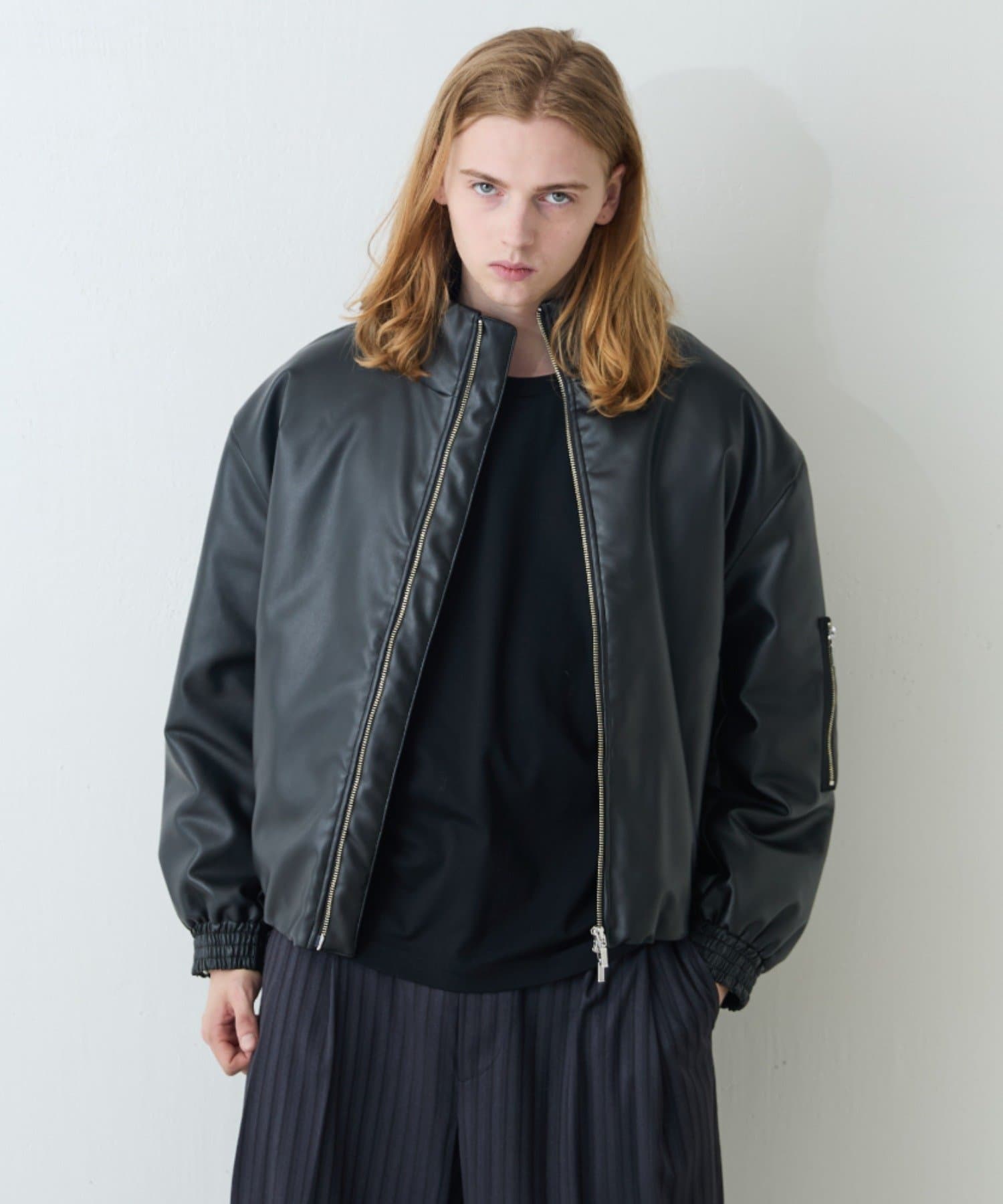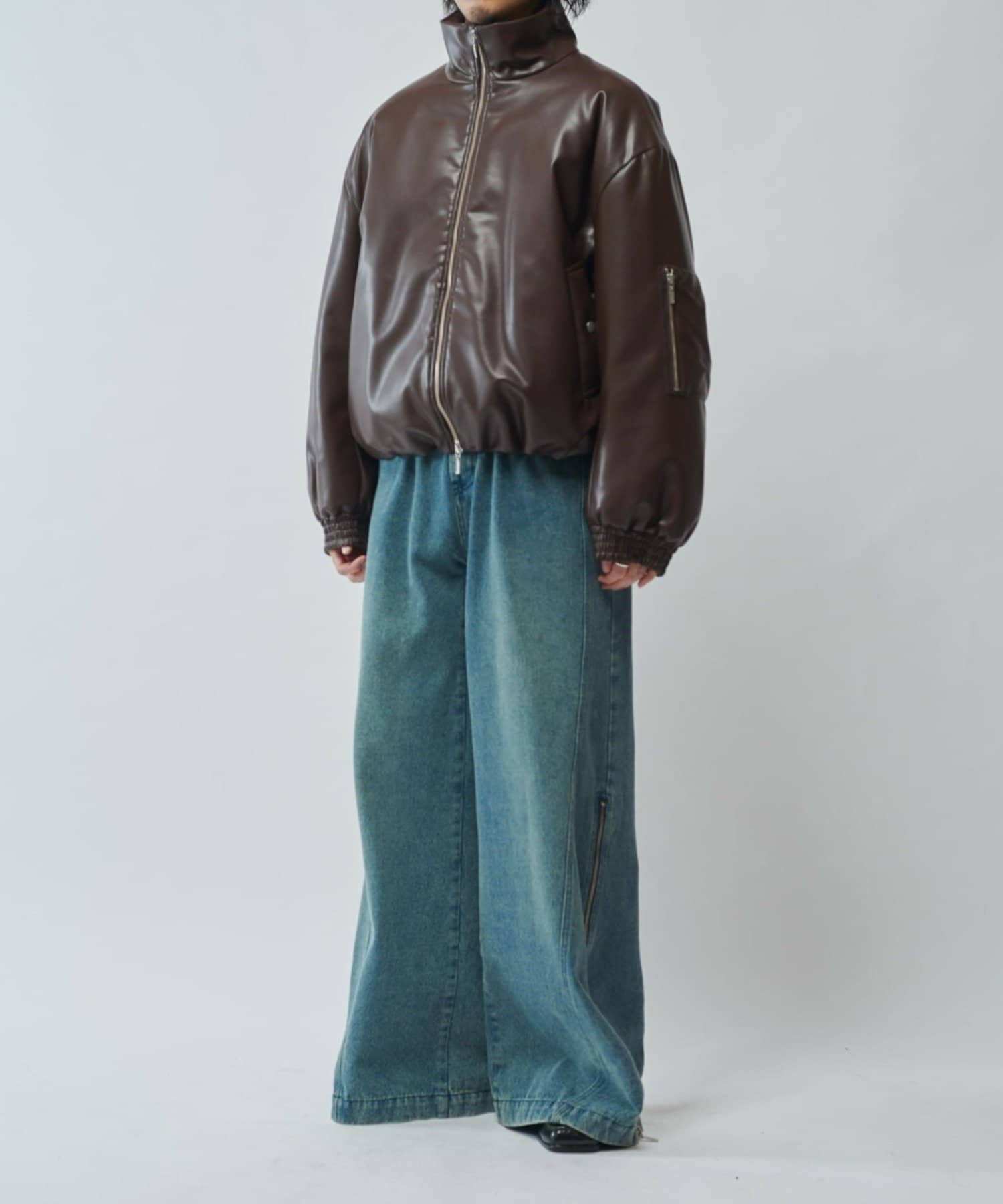 【Neucon/ニューコン】レザーボリュームパッファースタンドブルゾン