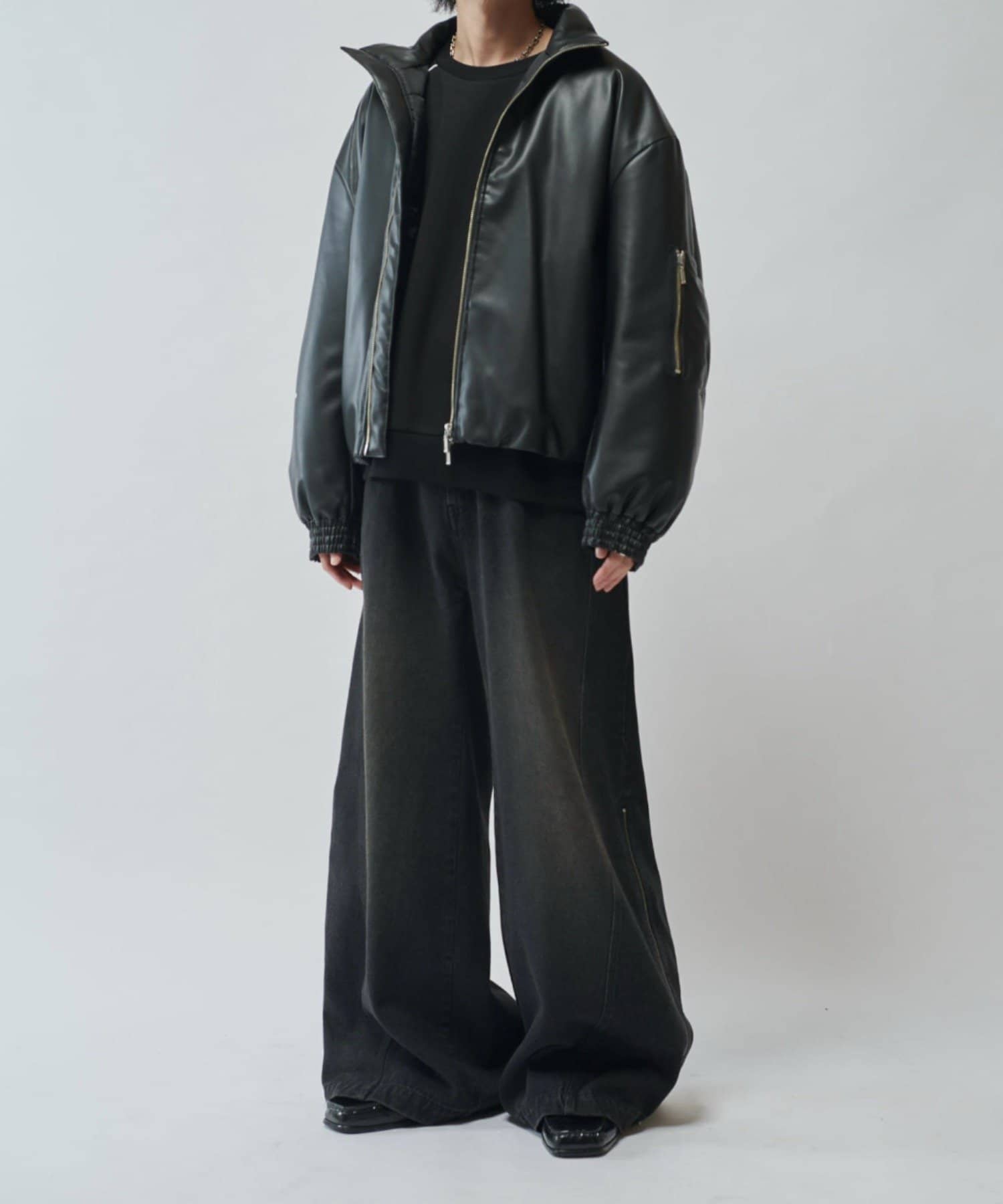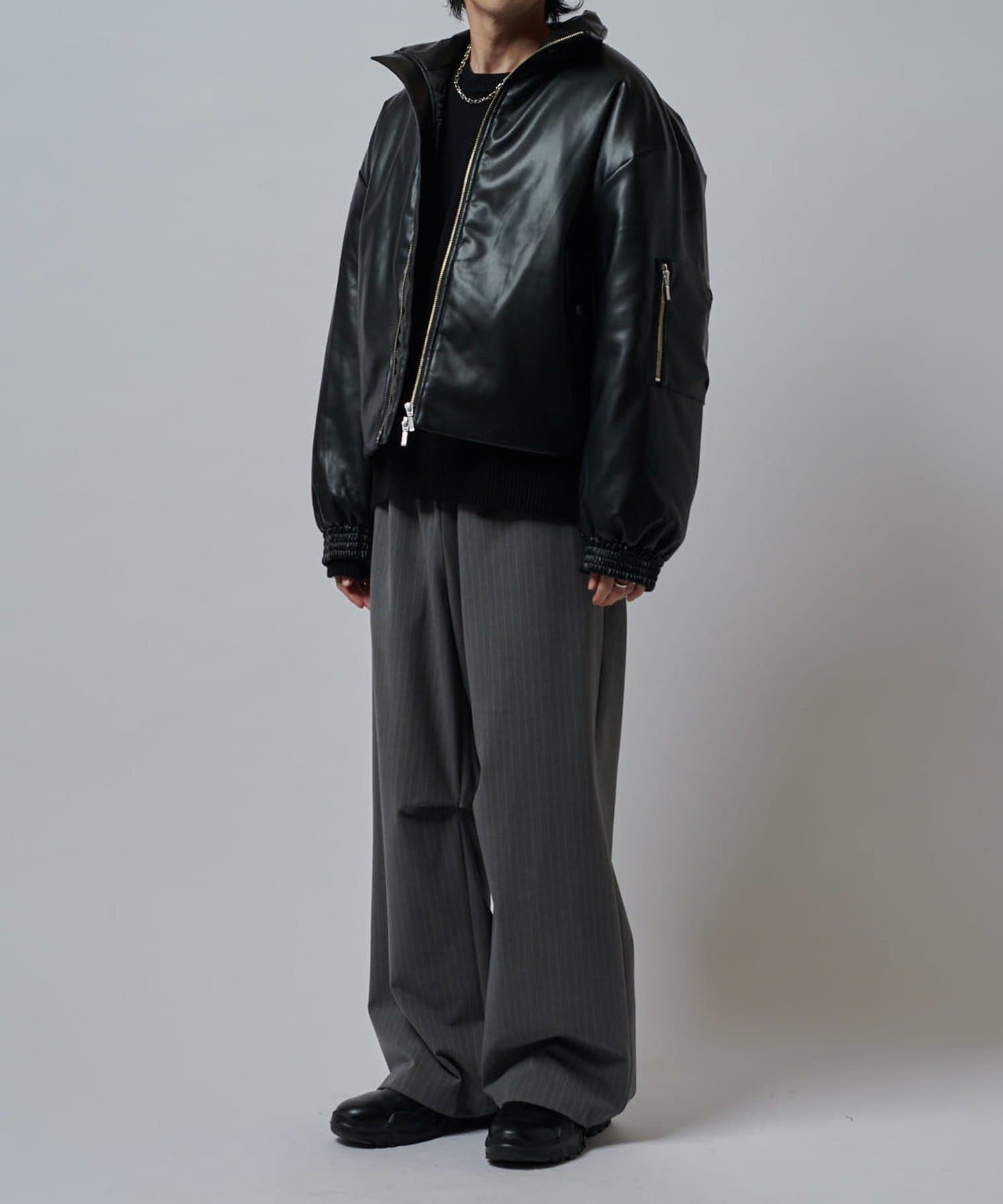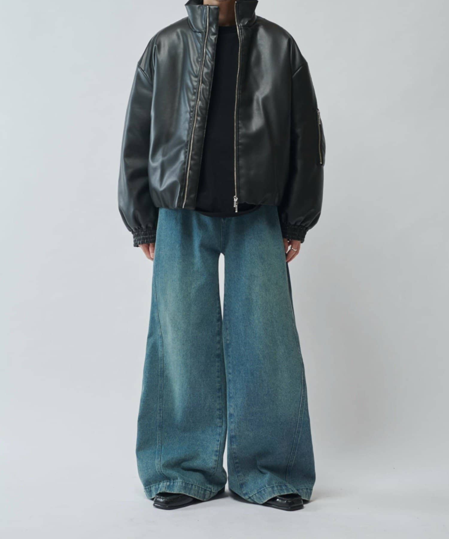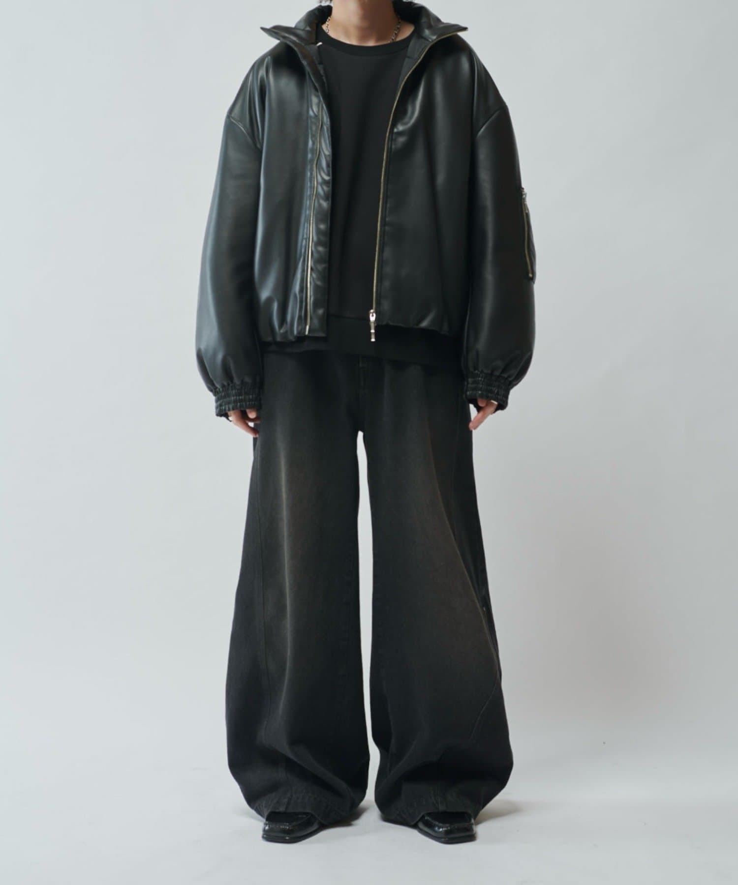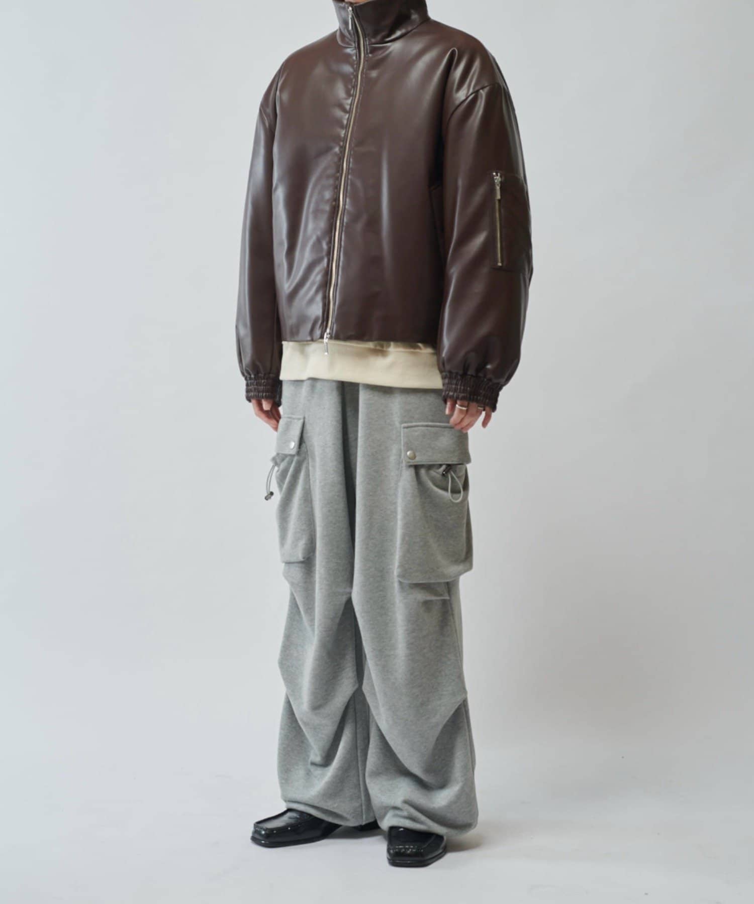 【Neucon/ニューコン】レザーボリュームパッファースタンドブルゾン