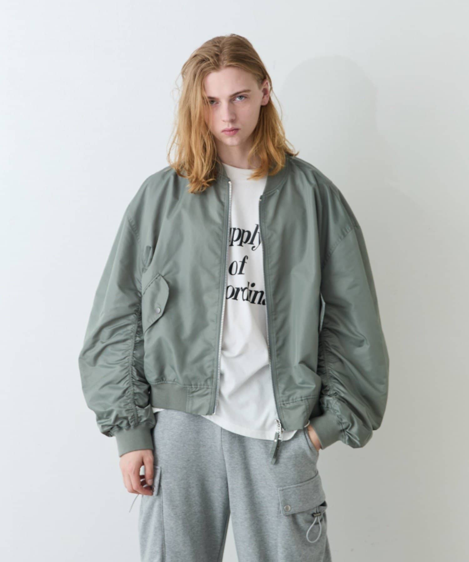 薄地なMA-1がとても使いやすくて、袖のシャーリングも可愛い!