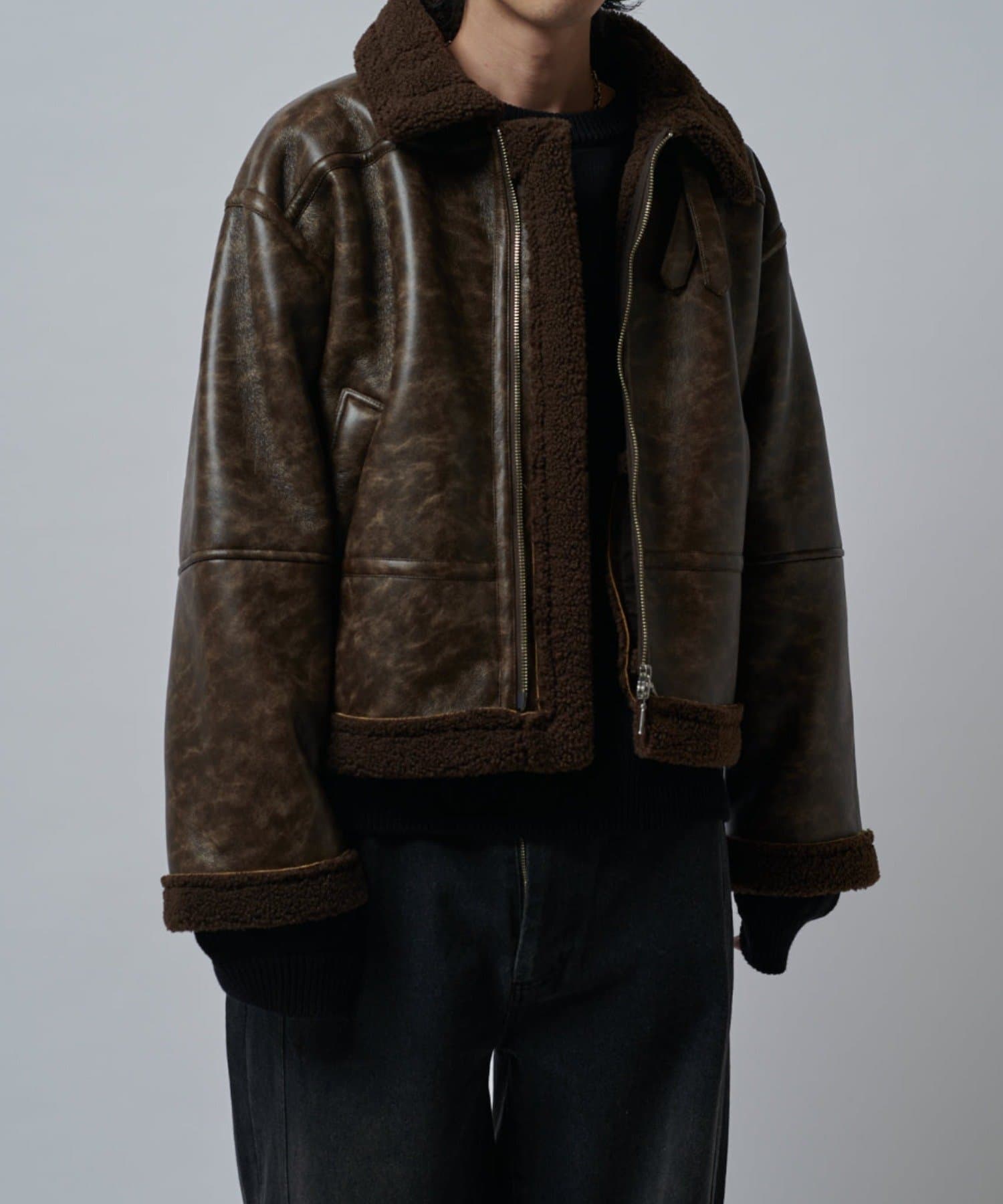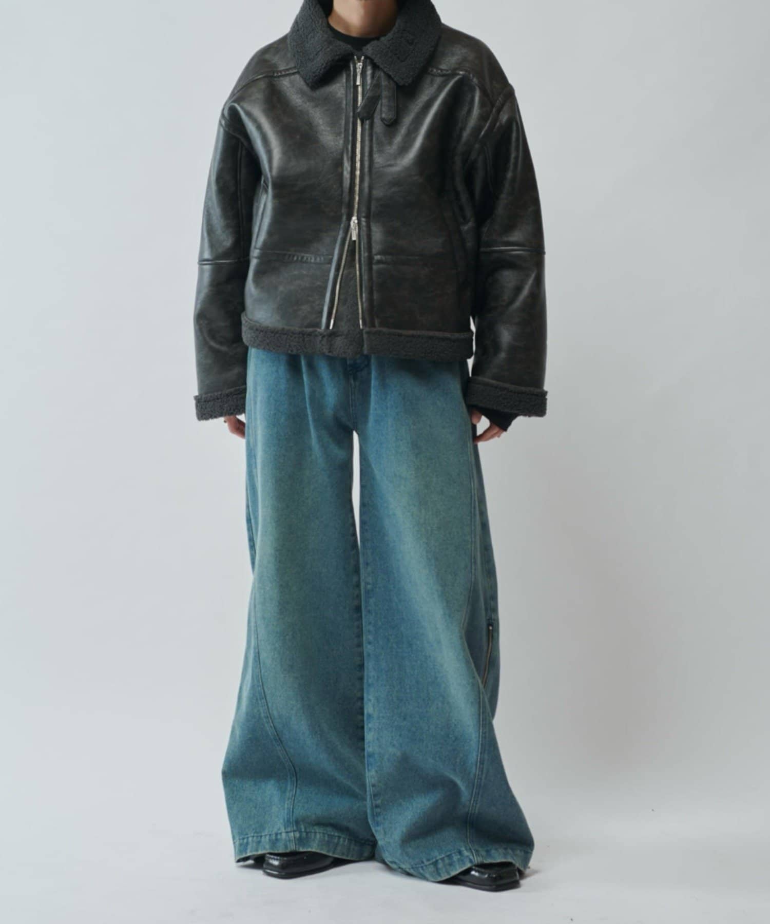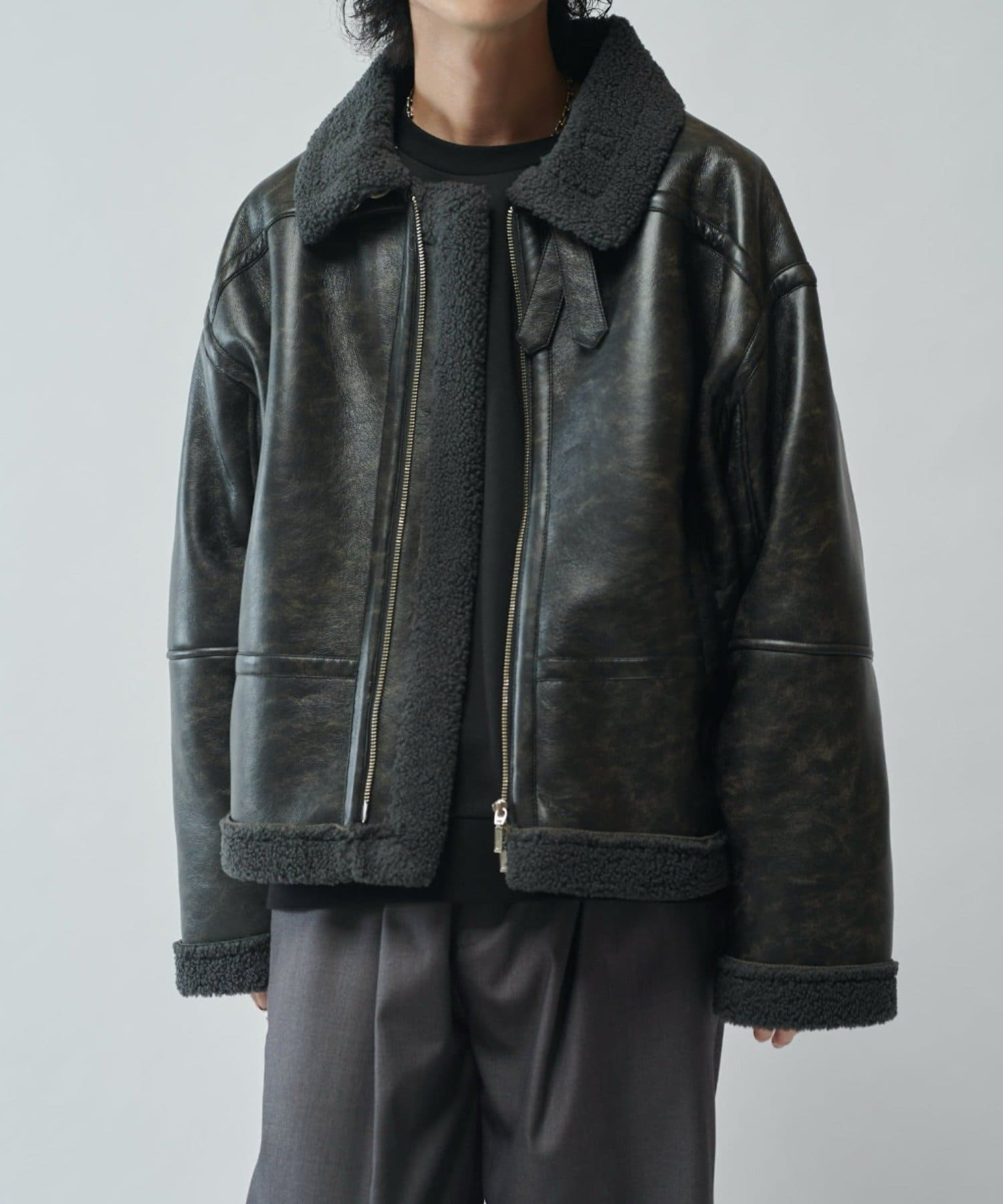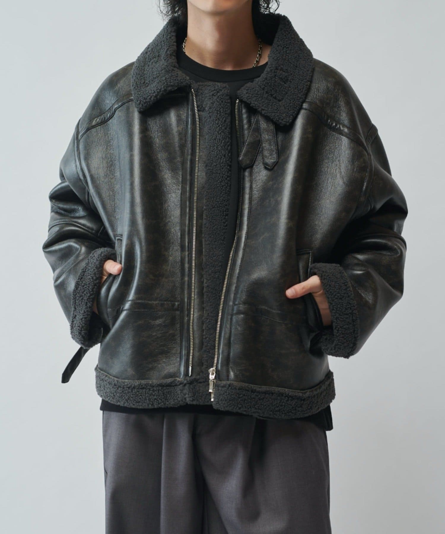 「ヴィンテージムートンクロップドワイドブルゾン」