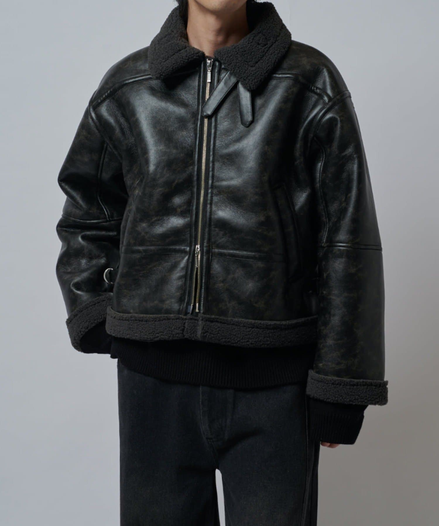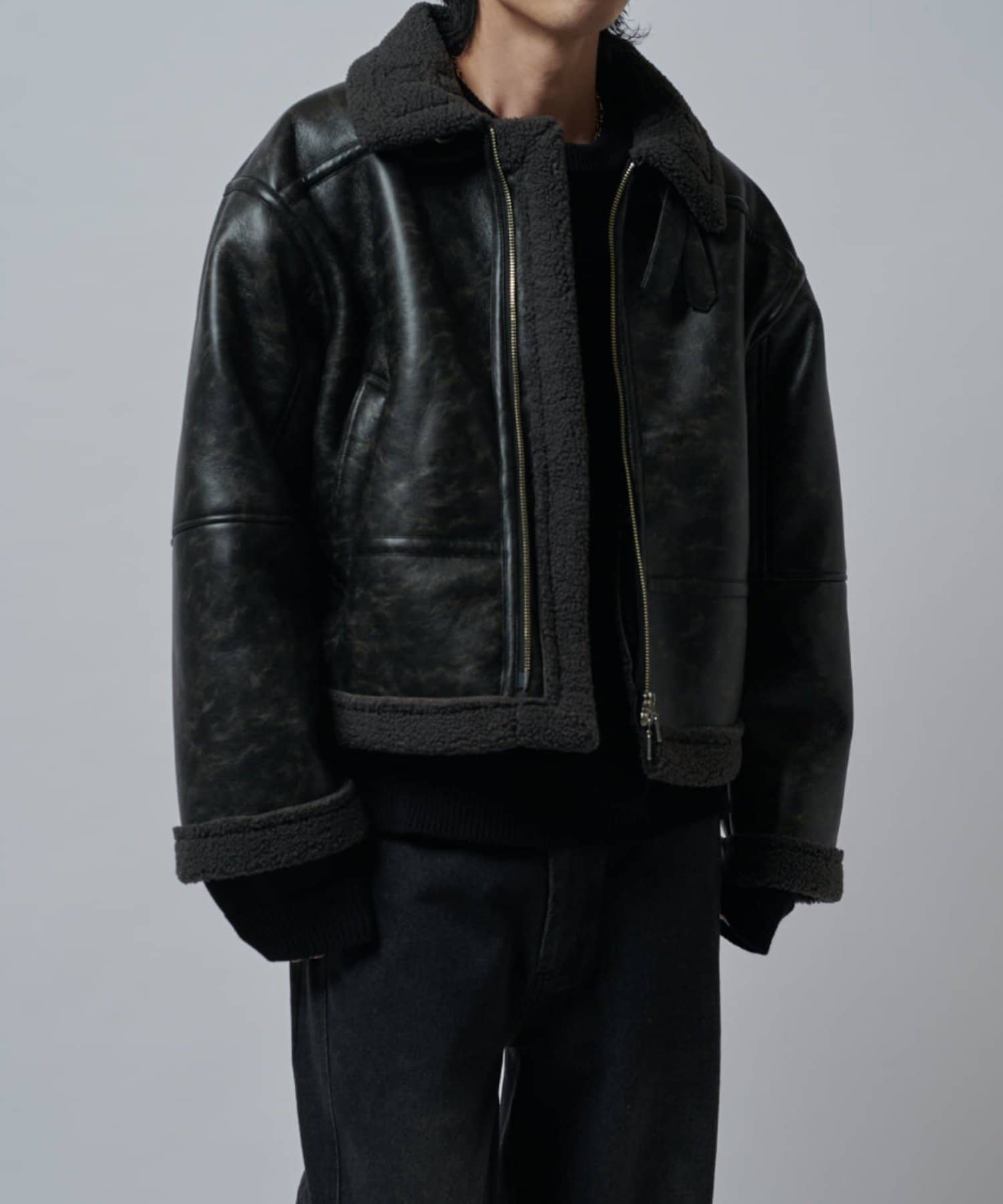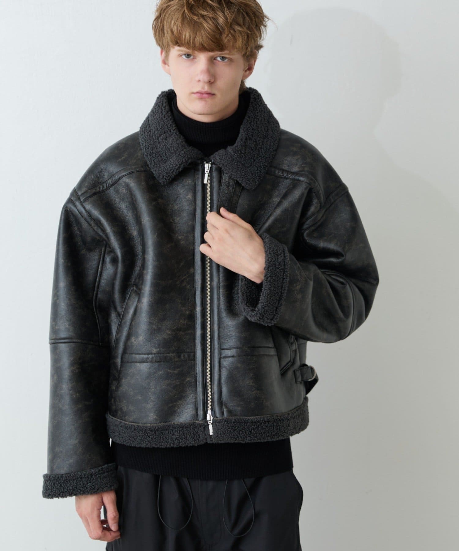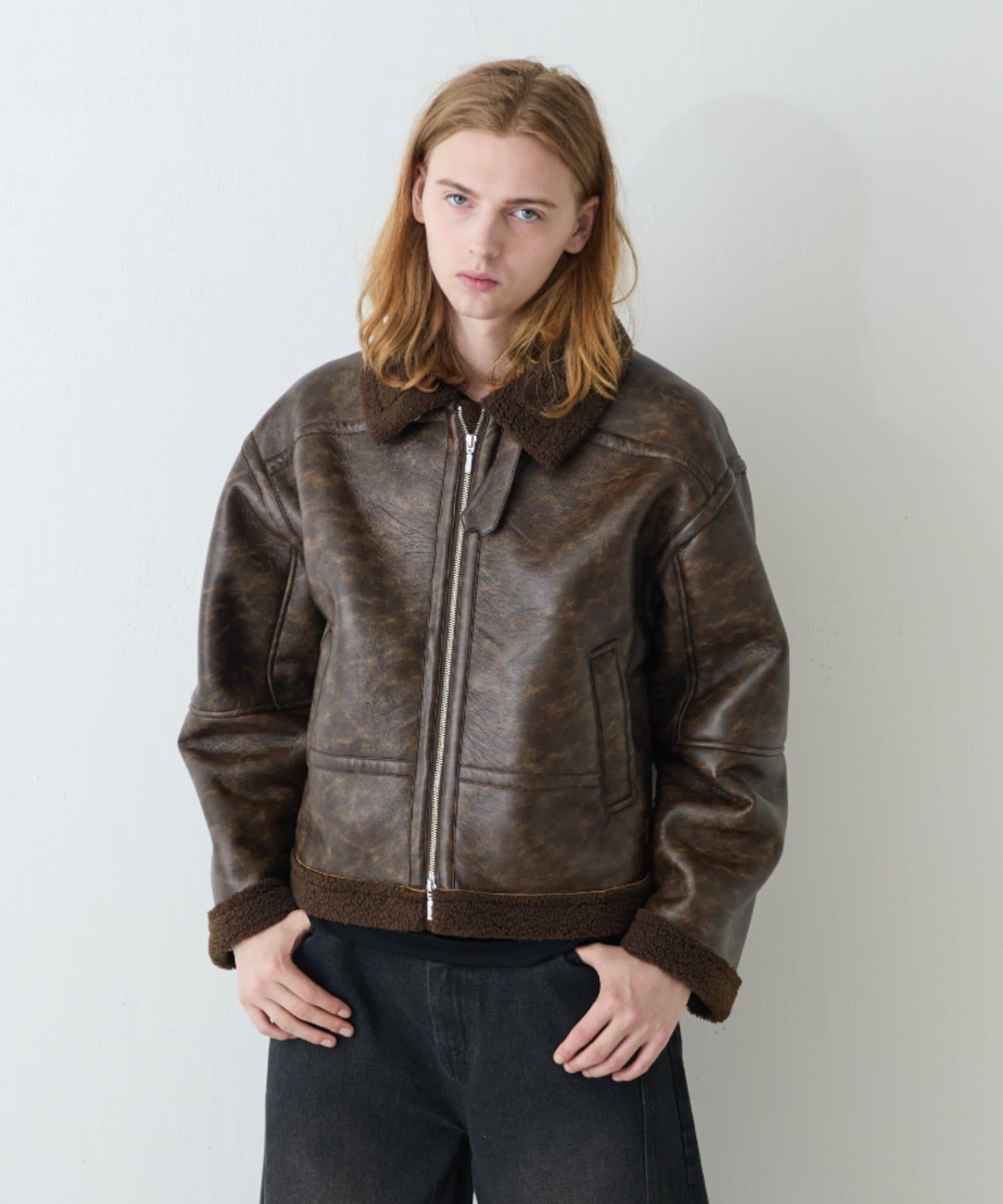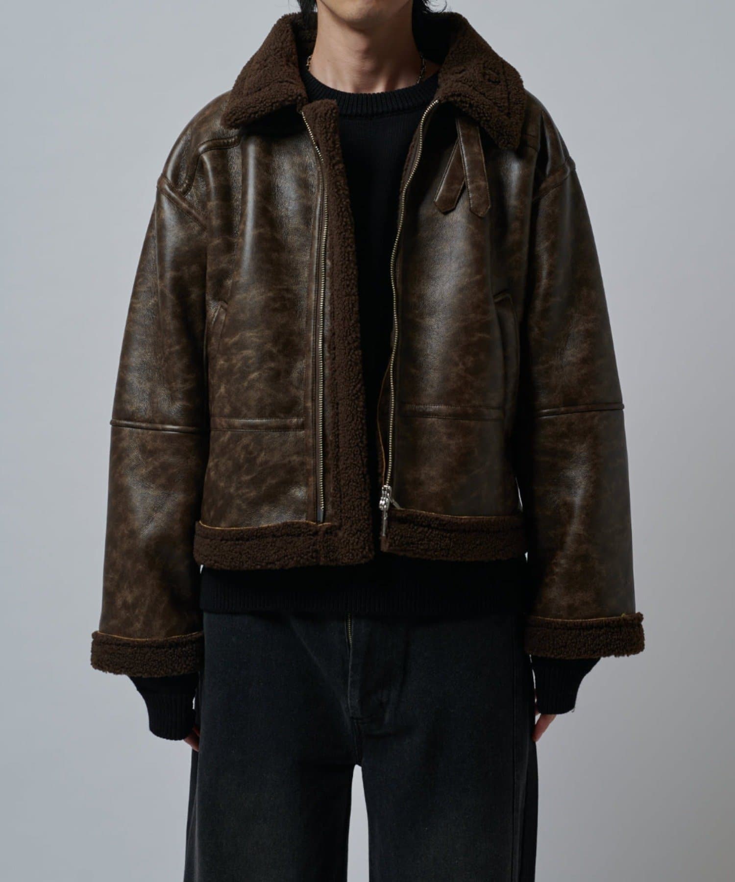 「ヴィンテージムートンクロップドワイドブルゾン」