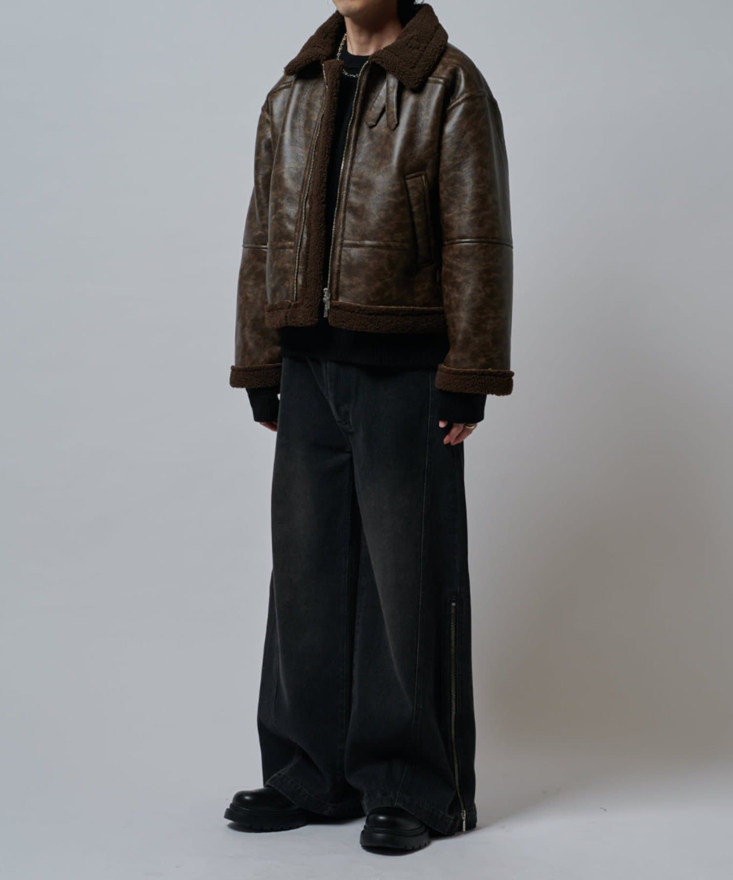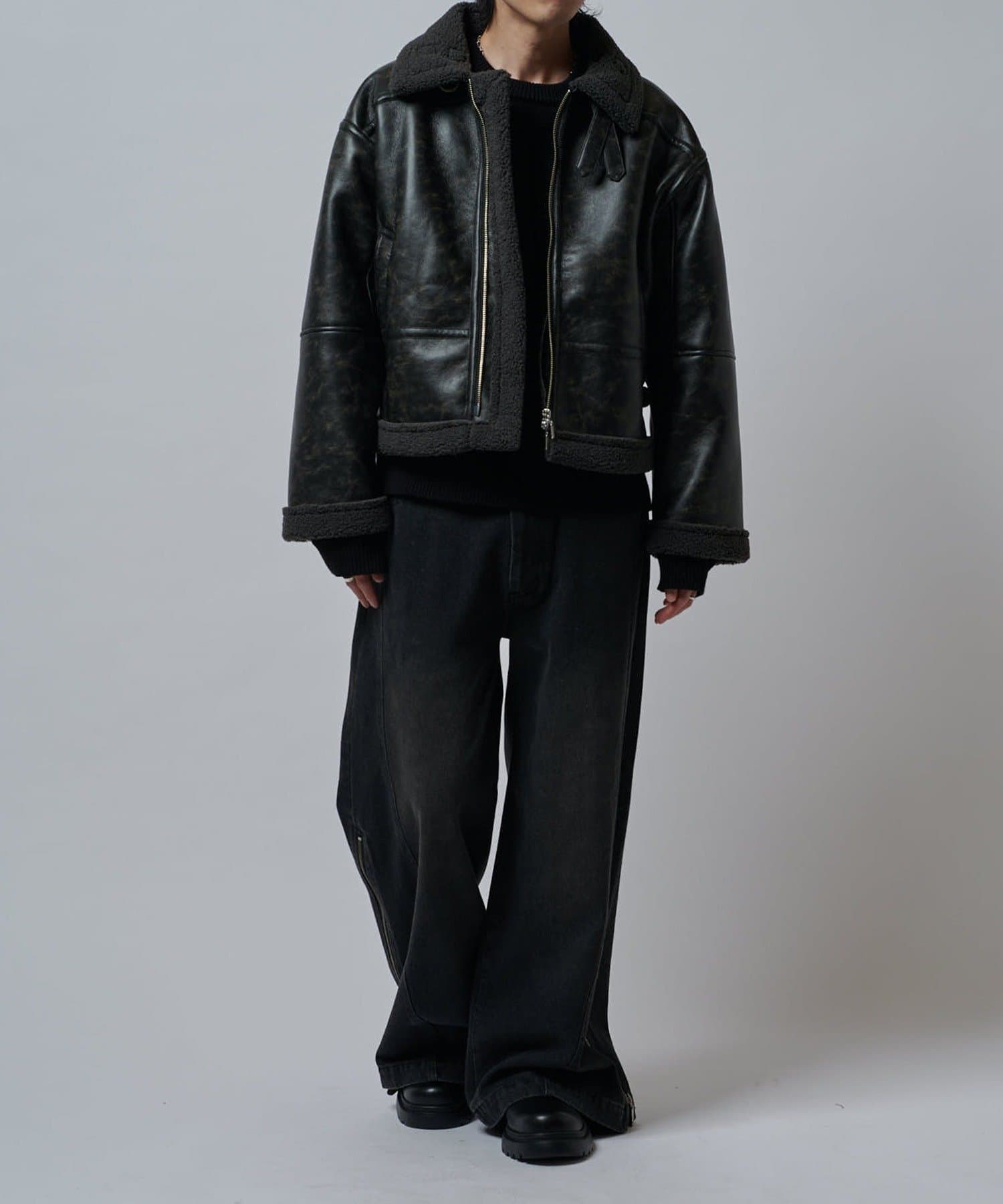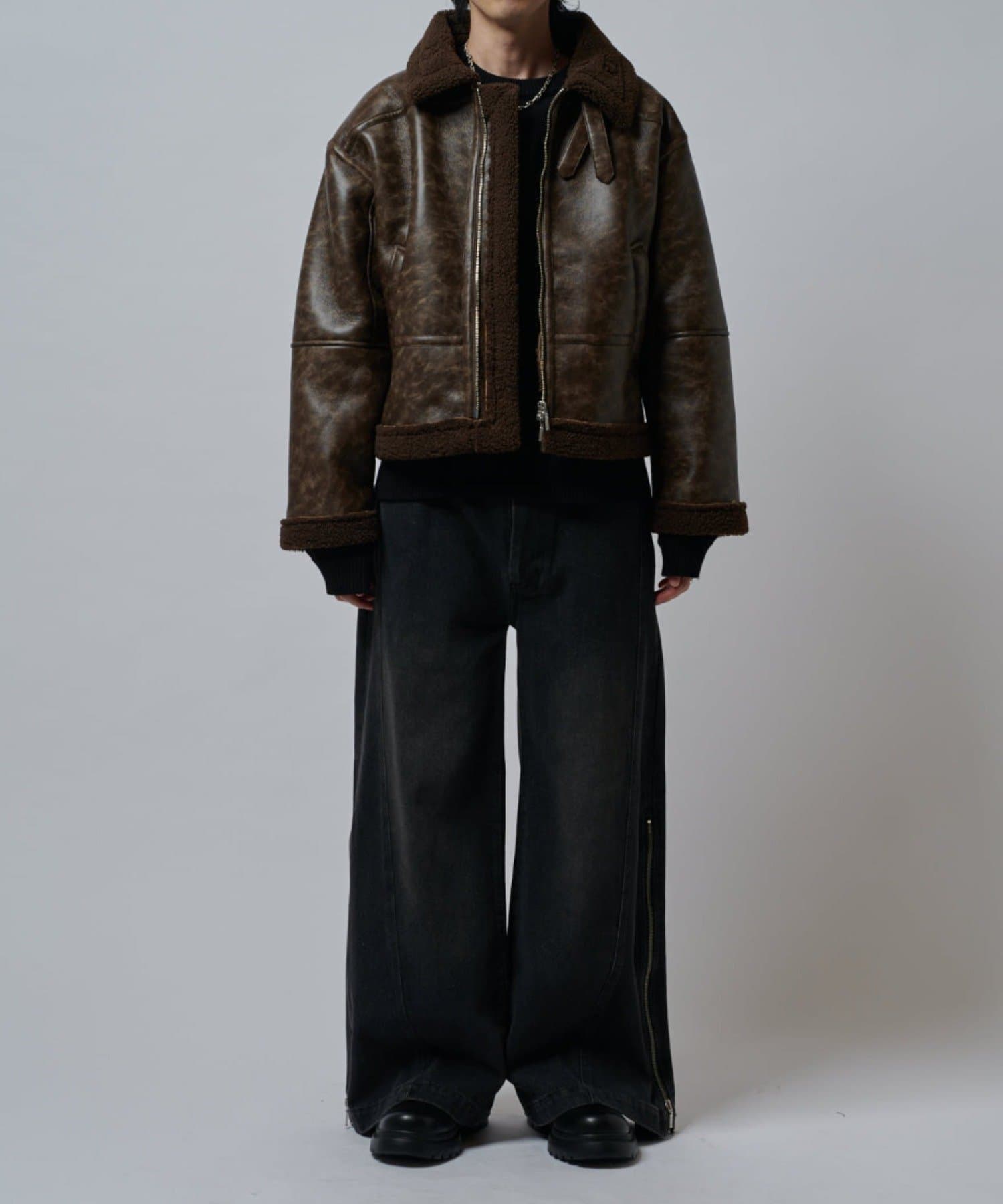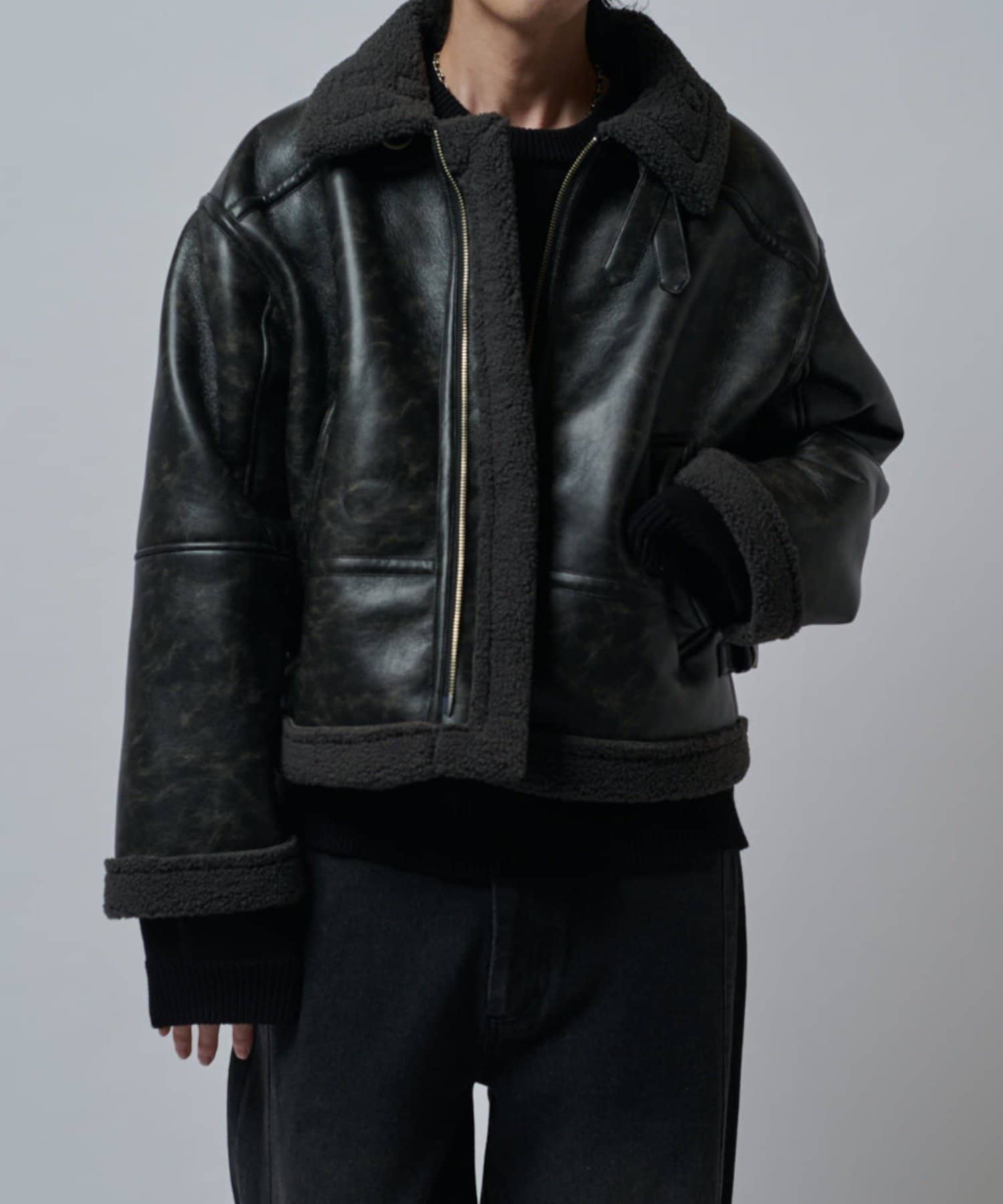 「ヴィンテージムートンクロップドワイドブルゾン」