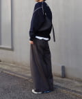・後ろのみウエストゴムになっている為、ストレスフリーに履ける且つ、タックインした際の見え方にまで拘り、"使いやすいのに穿くだけでお洒落"を実現した一本。