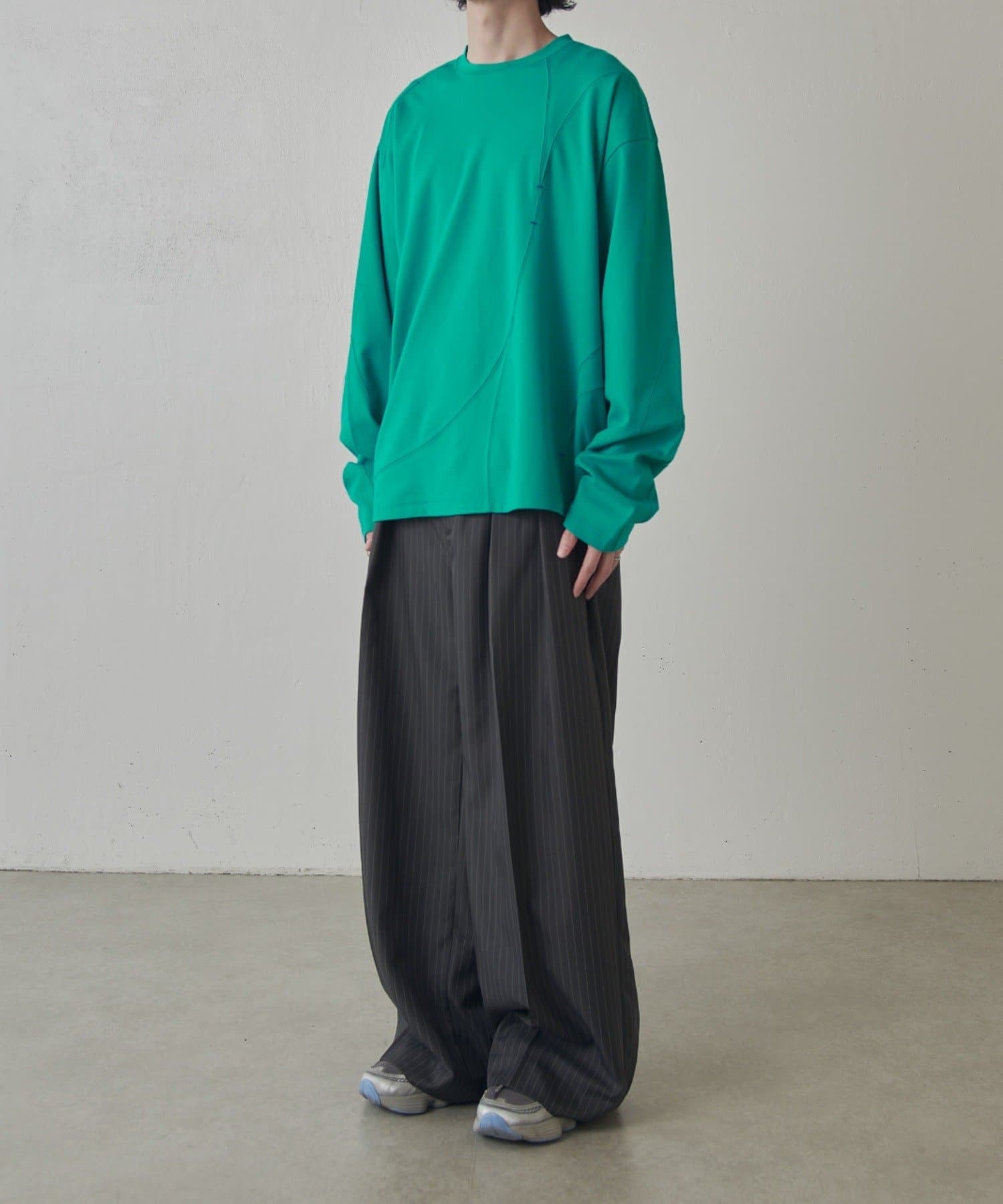 ・通常のタックとは異なり、内側に向けた深めの2タックが腿回りをスッキリさせることにより、"ワイドなのに野暮ったく見えない"シルエットを叶えます。