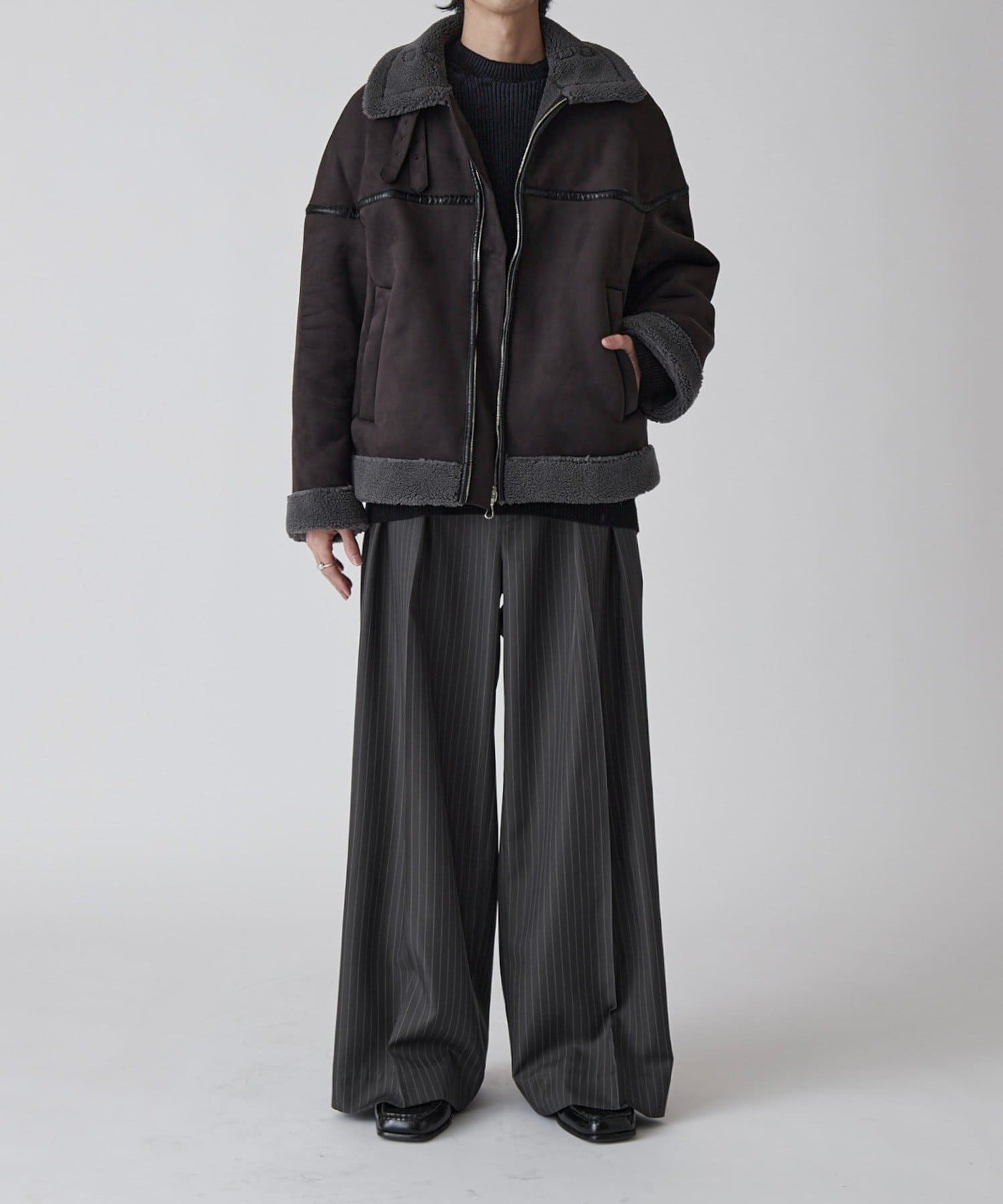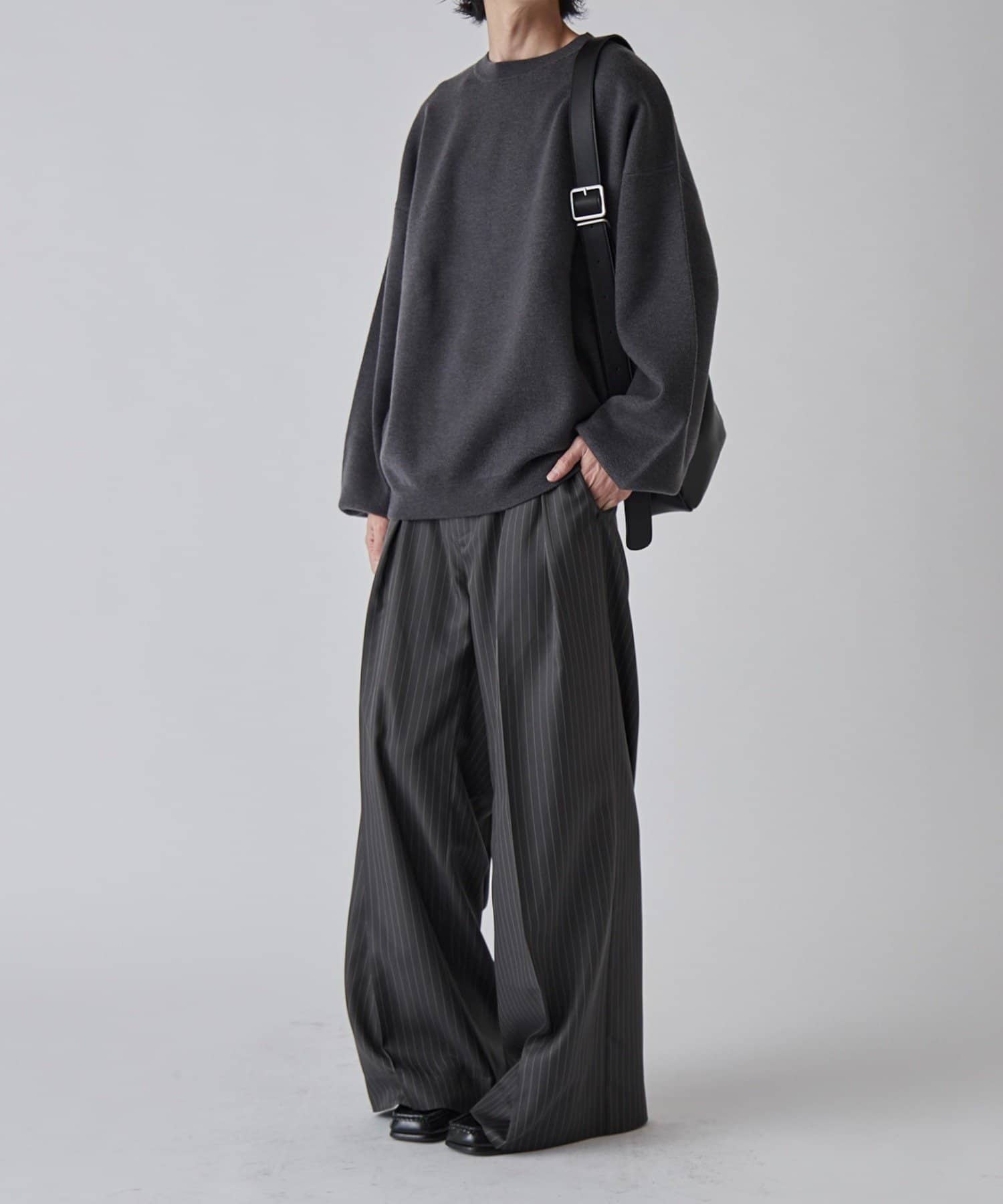 ・通常のタックとは異なり、内側に向けた深めの2タックが腿回りをスッキリさせることにより、"ワイドなのに野暮ったく見えない"シルエットを叶えます。