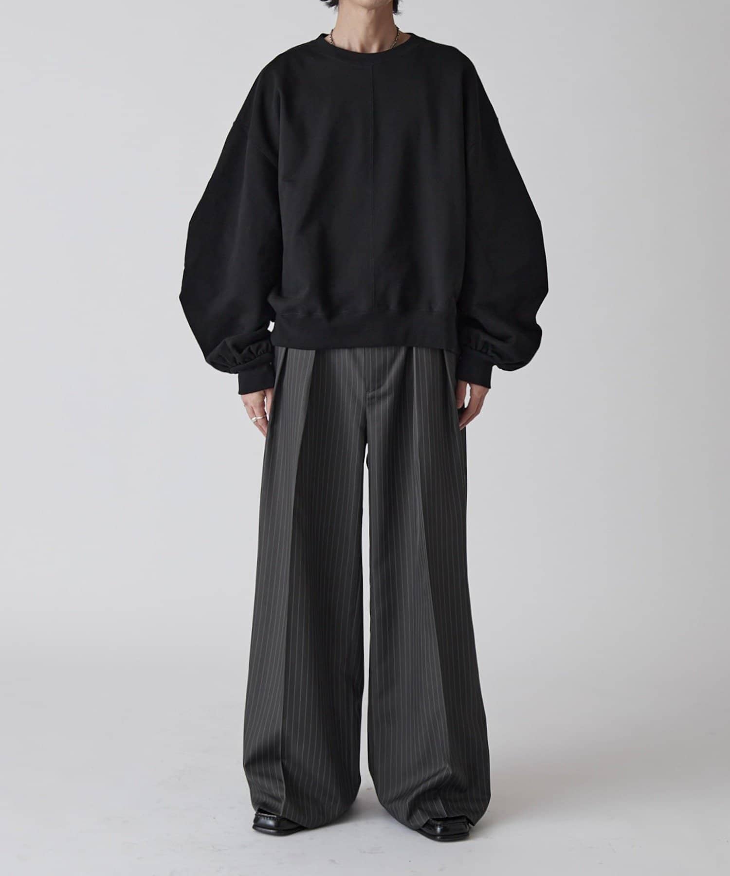 【Neucon】ピンストライプ2タックワイドスラックス / セットアップ対応