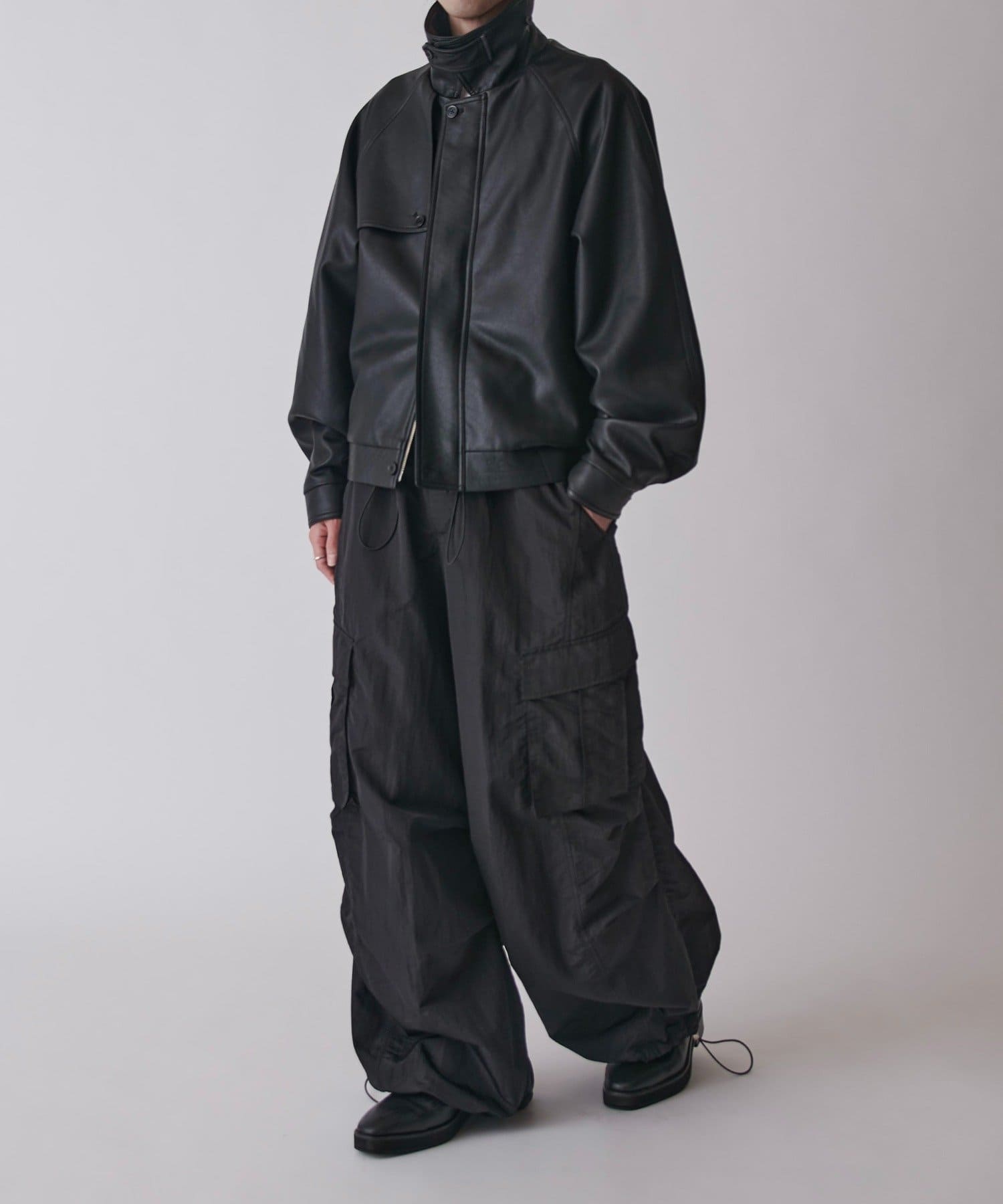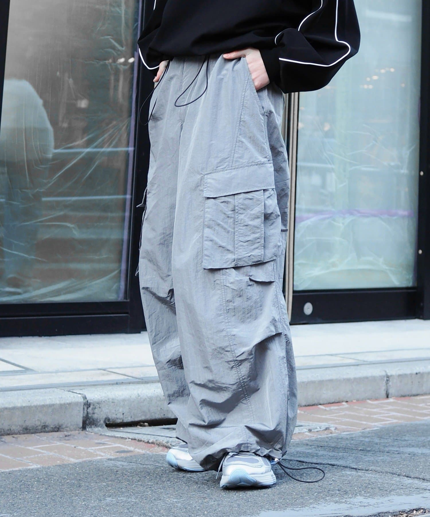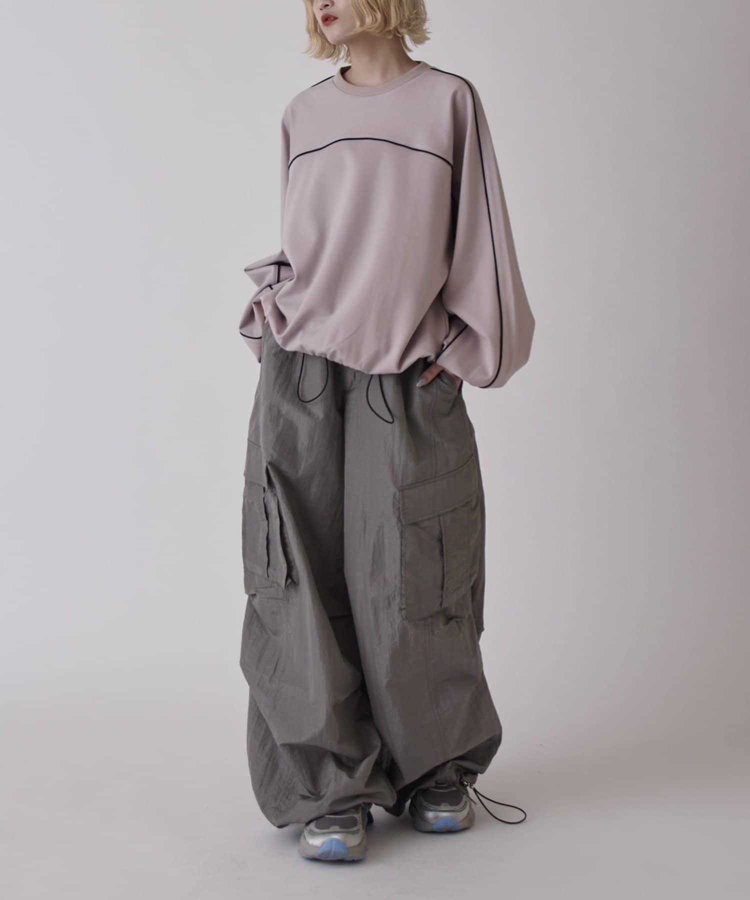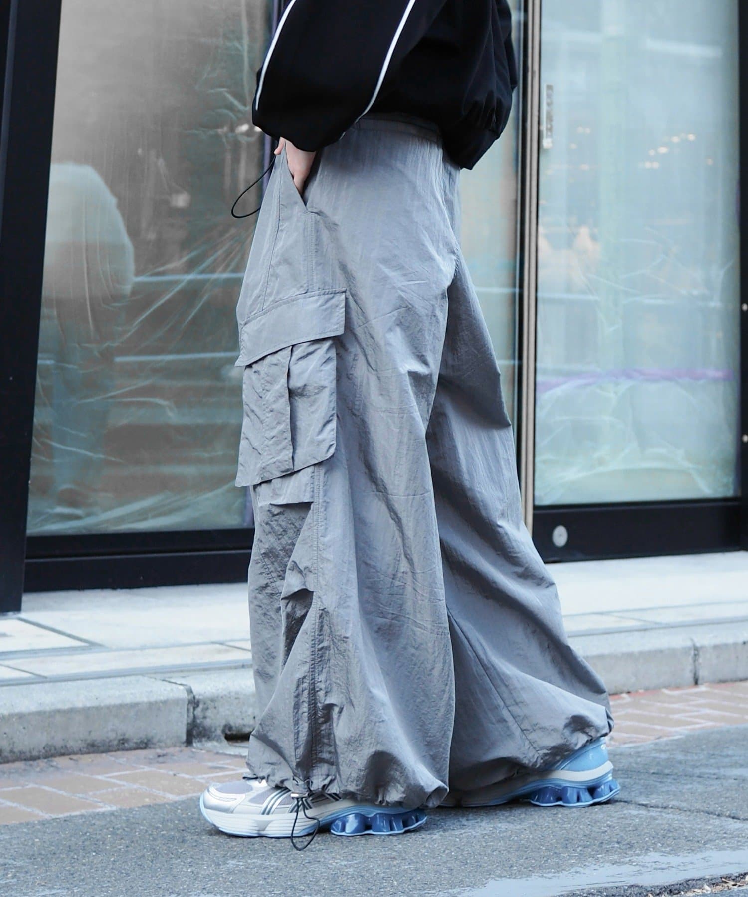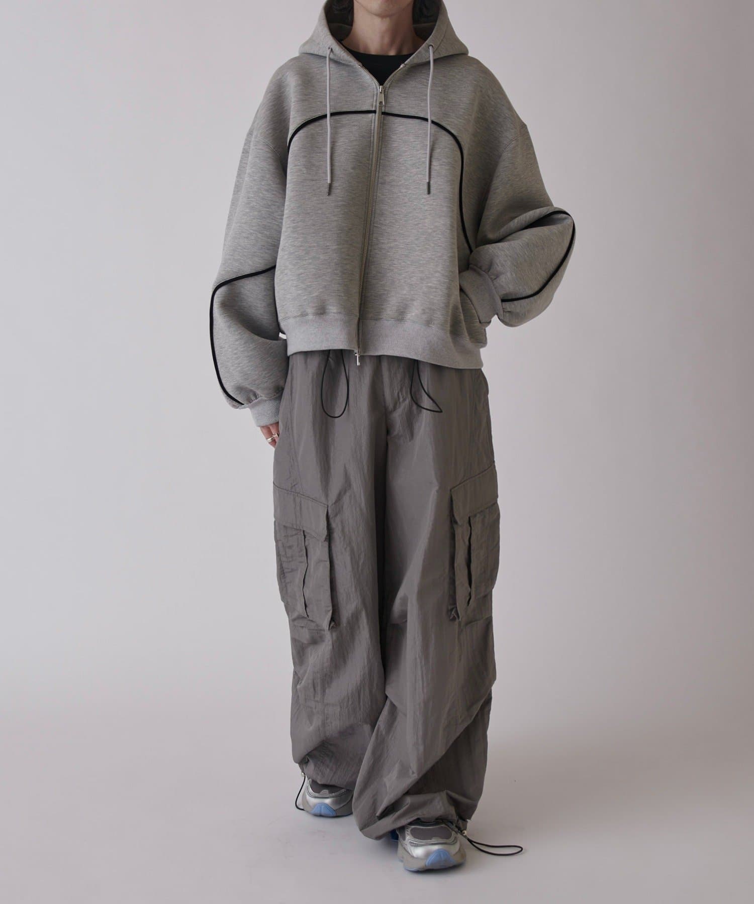 ・スタイリングに合わせて裾のドローコード絞ることで、バルーンシルエットでも着用可能
