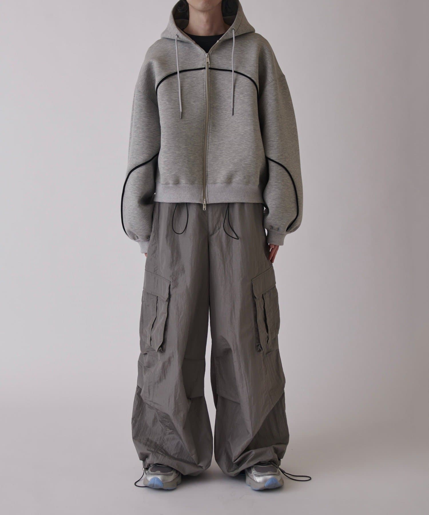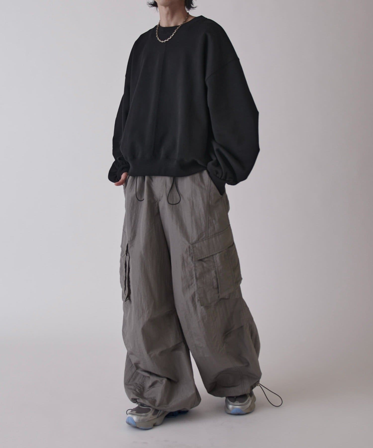 ・トラックパンツの素材と穿き心地をベースに、カーゴパンツとパラシュートパンツの要素を融合させた一本。
