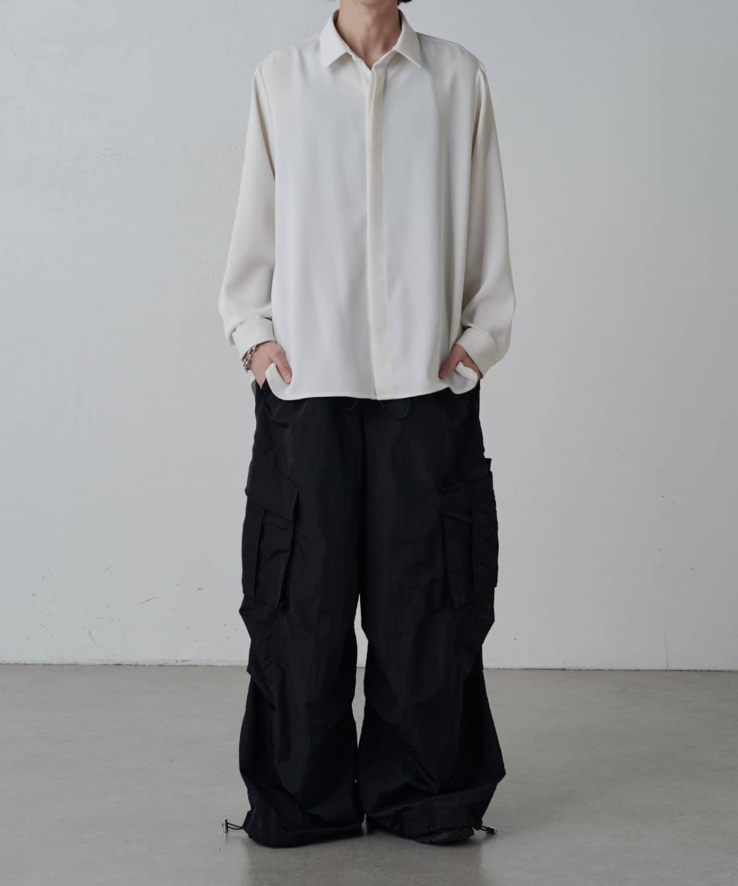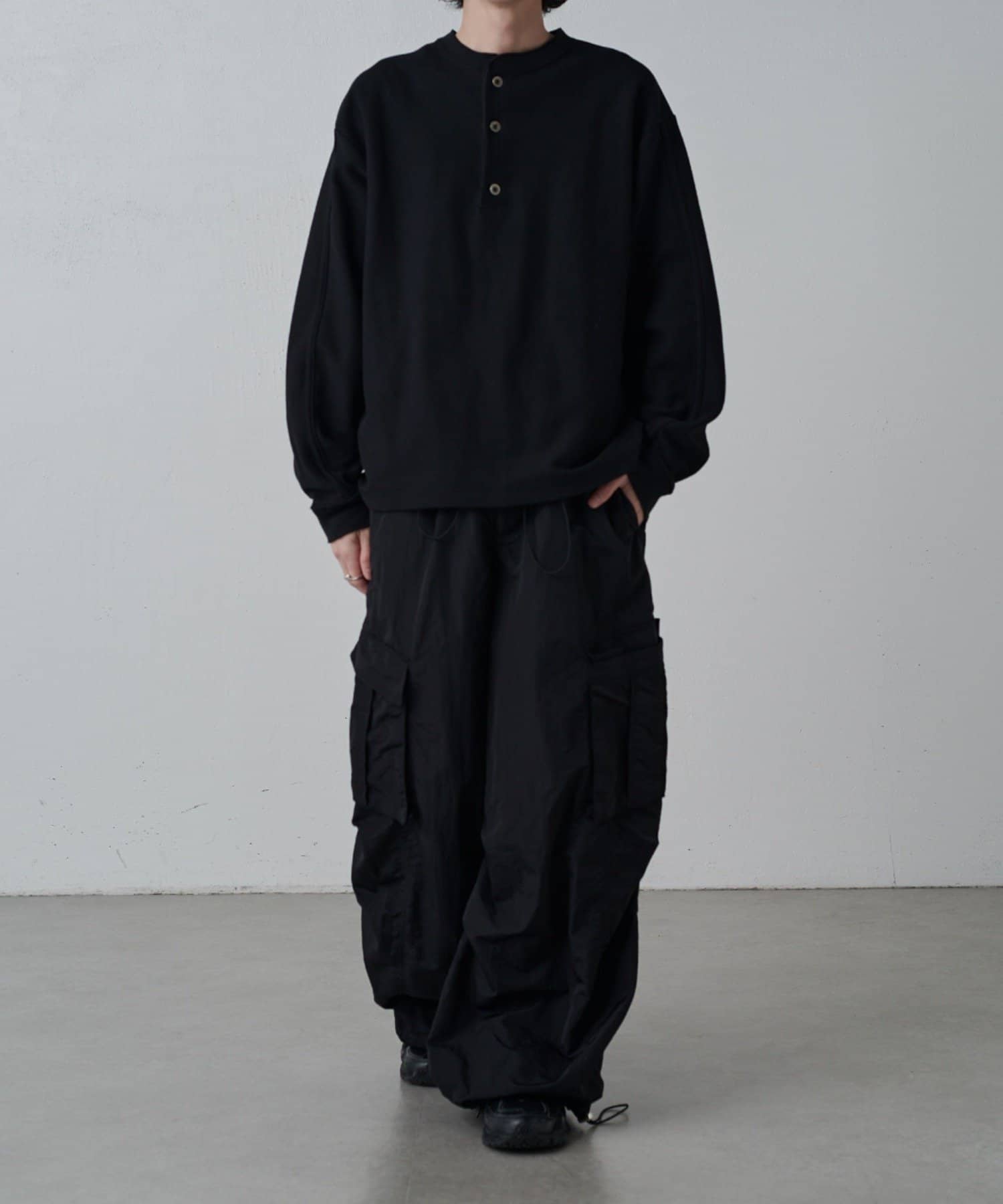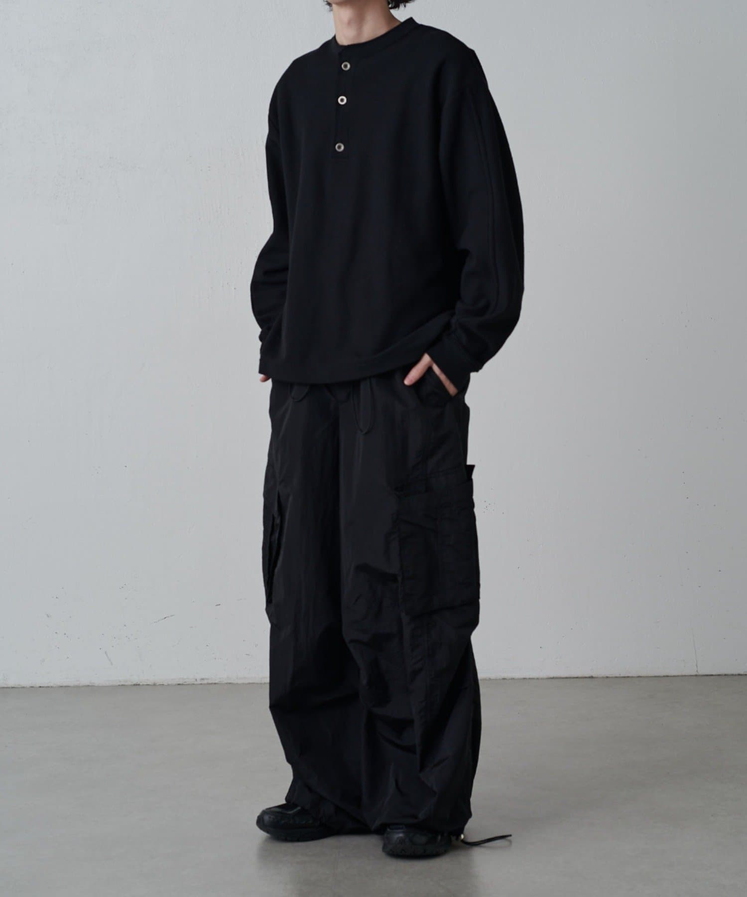 ・トラックパンツの素材と穿き心地をベースに、カーゴパンツとパラシュートパンツの要素を融合させた一本。